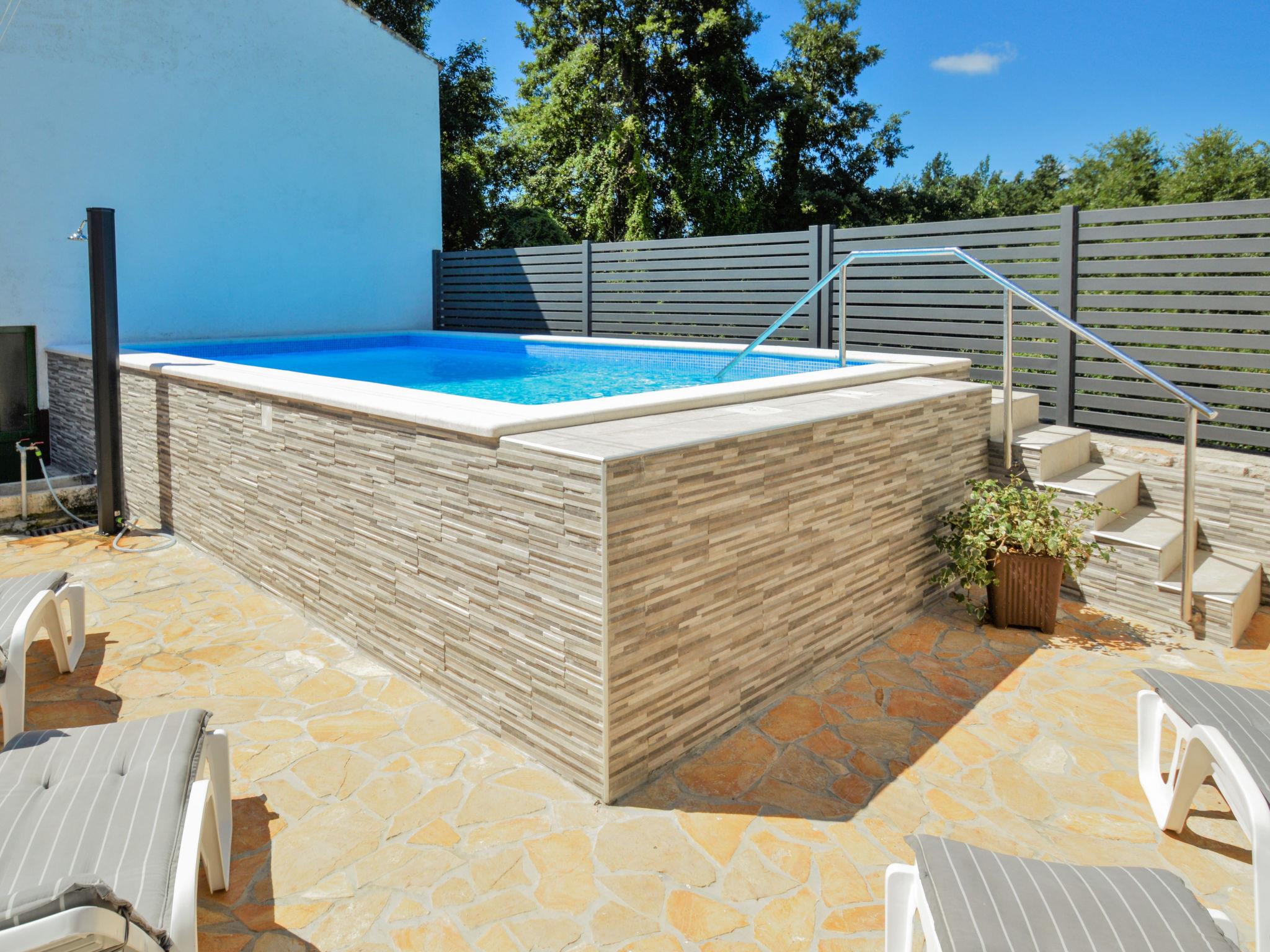 Semi-detached house "Milka 2", 2 storeys. In the hamlet Foli 20 km from the centre of Rovinj, 3 km from the centre of Svetivicenat, 17 km from the sea, in the countryside. For shared use: property 400 m2, garden with plants and trees, swimming pool (7 x 3 m, 24 m2, depth 130 cm, seasonal availability: 01.May. - 28.Oct.). In the house: internet access, washing machine (for shared use). Breakfast possible on request (extra). Parking at the house. Shop 3 km, bus stop 3.3 km, pebble beach 17 km. Please note: Property ref. HR2500.690.1 is situated on the same property.