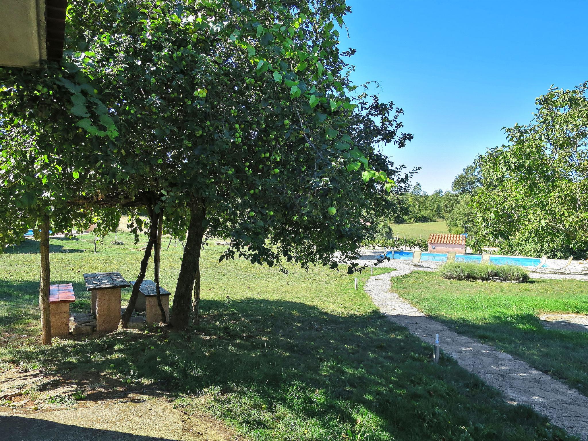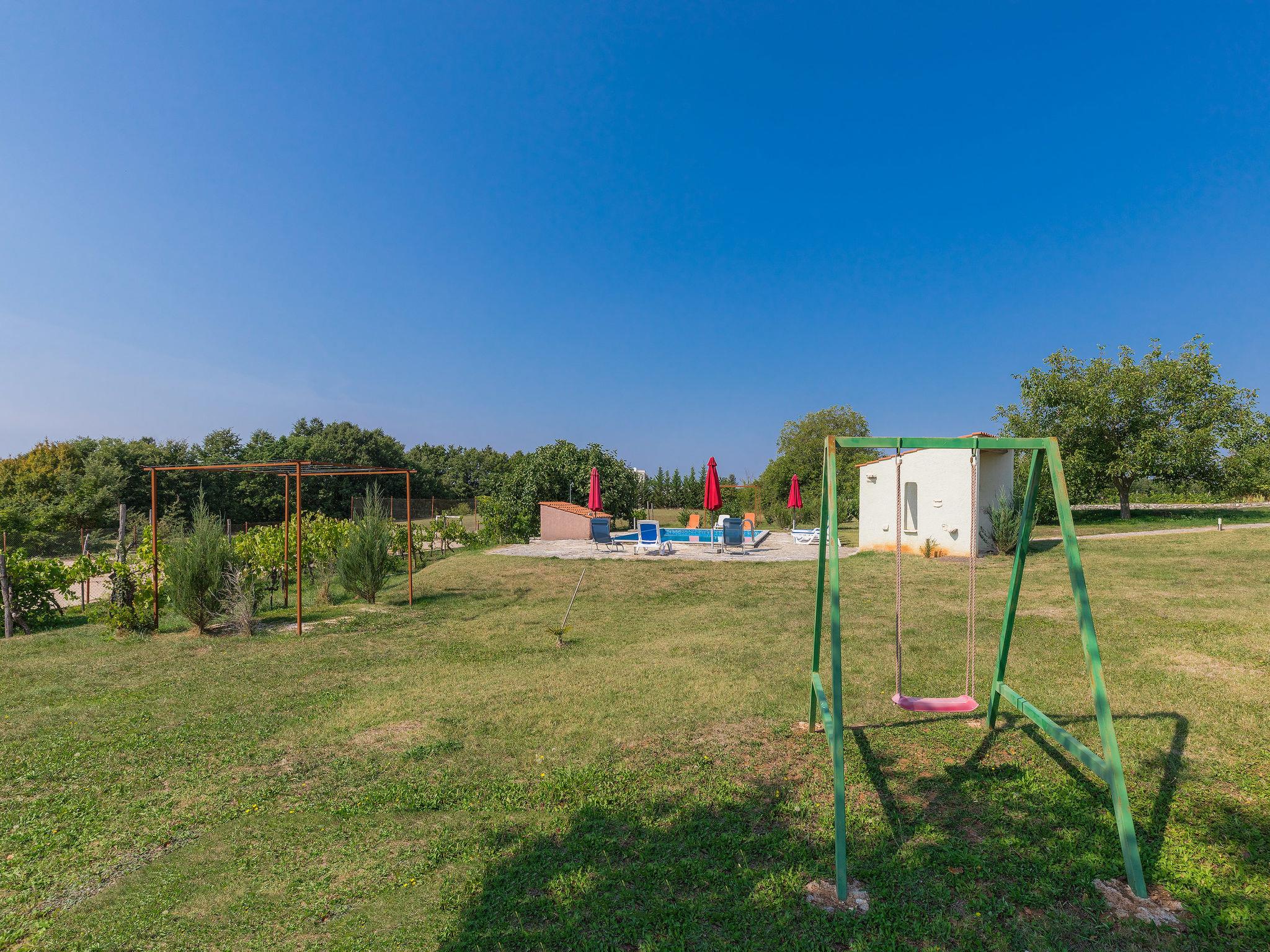 Single-family house "Danijela", 2 storeys. In the hamlet Tankovici 2.5 km from the centre of Žminj, 25 km from the centre of Rovinj, 18 km from the sea. For shared use: property 30'000 m2 with lawn and trees. (swing, sandbox). Private: property 1'500 m2 with lawn, swimming pool (10 x 5 m, depth 130 cm, seasonal availability: 27.May. - 16.Sep.). Outdoor shower, patio, terrace, barbecue, pool maintenance by the owner/gardener. In the house: internet access, washing machine. Parking (for 3 cars) on the premises. Shop 2.5 km, restaurant 2.5 km, bus stop 2.7 km, pebble beach 25 km. Marina 25 km, riding stable 2.5 km.