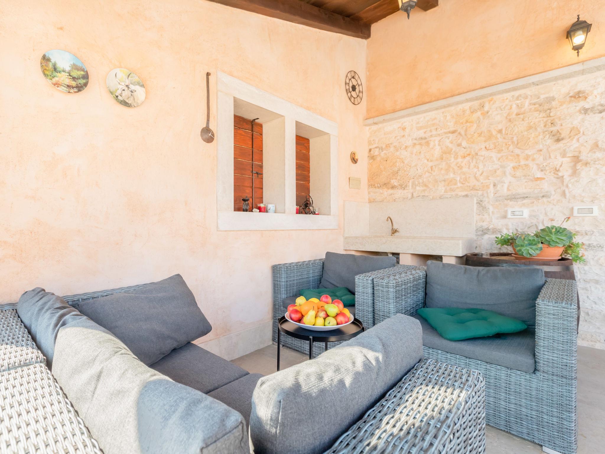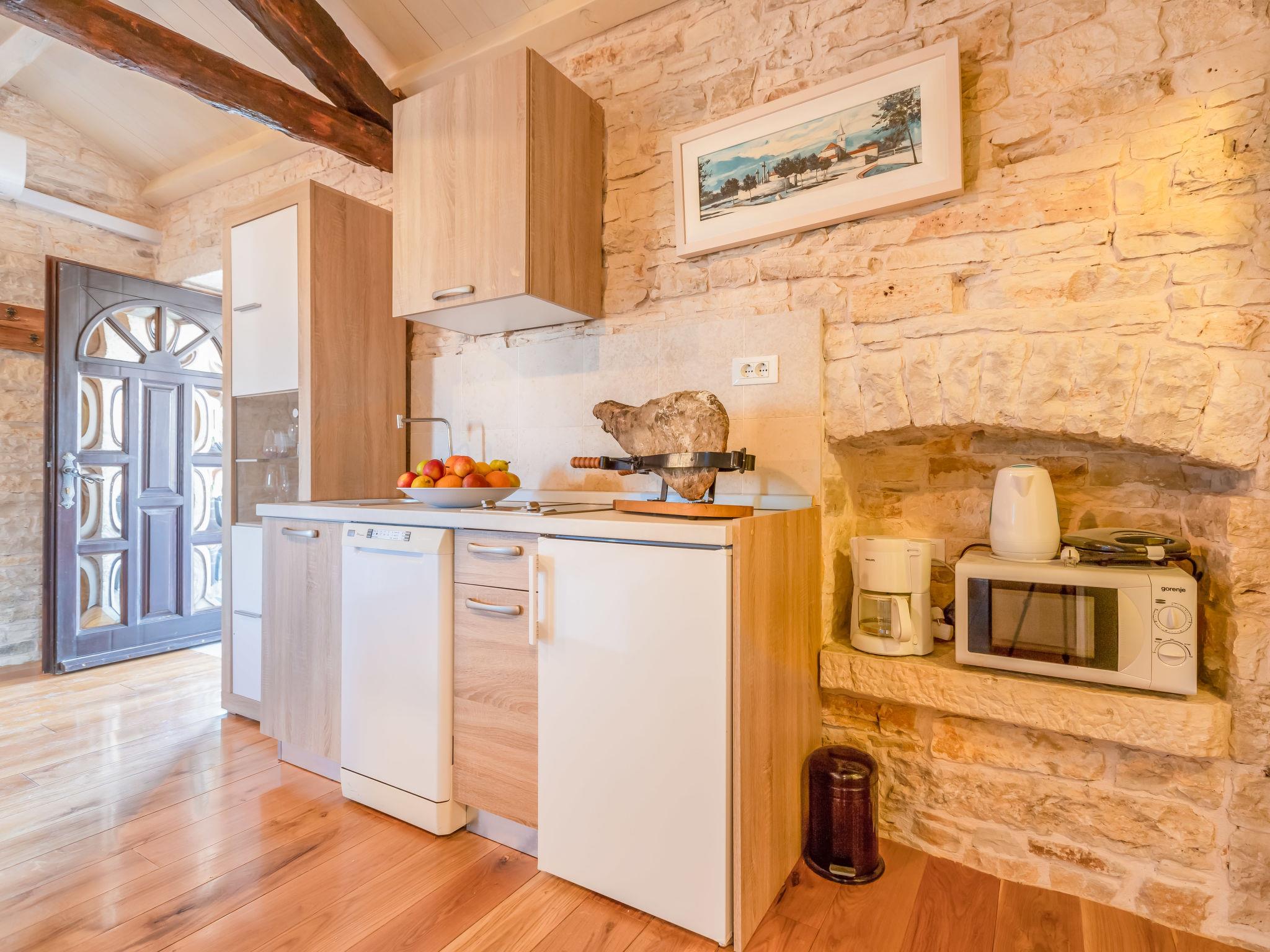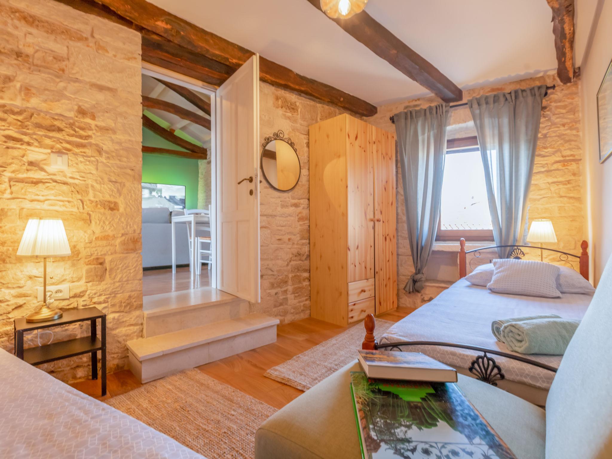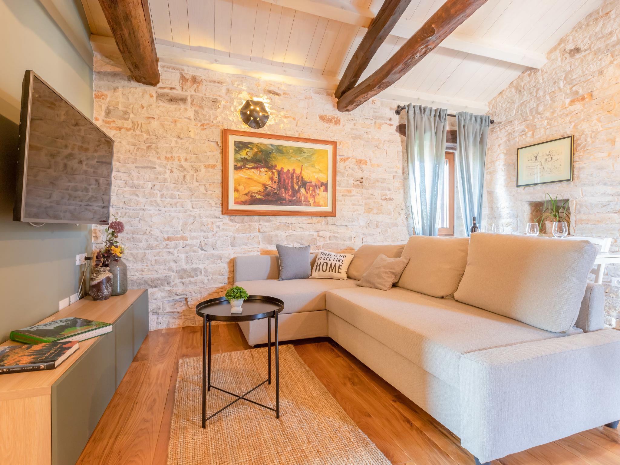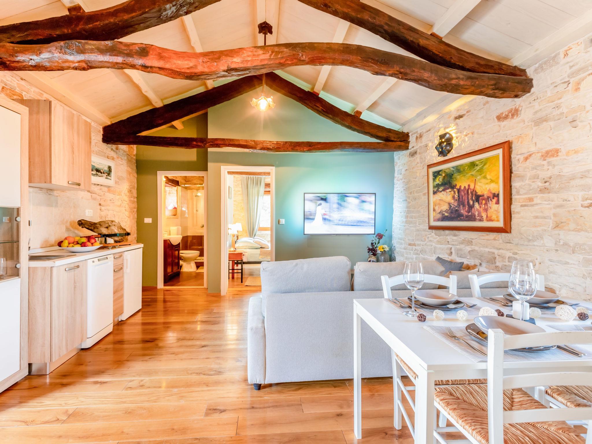 2-family house "Botra Maria". In the hamlet Gljušcici 7 km from the centre of Žminj, 25 km from the centre of Rovinj, 25 km from the sea. Private: property 1'000 m2 with wildlife garden, swimming pool angular (8 x 4 m, depth 135 cm, seasonal availability: 01.May. - 30.Sep.). Outdoor shower, hot tub, barbecue. In the house: internet access. Parking (for 3 cars) at the house on the premises. Shop 600 m, supermarket 1 km, bus stop 6.1 km, pebble beach 25 km, rocky beach 25 km. Marina 25 km. Please note: airfield 45 km from the property. Owner's tennis court with floodlights 200 m from the house (on request, extra).