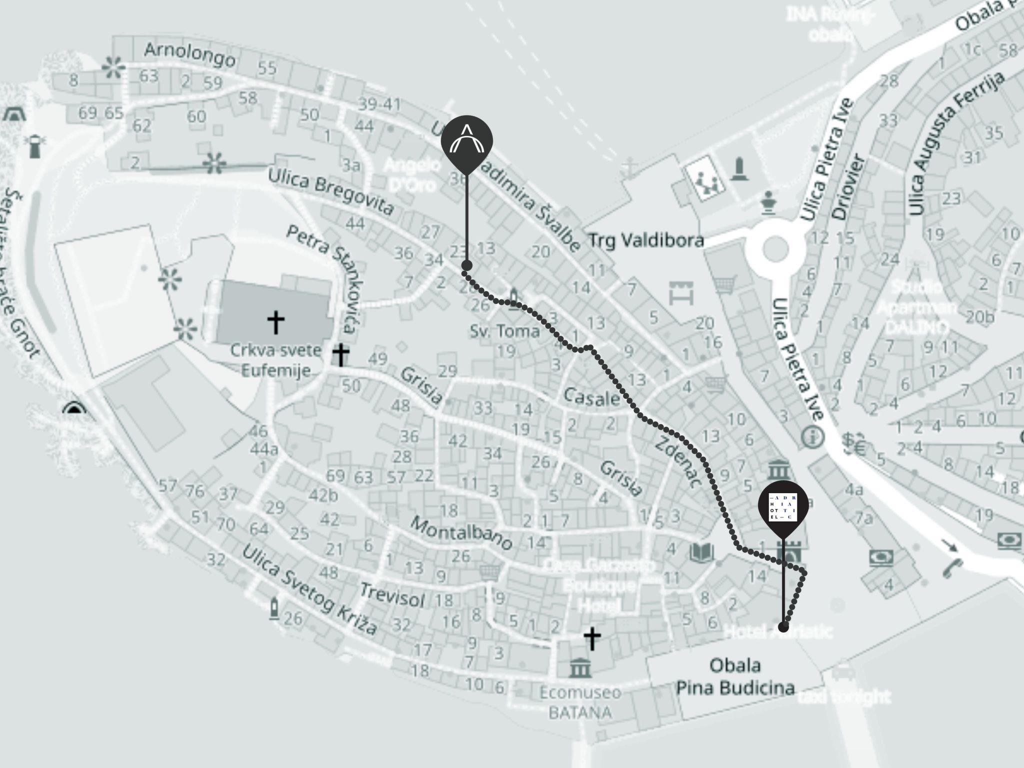 Casa Amando is located in the centre of the car-free old town of Rovinj, i.e. in the pedestrian zone:
