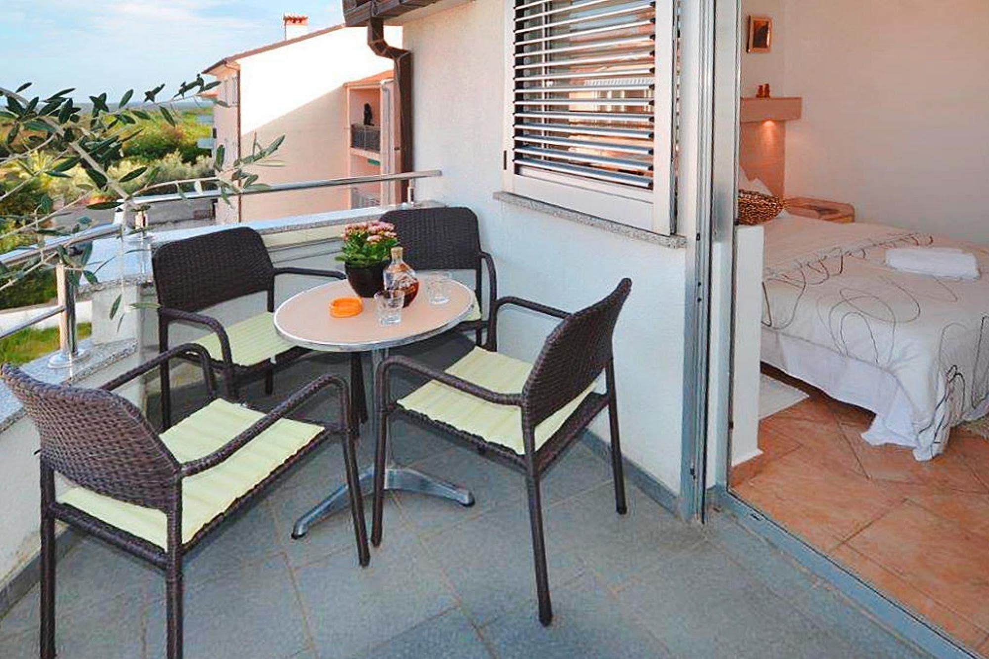 Enjoy your Rovinj escape from this modern and well-located apartment at Apartments Vaal, just a short stroll from both fine beaches and the charming old town. Designed for comfort and convenience, the space is ideal for couples or solo adventurers who want a coastal base with contemporary amenities. Inside, you’ll find a light-filled living space with a cozy sofa-bed, TV, and comfortable seating, perfect for unwinding after exploring the surroundings. The kitchenette is fully equipped with a coffee machine, microwave, and fridge-freezer, making simple meals and snacks effortless. Two comfortable bedrooms - one with a double bed and one with twin beds - offer peaceful rest, while the modern bathroom and air conditioning keep everything fresh and comfortable. Step out onto the private balcony to relax, dine outdoors by the grill, and enjoy the view. Fast Wi-Fi and convenient on-site parking complete the experience. Ideally located just 900 meters from both the beach and Rovinj’s enchanting Old Town, this stay offers the best of Istrian coastal living. Rovinj, famed for its picturesque harbour, historic streets, and the iconic Church of St. Euphemia, is one of the Mediterranean’s most photogenic destinations. The surrounding coastline and islands are part of a protected nature reserve, creating a haven for outdoor activities such as cycling, hiking, sailing, and diving. With superb restaurants, relaxed cafés, and vibrant seaside charm within easy reach, this is the perfect base for an effortless holiday experience.