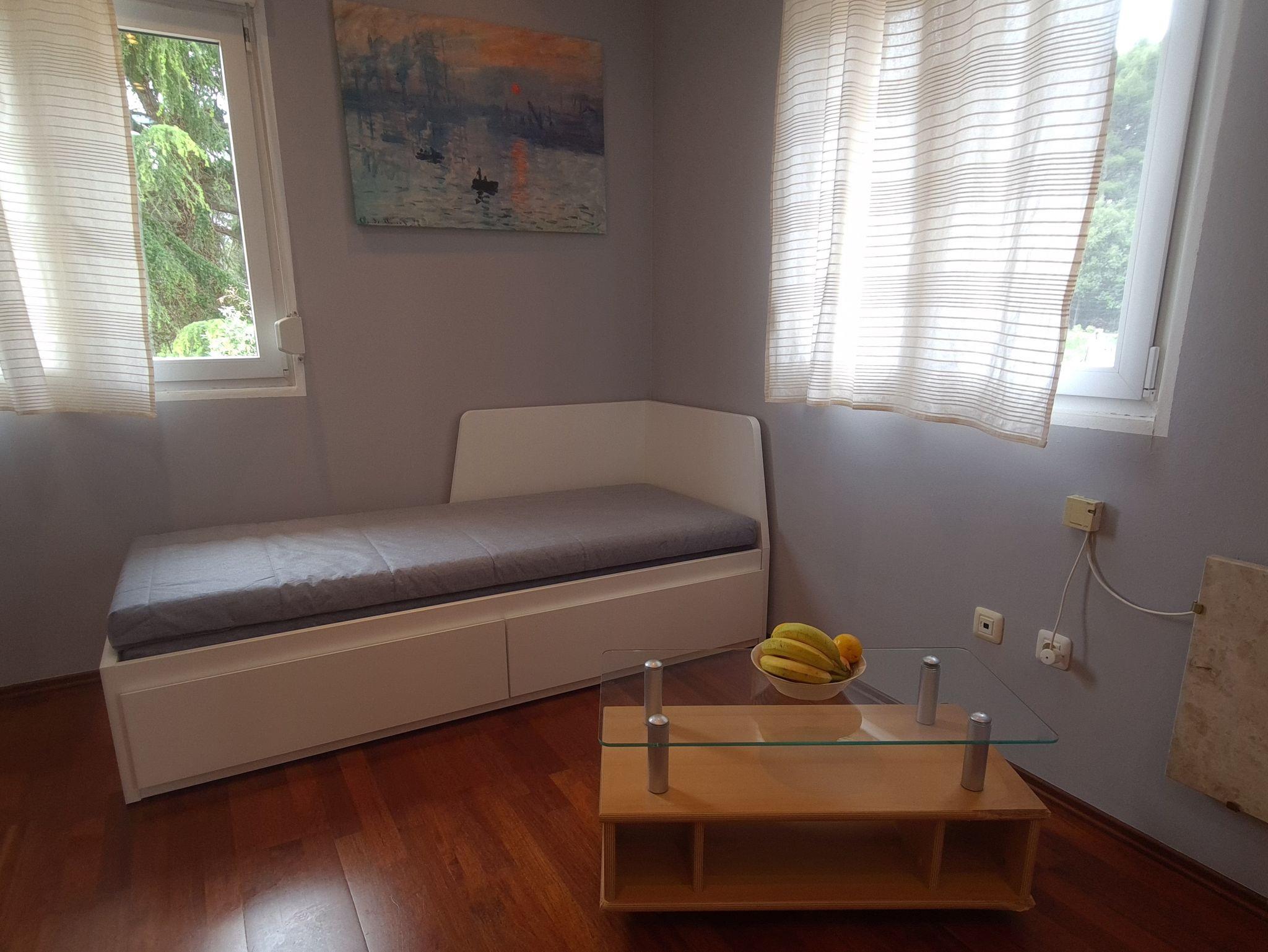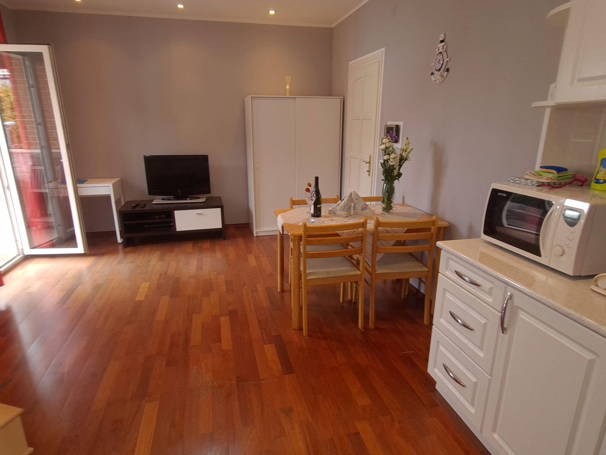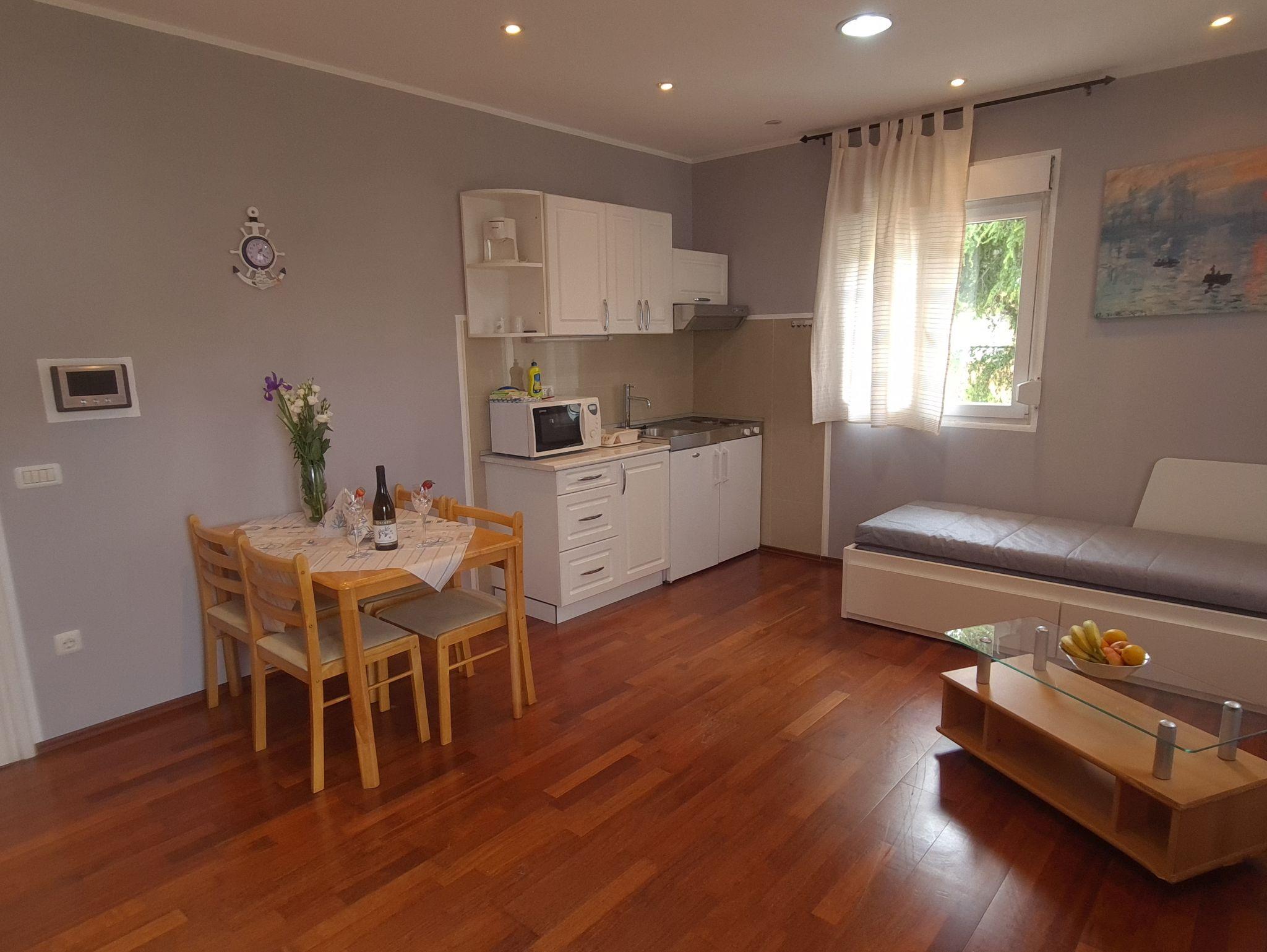 Ferienwohnung bietet Platz für 4 Gäste. Die Betten sind in Schlafzimmern, die es 1 gibt, und in Wohnzimmer, innerhalb einer Gesamtfläche von 38m2, angeordnet. Die Gäste haben einen eigenen Balkon zur Verfügung, auf der sie in warmen Sommernächten genießen können. Es ist erlaubt, Speisen auf dem Gemeinschafts-Grill vorzubereiten. In der Unterkunftseinheit besteht die Möglichkeit des Mitbringens von Haustieren gegen Aufpreis. IM PREIS INBEGRIFFEN: Kurtaxe, Endreinigung, Klimatisierung, Parkplatz, Internet, Bügeleisen, Bügelbrett, Föhn. VERBINDLICHE ZUSÄTZLICHE KOSTEN: Aufzahlung für Kurzaufenthalte (prozentualer Zuschlag pro Nächtigungsanzahl: 30% - 1, 20% - 2, 10% - 3). UNVERBINDLICHE ZUSÄTZLICHE KOSTEN: Wäschewaschen (5,00 € Waschen), Boot (350,00 € pro Nacht), Haustiere (15,00 € pro Nacht), Fahrrad (12,00 € täglich (pro Stück)). Die Verfügbarkeit zusätzlicher Dienstleistungen in Ihrem reservierten Termin und die Preise derselben (falls nicht aufgeführt) müssen im Voraus überprüft werden. Zusätzliche Dienstleistungen die in der Zahlungsaufforderung nicht aufgeführt sind werden direkt beim Vermieter bezahlt, angenommen der Gast nutzt auch diese.