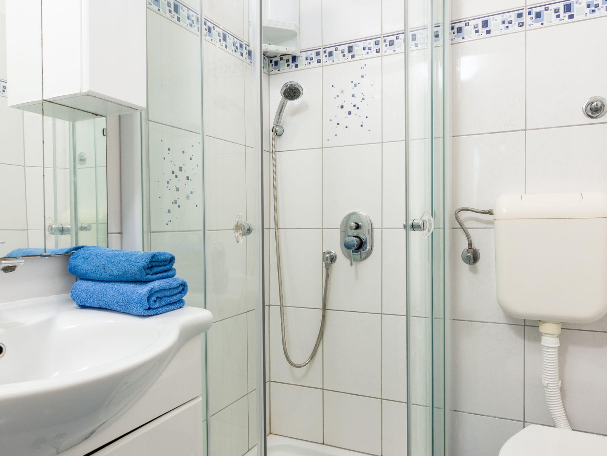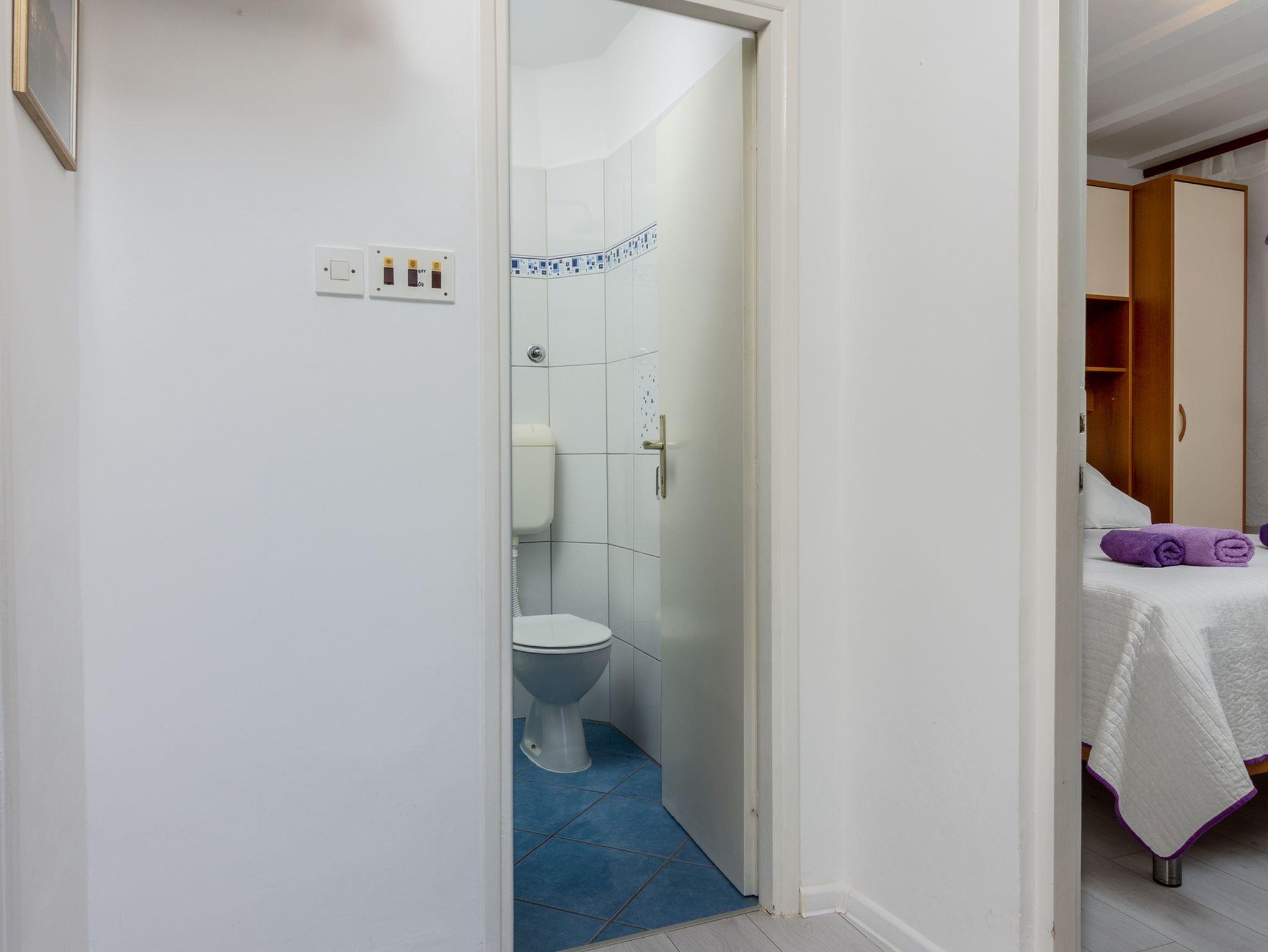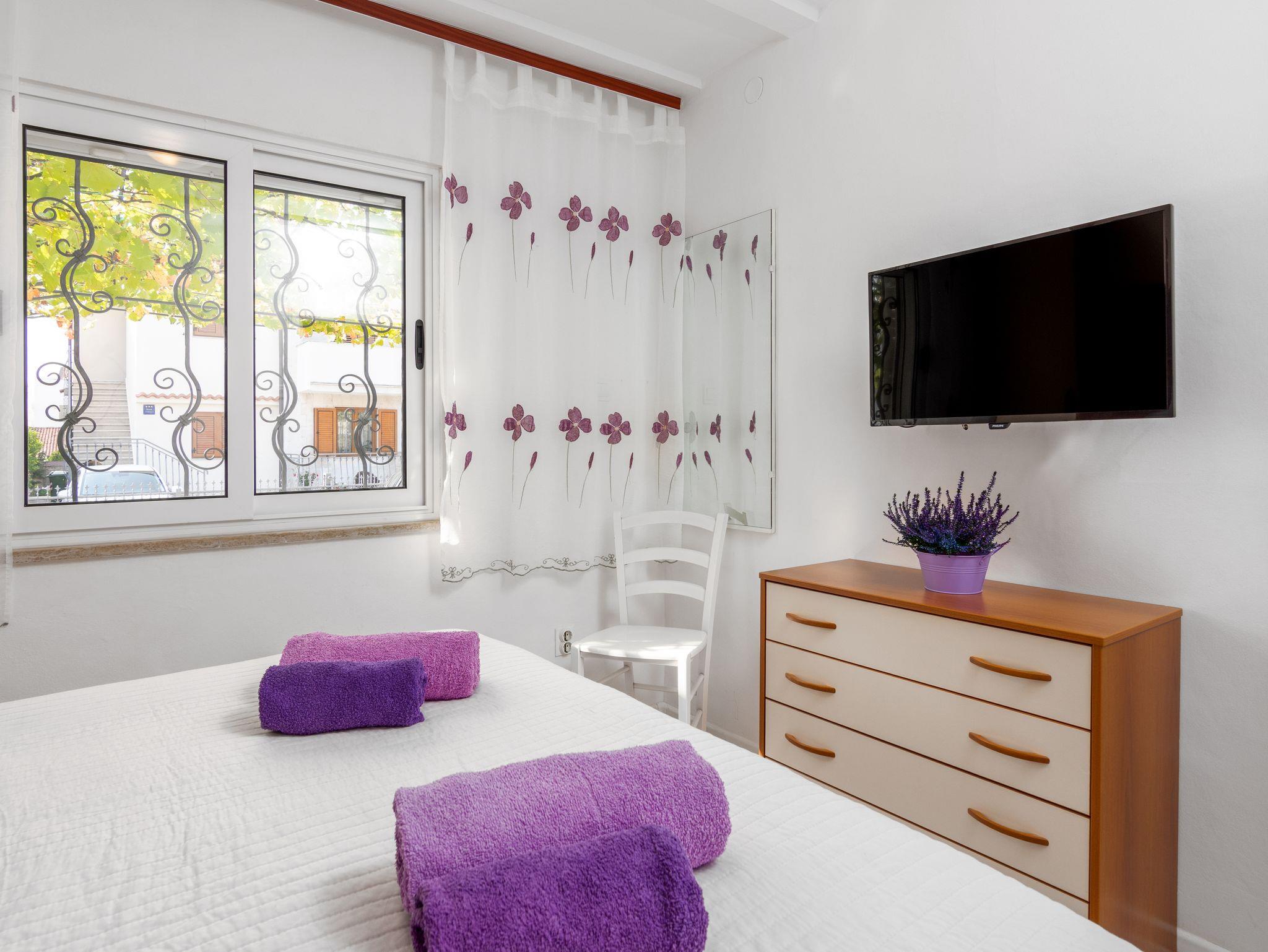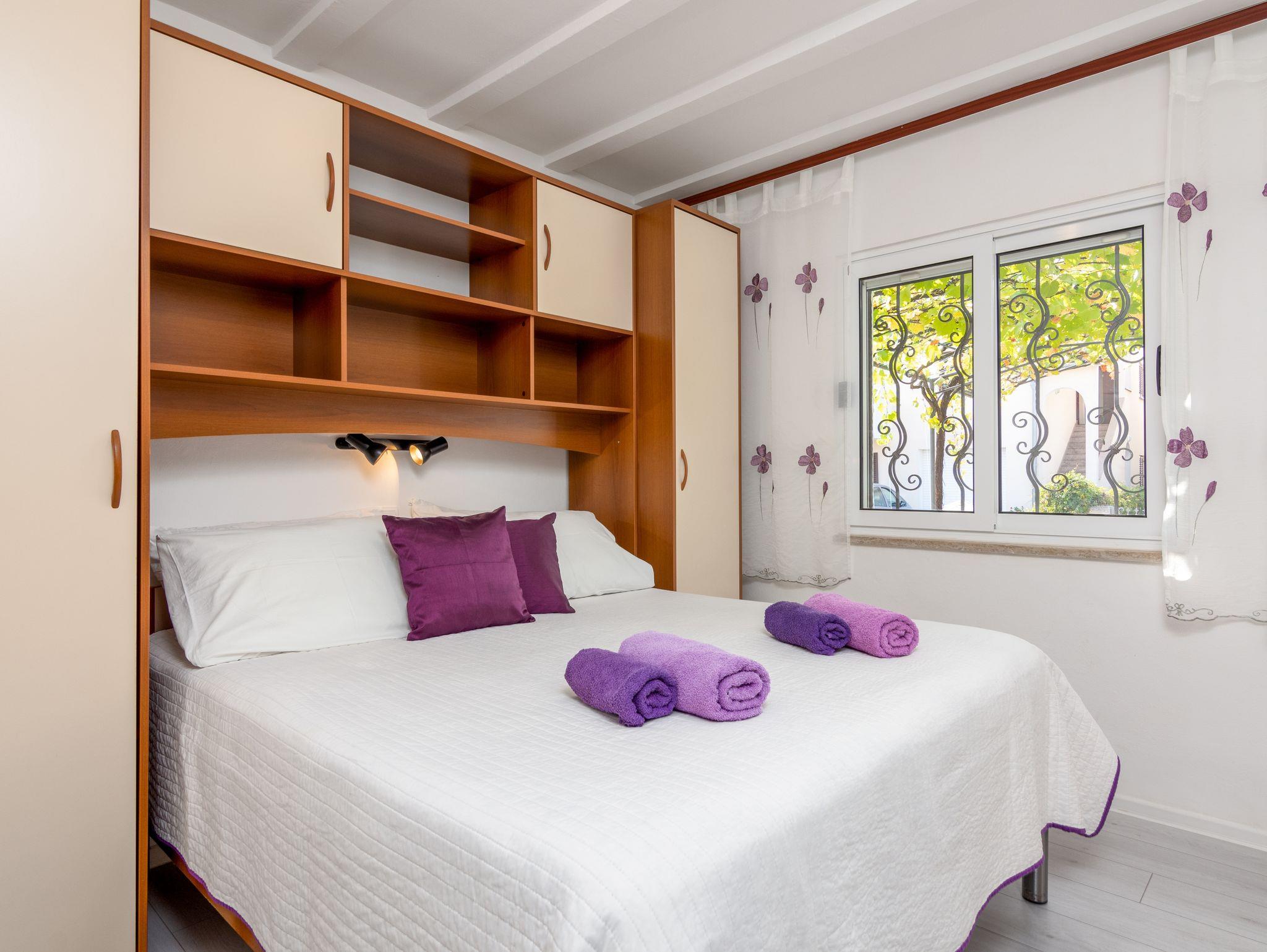 Ferienwohnung bietet Platz für 2 Gäste. Die Betten sind in Schlafzimmern, die es 1 gibt, innerhalb einer Gesamtfläche von 25m2, angeordnet. Die Gäste haben eine eigene Terrasse zur Verfügung, auf der sie in warmen Sommernächten genießen können. Es ist erlaubt, Speisen auf dem Gemeinschafts-Grill vorzubereiten. IM PREIS INBEGRIFFEN: Kurtaxe, Endreinigung, Klimatisierung, Parkplatz, Internet, Bügeleisen, Bügelbrett, Föhn. VERBINDLICHE ZUSÄTZLICHE KOSTEN: Aufzahlung für Kurzaufenthalte (prozentualer Zuschlag pro Nächtigungsanzahl: 30% - 1, 20% - 2, 10% - 3). Die Verfügbarkeit zusätzlicher Dienstleistungen in Ihrem reservierten Termin und die Preise derselben (falls nicht aufgeführt) müssen im Voraus überprüft werden. Zusätzliche Dienstleistungen die in der Zahlungsaufforderung nicht aufgeführt sind werden direkt beim Vermieter bezahlt, angenommen der Gast nutzt auch diese. Ermäßigung auf den Grundpreis: Gratistag 14=13 (bei einem Aufenthalt von 14 Tagen oder mehr erhalten Sie einen Gratistag für den Aufenthalt bis 31.12.26).