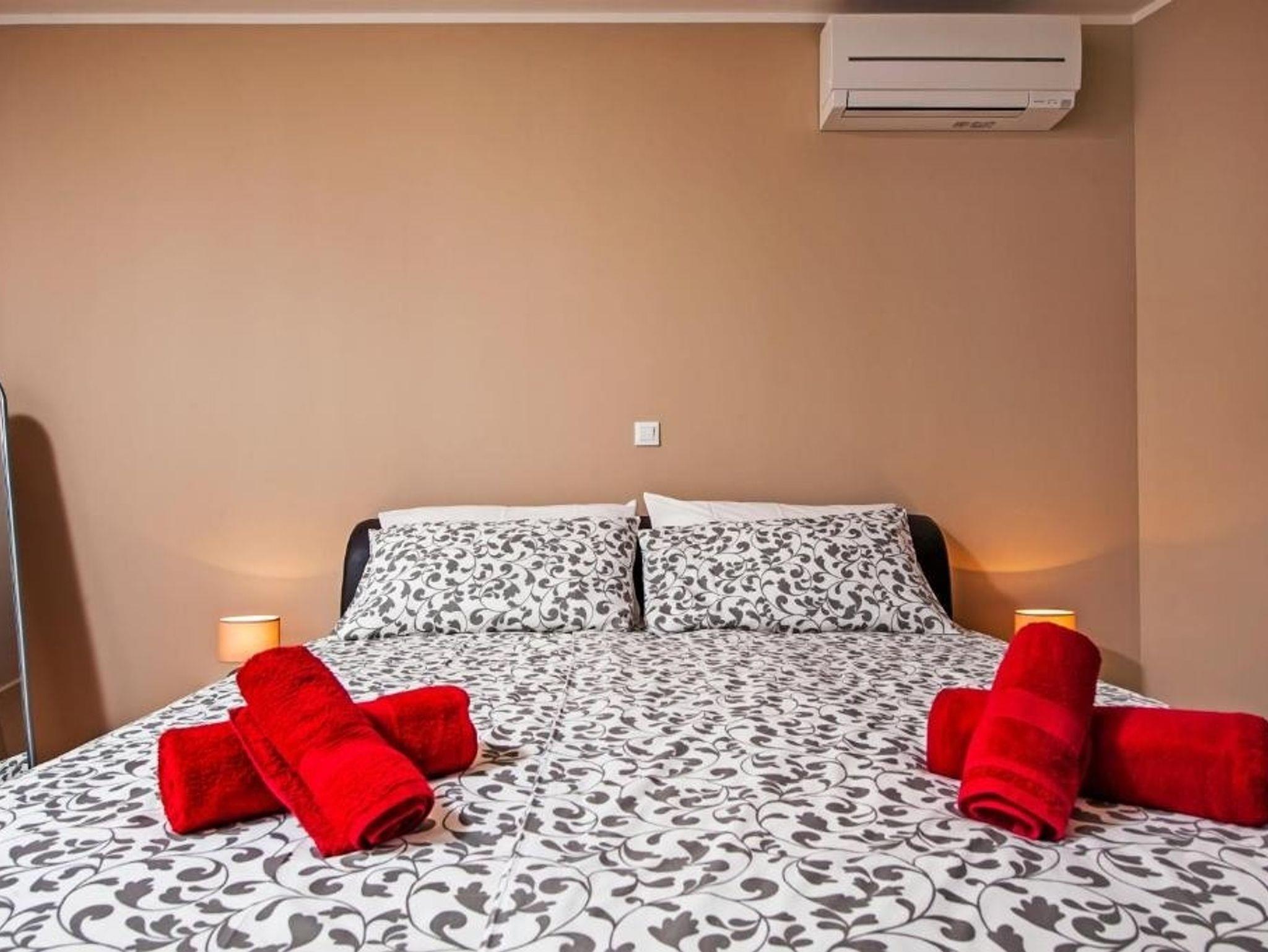 Ferienwohnung bietet Platz für 6 Gäste. Die Betten sind in Schlafzimmern, die es 2 gibt, und in Wohnzimmer, innerhalb einer Gesamtfläche von 81m2, angeordnet. Die Gäste haben eine eigene Terrasse zur Verfügung, auf der sie in warmen Sommernächten genießen können. IM PREIS INBEGRIFFEN: Kurtaxe, Endreinigung, Klimatisierung, Parkplatz, Internet, Kinderbett, Bügeleisen, Bügelbrett, Föhn. Die Verfügbarkeit zusätzlicher Dienstleistungen in Ihrem reservierten Termin und die Preise derselben (falls nicht aufgeführt) müssen im Voraus überprüft werden. Zusätzliche Dienstleistungen die in der Zahlungsaufforderung nicht aufgeführt sind werden direkt beim Vermieter bezahlt, angenommen der Gast nutzt auch diese.