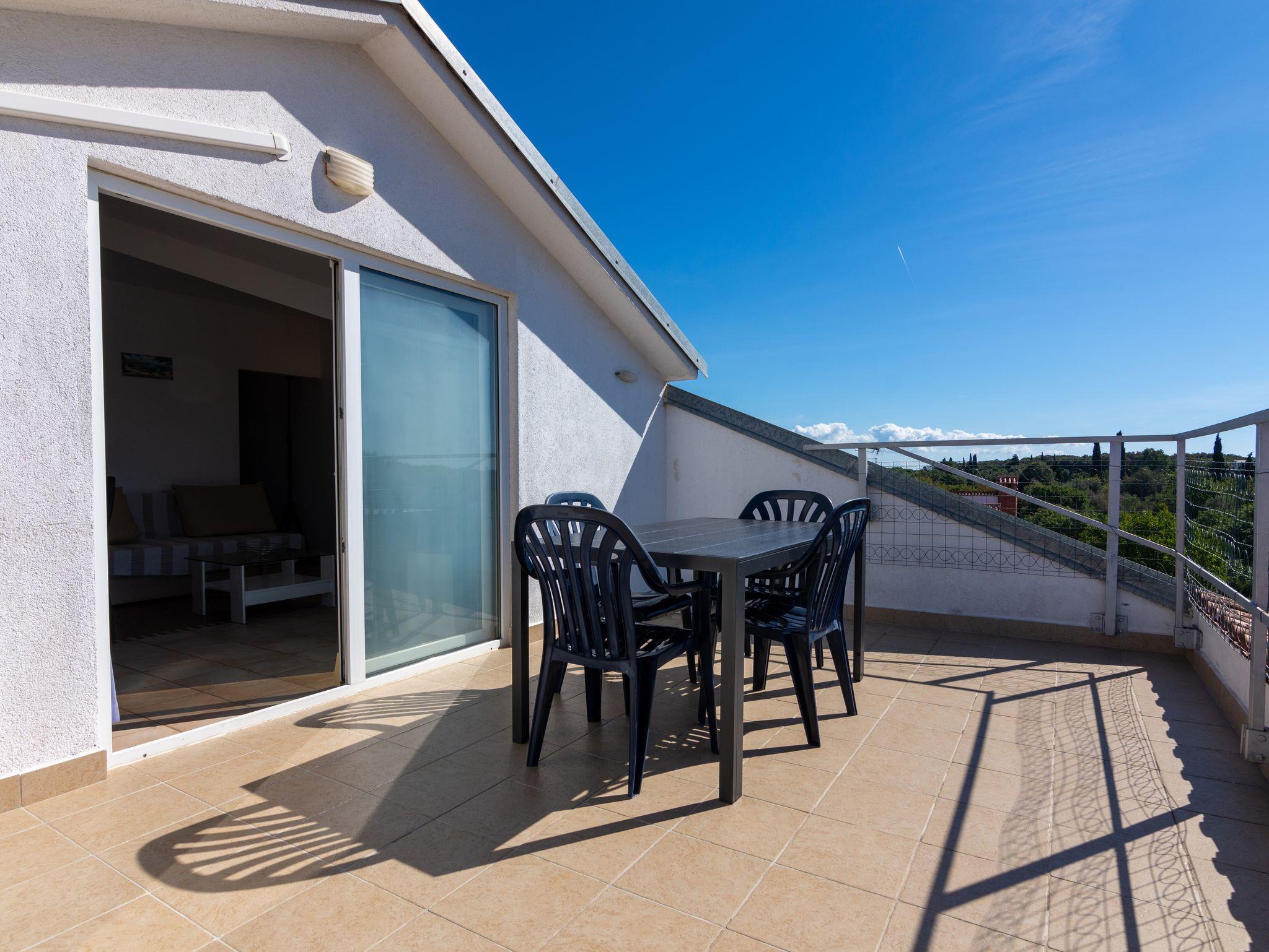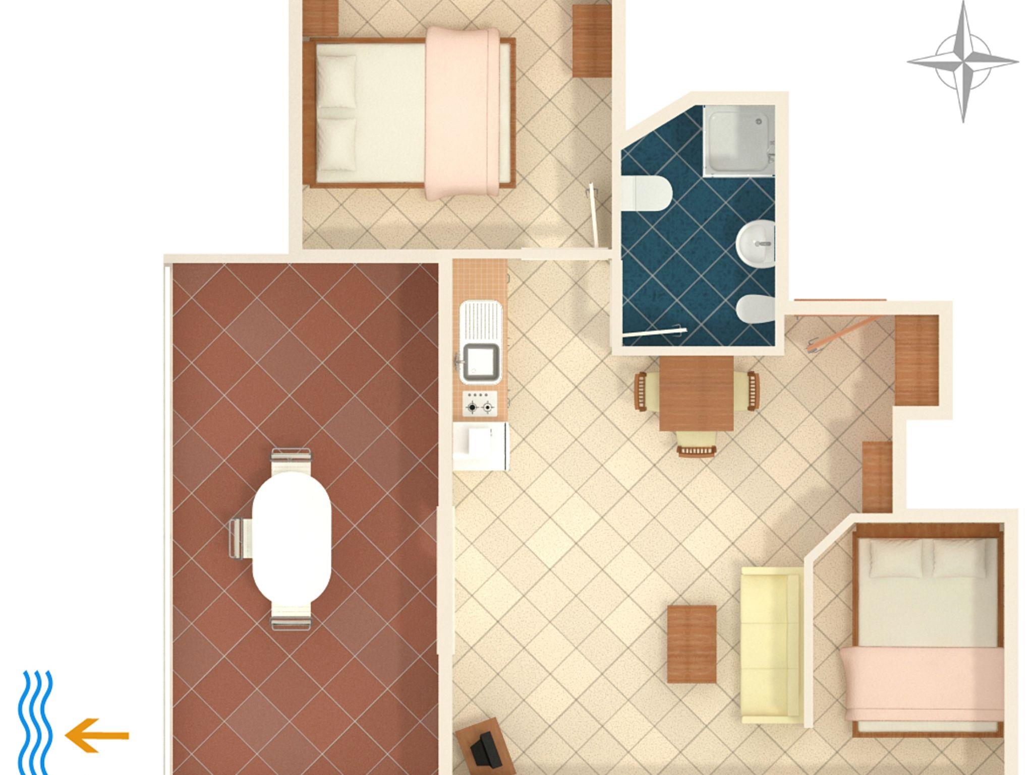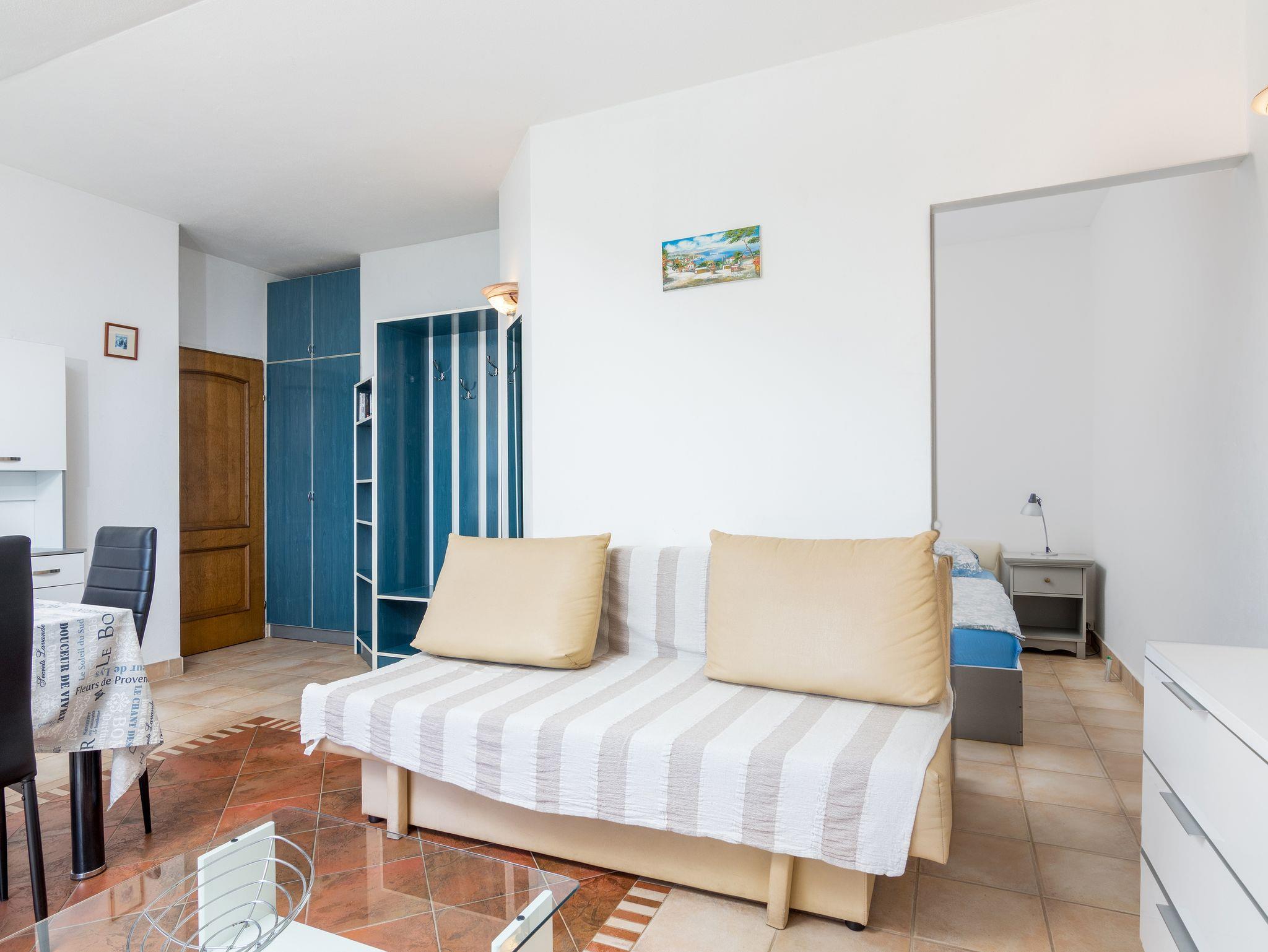 Studio bietet Platz für 4 Gäste. Die Betten sind in Schlafzimmern, die es 2 gibt, innerhalb einer Gesamtfläche von 42m2, angeordnet. Die Gäste haben eine eigene Terrasse zur Verfügung, auf der sie in warmen Sommernächten genießen können. IM PREIS INBEGRIFFEN: Kurtaxe, Endreinigung, Klimatisierung, Internet, Wäschewaschen, Bügeleisen, Bügelbrett, Föhn. VERBINDLICHE ZUSÄTZLICHE KOSTEN: Aufzahlung für Kurzaufenthalte (prozentualer Zuschlag pro Nächtigungsanzahl: 30% - 1, 20% - 2, 10% - 3). Die Verfügbarkeit zusätzlicher Dienstleistungen in Ihrem reservierten Termin und die Preise derselben (falls nicht aufgeführt) müssen im Voraus überprüft werden. Zusätzliche Dienstleistungen die in der Zahlungsaufforderung nicht aufgeführt sind werden direkt beim Vermieter bezahlt, angenommen der Gast nutzt auch diese. Ermäßigung auf den Grundpreis: Gratistag 14=13 (bei einem Aufenthalt von 14 Tagen oder mehr erhalten Sie einen Gratistag für den Aufenthalt bis 31.12.26).