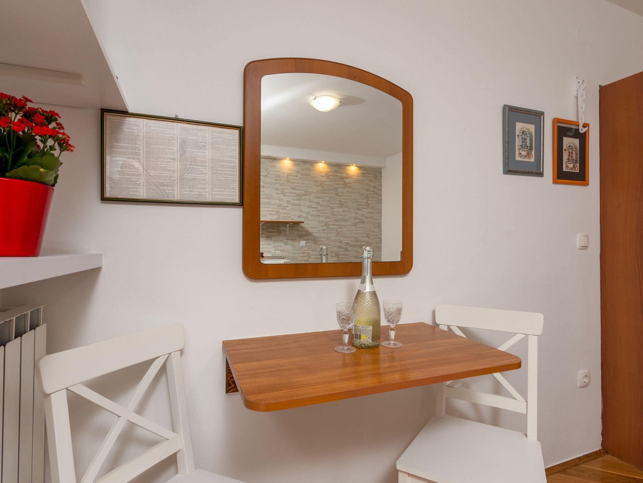 Studio bietet Platz für 2 Gäste. Die Betten sind in Schlafzimmern, die es 1 gibt, innerhalb einer Gesamtfläche von 17m2, angeordnet. Die Gäste haben eine eigene Terrasse zur Verfügung, auf der sie in warmen Sommernächten genießen können. Es ist erlaubt, Speisen auf dem Gemeinschafts-Grill vorzubereiten. IM PREIS INBEGRIFFEN: Kurtaxe, Endreinigung, Klimatisierung, Parkplatz, Internet, Bügeleisen, Bügelbrett, Föhn. VERBINDLICHE ZUSÄTZLICHE KOSTEN: Aufzahlung für Kurzaufenthalte (prozentualer Zuschlag pro Nächtigungsanzahl: 30% - 1, 20% - 2, 10% - 3). Die Verfügbarkeit zusätzlicher Dienstleistungen in Ihrem reservierten Termin und die Preise derselben (falls nicht aufgeführt) müssen im Voraus überprüft werden. Zusätzliche Dienstleistungen die in der Zahlungsaufforderung nicht aufgeführt sind werden direkt beim Vermieter bezahlt, angenommen der Gast nutzt auch diese. Ermäßigung auf den Grundpreis: Gratistag 14=13 (bei einem Aufenthalt von 14 Tagen oder mehr erhalten Sie einen Gratistag für den Aufenthalt bis 31.12.26).