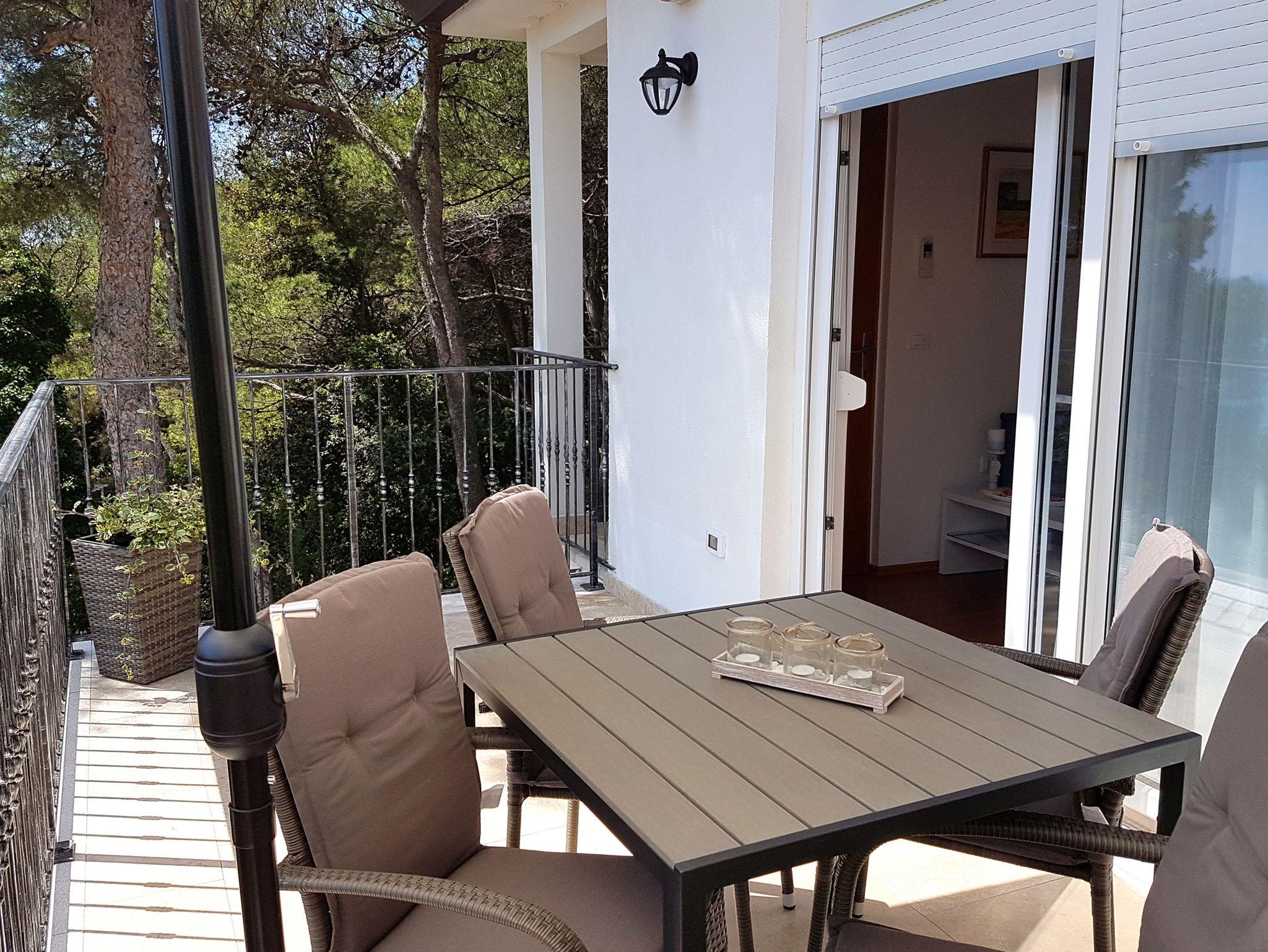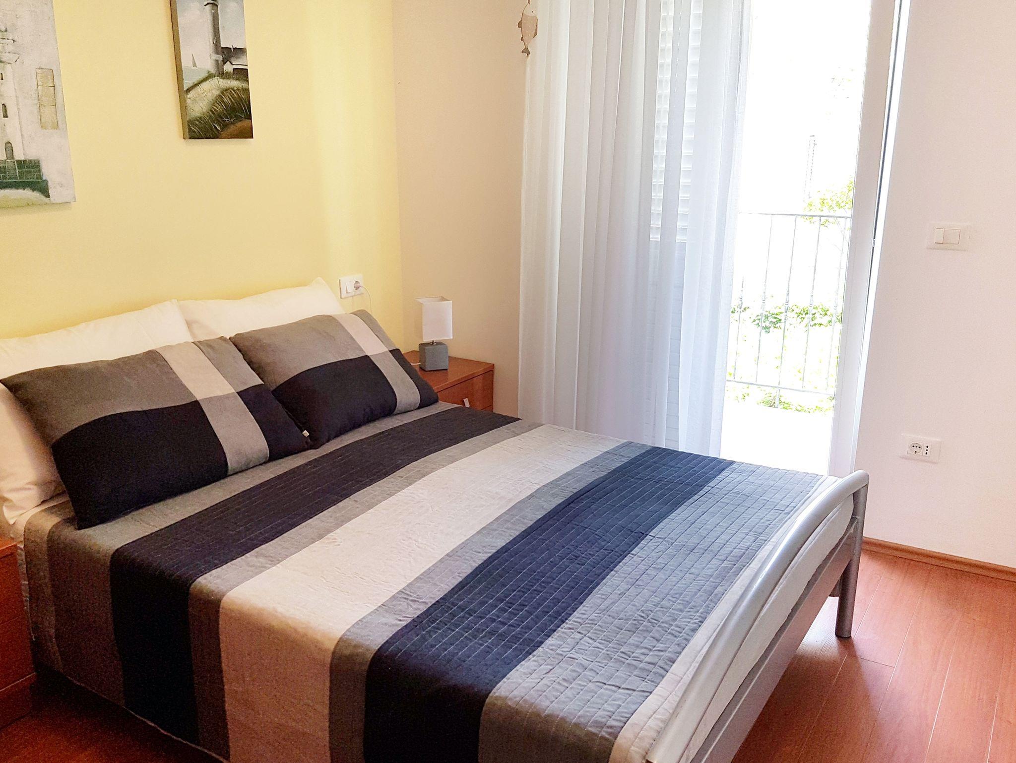 Ferienwohnung bietet Platz für 4 Gäste. Die Betten sind in Schlafzimmern, die es 1 gibt, und in Wohnzimmer, innerhalb einer Gesamtfläche von 31m2, angeordnet. Die Gäste haben eine eigene Terrasse zur Verfügung, auf der sie in warmen Sommernächten genießen können. Das Apartment bietet Meerblick. Es ist erlaubt, Speisen auf dem Gemeinschafts-Grill vorzubereiten. In der Unterkunftseinheit besteht die Möglichkeit des Mitbringens von Haustieren gegen Aufpreis. IM PREIS INBEGRIFFEN: Kurtaxe, Endreinigung, Klimatisierung, Parkplatz, Internet, Kinderbett, Bügeleisen, Bügelbrett, Föhn. VERBINDLICHE ZUSÄTZLICHE KOSTEN: Aufzahlung für Kurzaufenthalte (prozentualer Zuschlag pro Nächtigungsanzahl: 30% - 1, 20% - 2, 10% - 3). UNVERBINDLICHE ZUSÄTZLICHE KOSTEN: Haustiere (10,00 € pro Nacht). Die Verfügbarkeit zusätzlicher Dienstleistungen in Ihrem reservierten Termin und die Preise derselben (falls nicht aufgeführt) müssen im Voraus überprüft werden. Zusätzliche Dienstleistungen die in der Zahlungsaufforderung nicht aufgeführt sind werden direkt beim Vermieter bezahlt, angenommen der Gast nutzt auch diese. Ermäßigung auf den Grundpreis: Gratistag 14=13 (bei einem Aufenthalt von 14 Tagen oder mehr erhalten Sie einen Gratistag für den Aufenthalt bis 31.12.26).