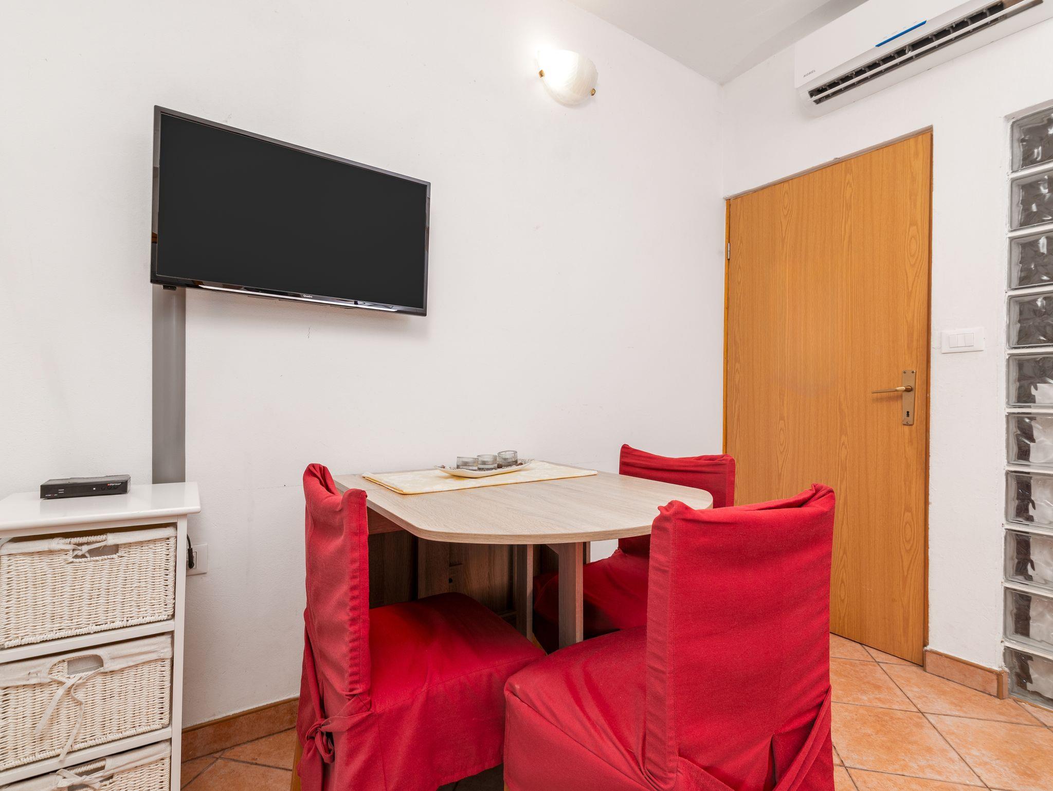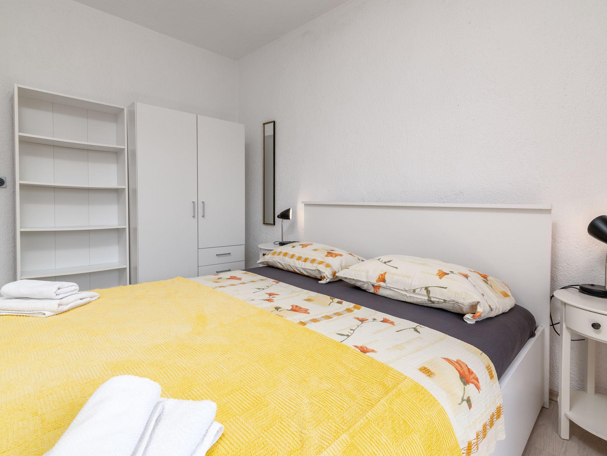 Ferienwohnung bietet Platz für 3 Gäste. Die Betten sind in Schlafzimmern, die es 1 gibt, und in Wohnzimmer, innerhalb einer Gesamtfläche von 49m2, angeordnet. Die Gäste haben einen eigenen Balkon zur Verfügung, auf der sie in warmen Sommernächten genießen können. Es ist erlaubt, Speisen auf dem Gemeinschafts-Grill vorzubereiten. IM PREIS INBEGRIFFEN: Kurtaxe, Endreinigung, Klimatisierung, Parkplatz, Internet, Wäschewaschen, Bügeleisen, Bügelbrett, Föhn. Die Verfügbarkeit zusätzlicher Dienstleistungen in Ihrem reservierten Termin und die Preise derselben (falls nicht aufgeführt) müssen im Voraus überprüft werden. Zusätzliche Dienstleistungen die in der Zahlungsaufforderung nicht aufgeführt sind werden direkt beim Vermieter bezahlt, angenommen der Gast nutzt auch diese. Ermäßigung auf den Grundpreis: Gratistag 14=13 (bei einem Aufenthalt von 14 Tagen oder mehr erhalten Sie einen Gratistag für den Aufenthalt bis 31.12.26).