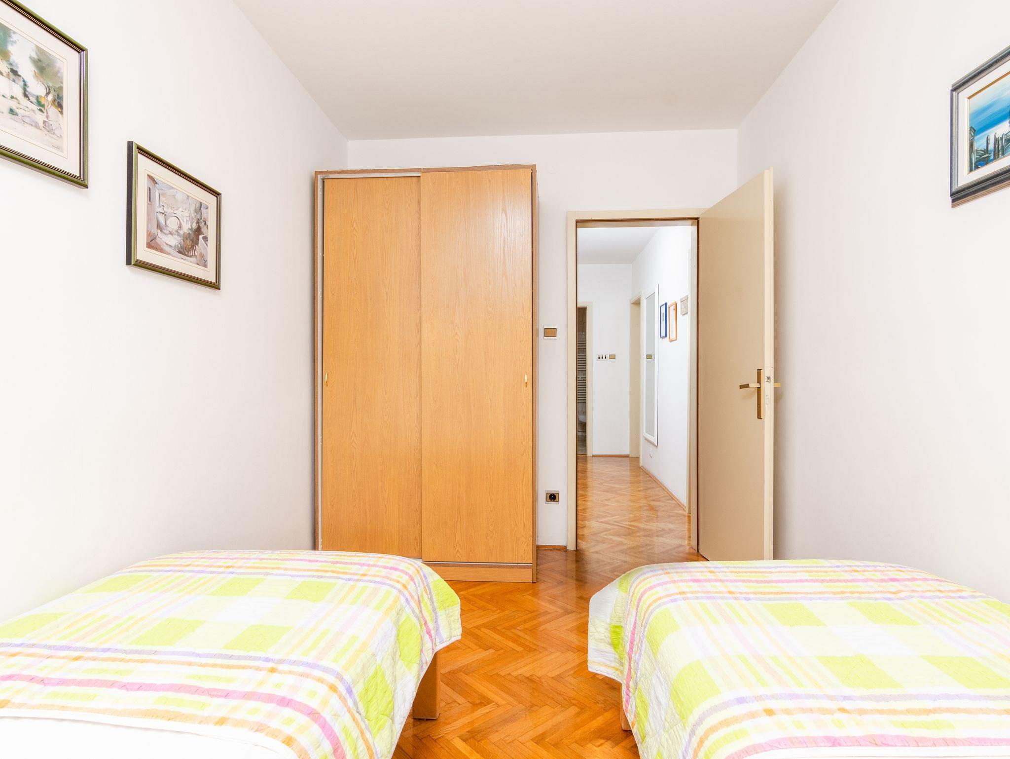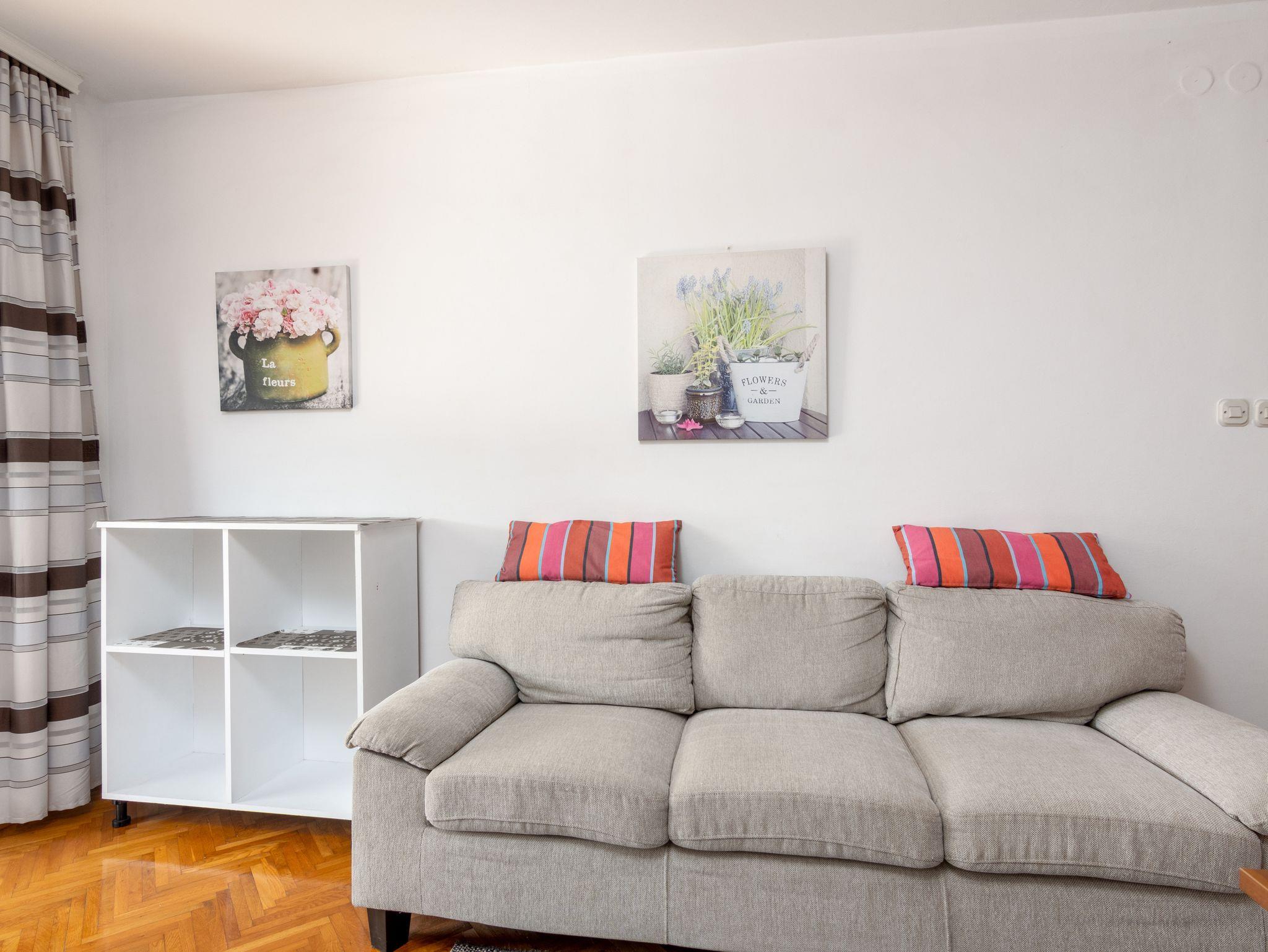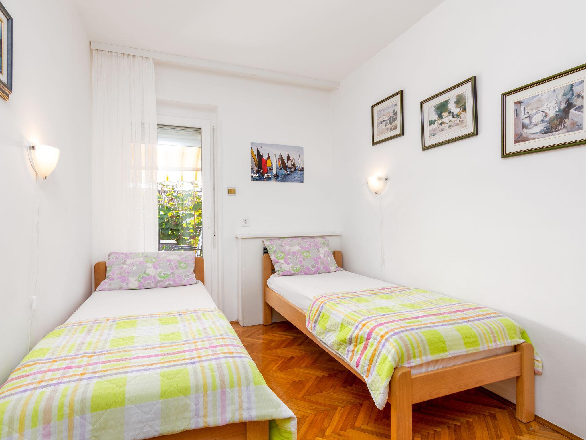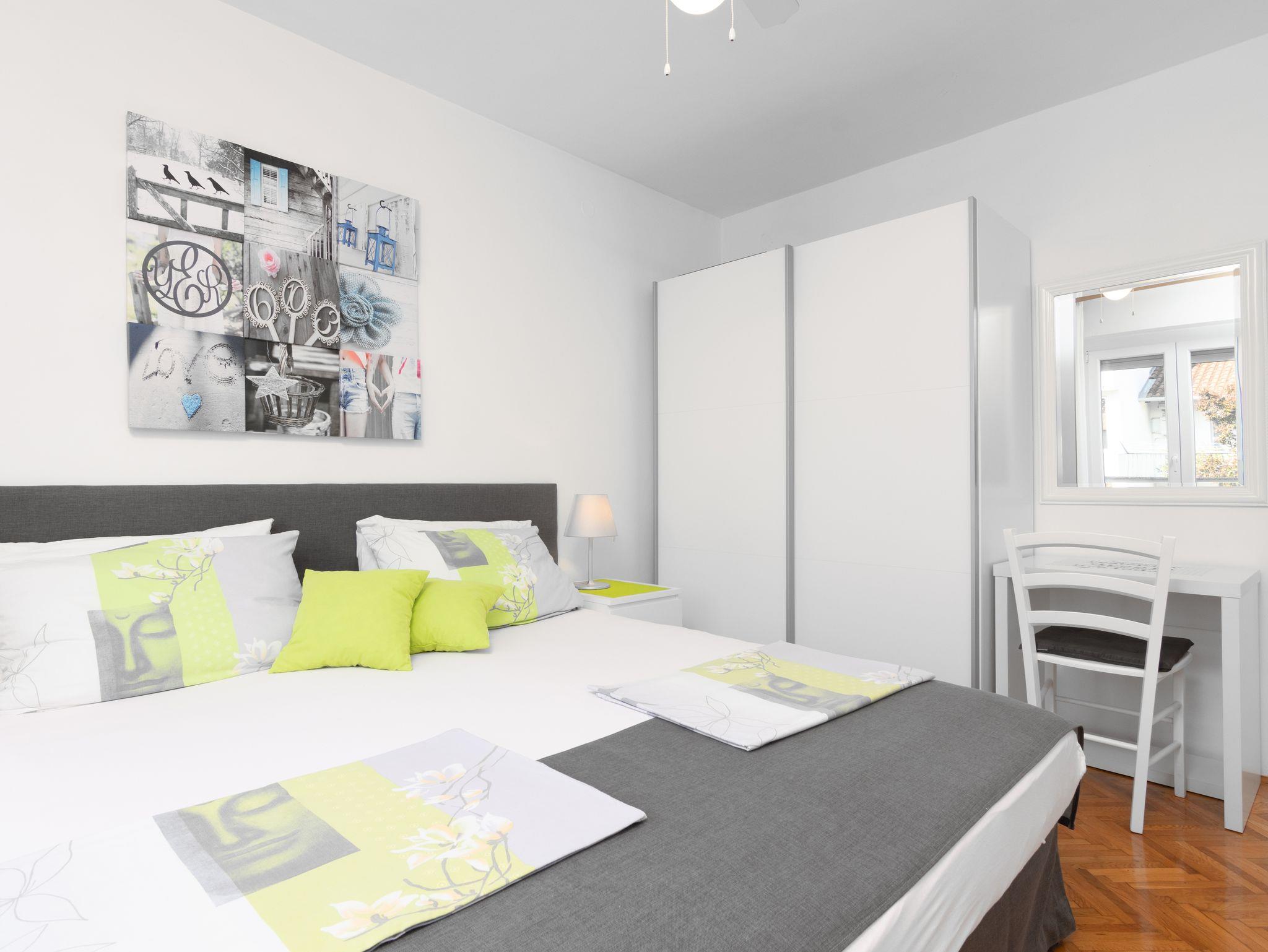 Ferienwohnung bietet Platz für 6 Gäste. Die Betten sind in Schlafzimmern, die es 3 gibt, innerhalb einer Gesamtfläche von 78m2, angeordnet. Die Gäste haben eine eigene Terrasse zur Verfügung, auf der sie in warmen Sommernächten genießen können. Es ist erlaubt, Speisen auf dem Gemeinschafts-Grill vorzubereiten. IM PREIS INBEGRIFFEN: Kurtaxe, Endreinigung, Klimatisierung, Parkplatz, Internet, Bügeleisen, Bügelbrett, Föhn. VERBINDLICHE ZUSÄTZLICHE KOSTEN: Aufzahlung für Kurzaufenthalte (prozentualer Zuschlag pro Nächtigungsanzahl: 30% - 1, 20% - 2, 10% - 3). Die Verfügbarkeit zusätzlicher Dienstleistungen in Ihrem reservierten Termin und die Preise derselben (falls nicht aufgeführt) müssen im Voraus überprüft werden. Zusätzliche Dienstleistungen die in der Zahlungsaufforderung nicht aufgeführt sind werden direkt beim Vermieter bezahlt, angenommen der Gast nutzt auch diese. Ermäßigung auf den Grundpreis: Gratistag 14=13 (bei einem Aufenthalt von 14 Tagen oder mehr erhalten Sie einen Gratistag für den Aufenthalt bis 31.12.26).