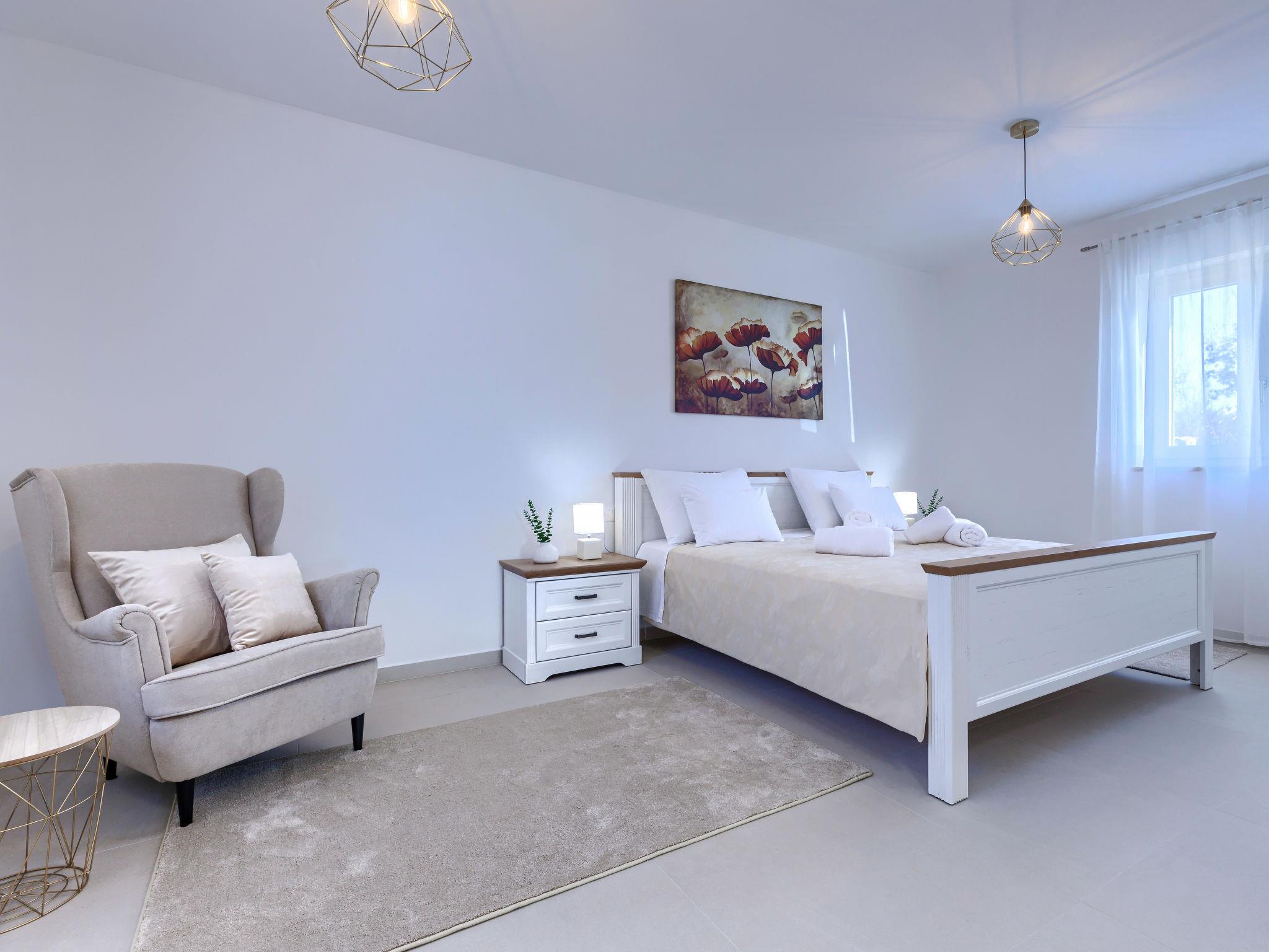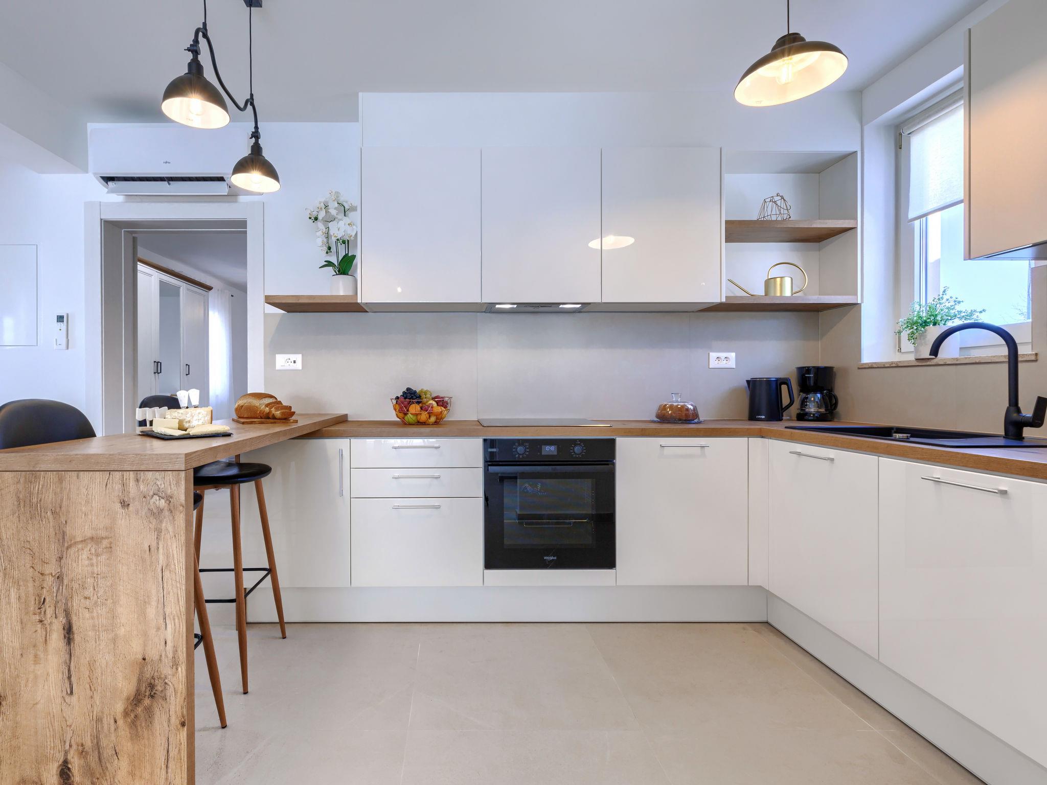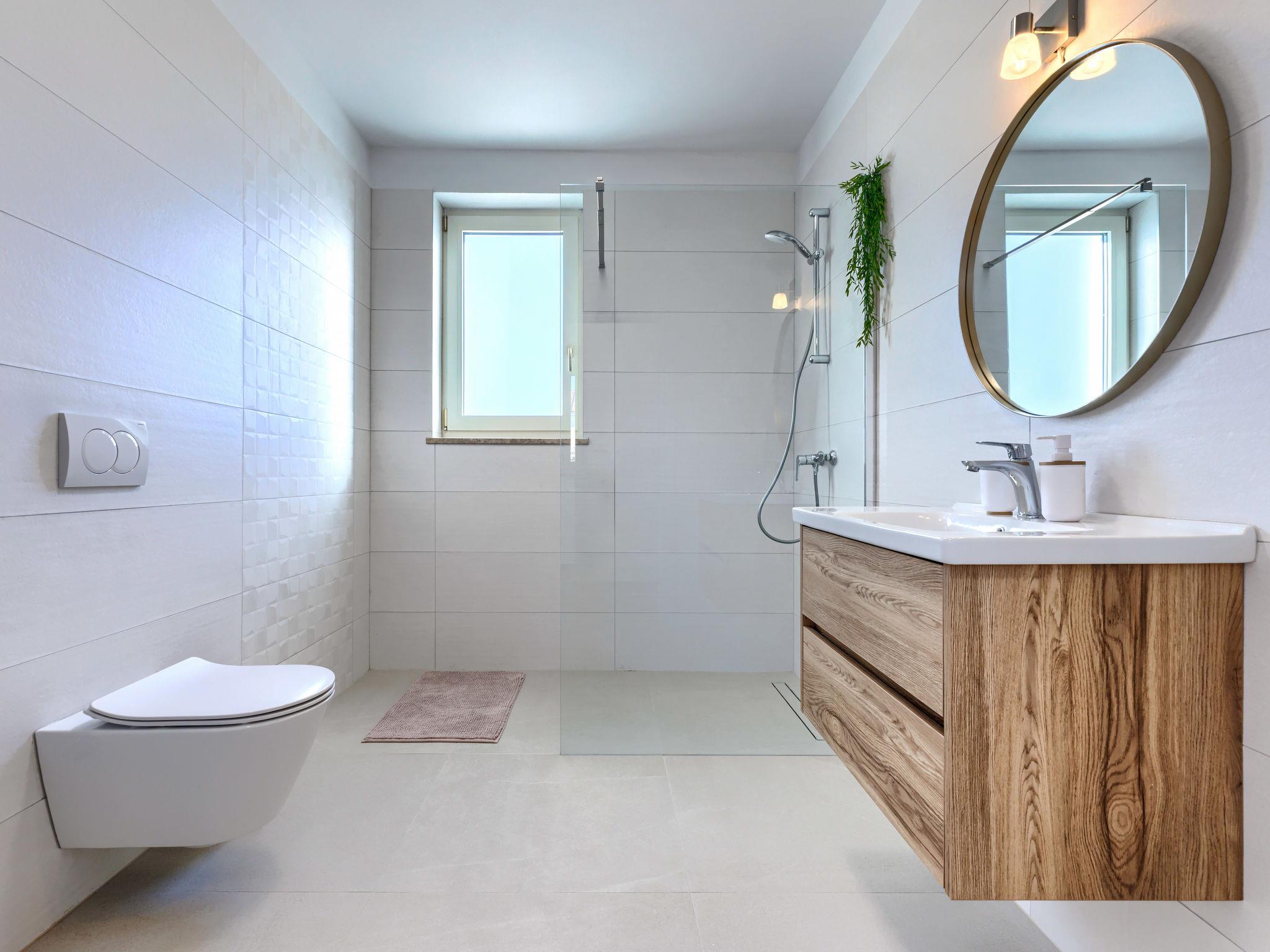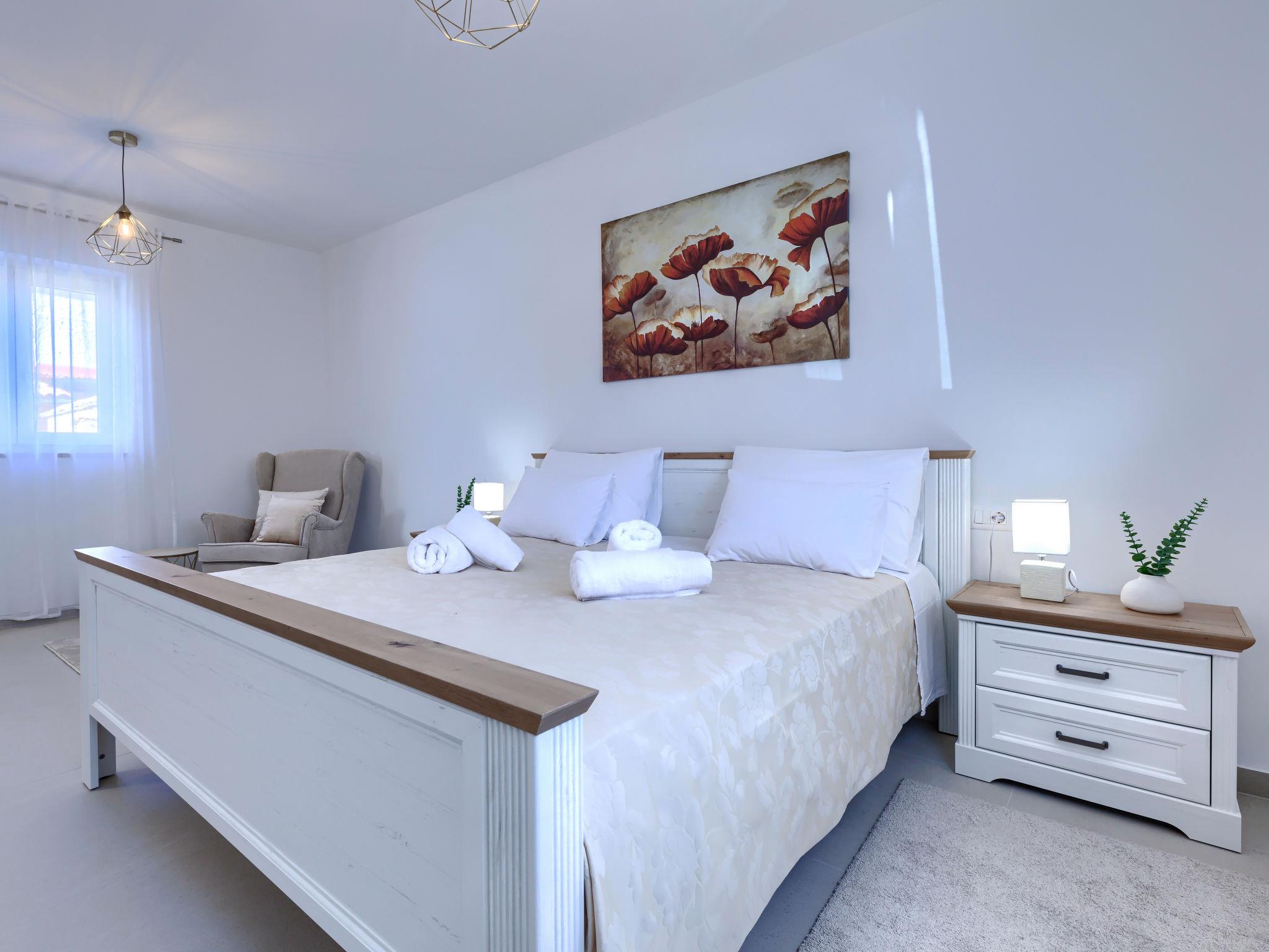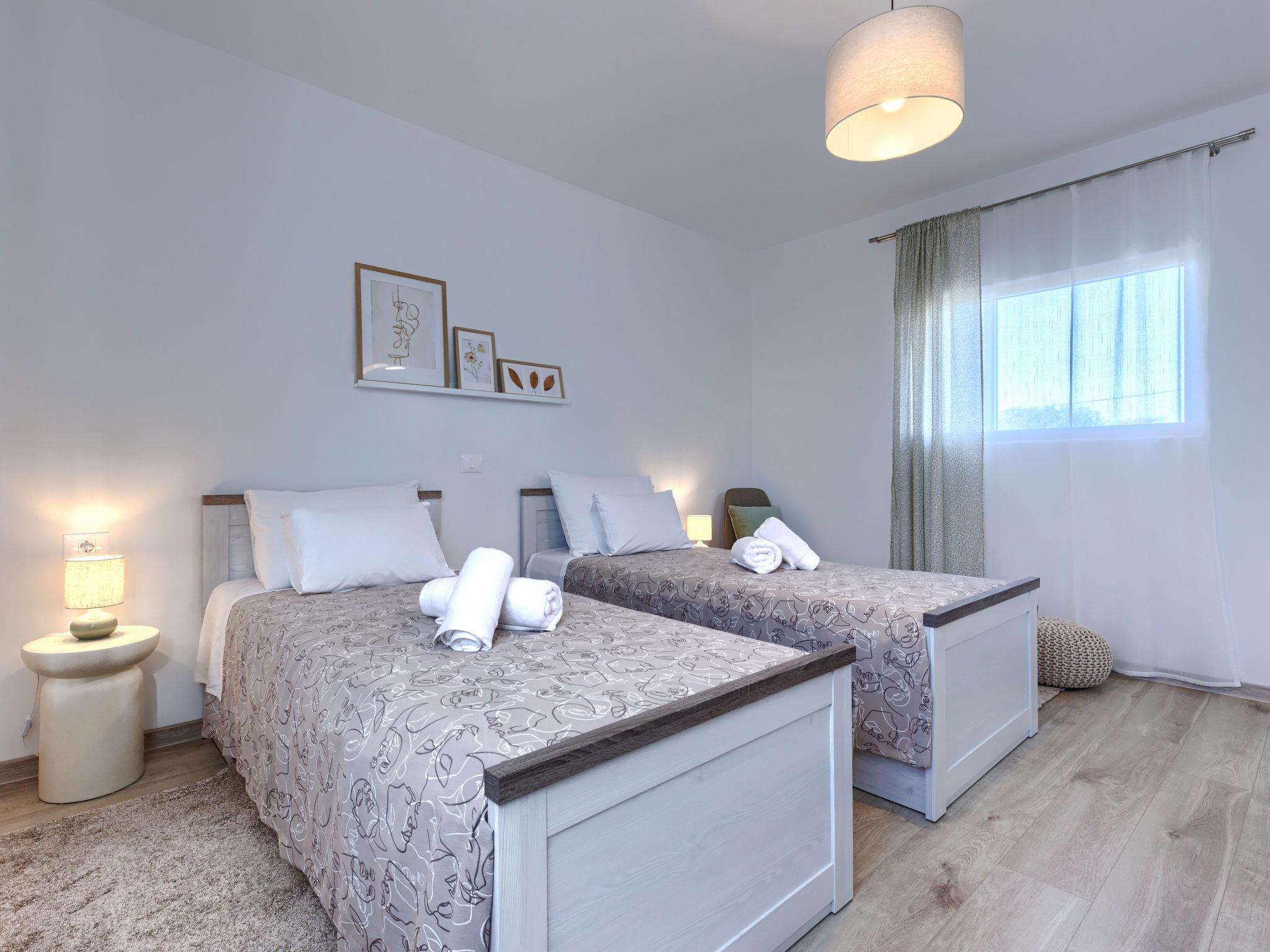 Modern, luxurious villa "Jolanda", 2 storeys, built in 2024. In the hamlet Pamici 4 km from the centre of Žminj, 25 km from the sea, 25 km from the beach. Private: property 7'000 m2 with lawn and trees, swimming pool angular (9 x 4 m, 36 m2, depth 140 cm, seasonal availability: 01.May. - 01.Oct.) with internal staircase. Outdoor shower, barbecue, barbecue house, children's playground (swing). In the house: internet access, washing machine. Parking (for 4 cars) at the house on the premises. Shop 2.8 km, supermarket 2.8 km, restaurant 3 km, bus stop 3.9 km, pebble beach 25 km. Nearby attractions: adventure park 20 km, zip line 15 km.