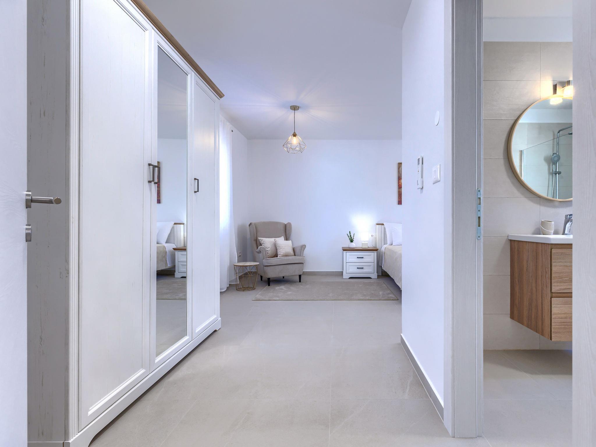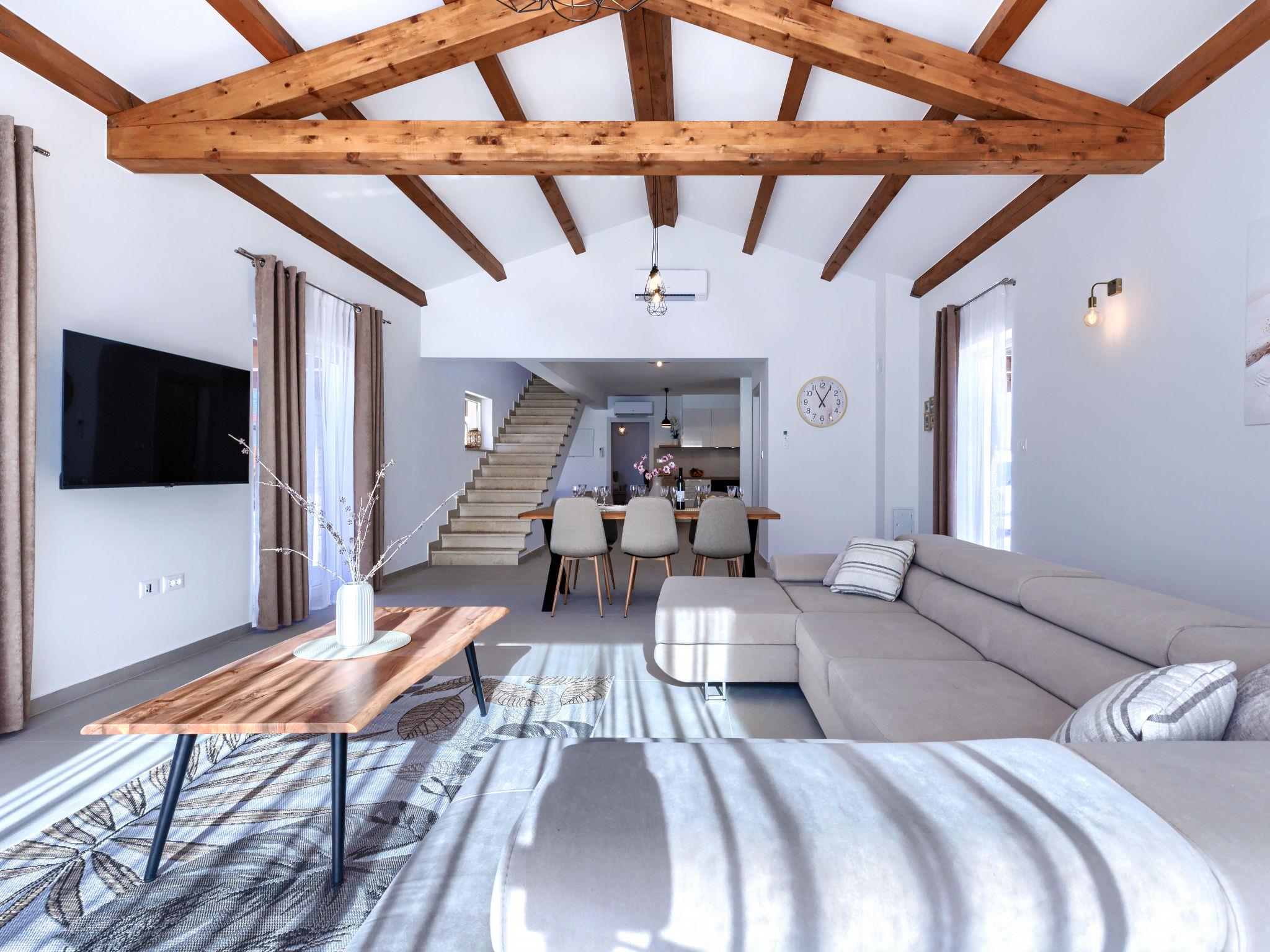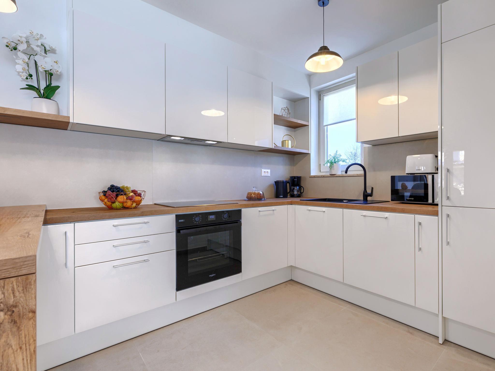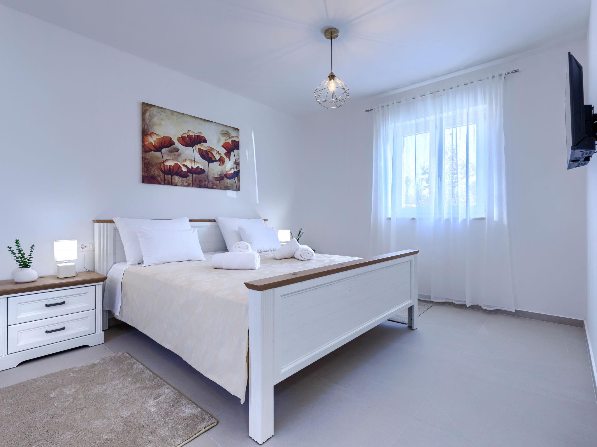 Modern, luxurious villa "Jolanda", 2 storeys, built in 2024. In the hamlet Pamici 4 km from the centre of Žminj, 25 km from the sea, 25 km from the beach. Private: property 7'000 m2 with lawn and trees, swimming pool angular (9 x 4 m, 36 m2, depth 140 cm, seasonal availability: 01.May. - 01.Oct.) with internal staircase. Outdoor shower, barbecue, barbecue house, children's playground (swing). In the house: internet access, washing machine. Parking (for 4 cars) at the house on the premises. Shop 2.8 km, supermarket 2.8 km, restaurant 3 km, bus stop 3.9 km, pebble beach 25 km. Nearby attractions: adventure park 20 km, zip line 15 km.