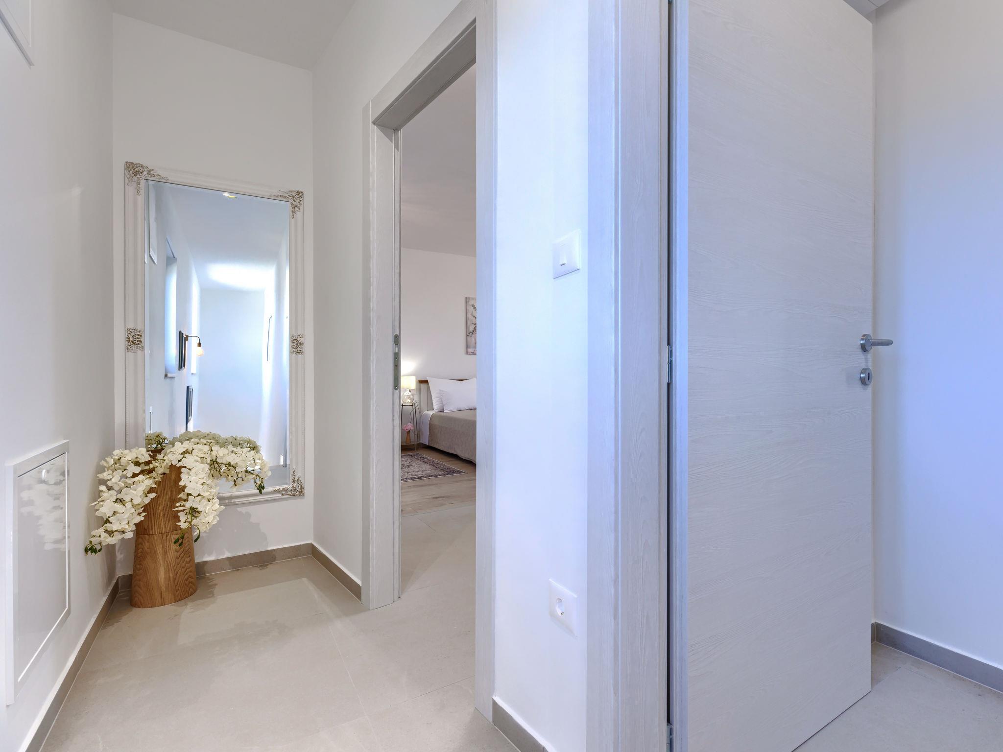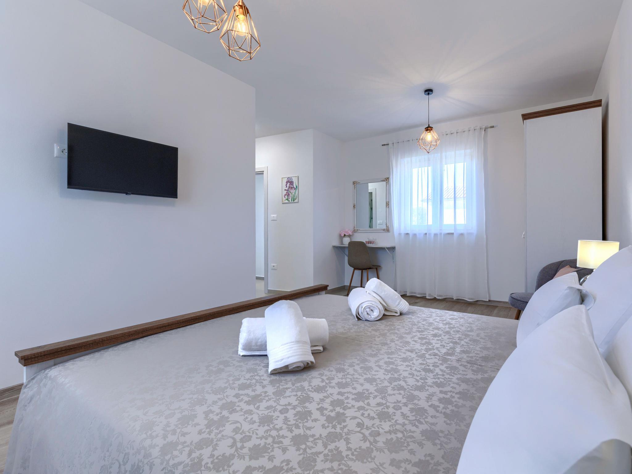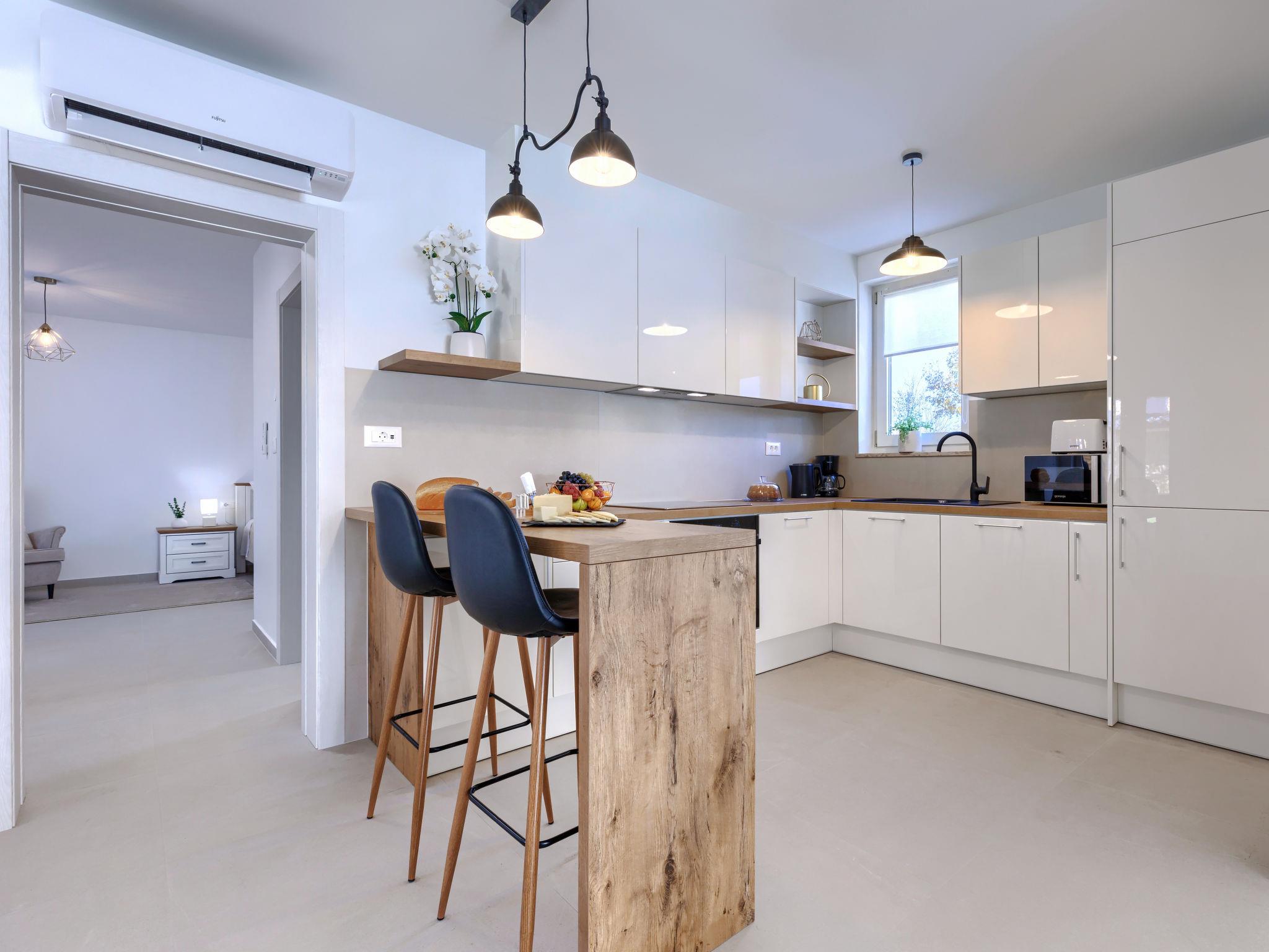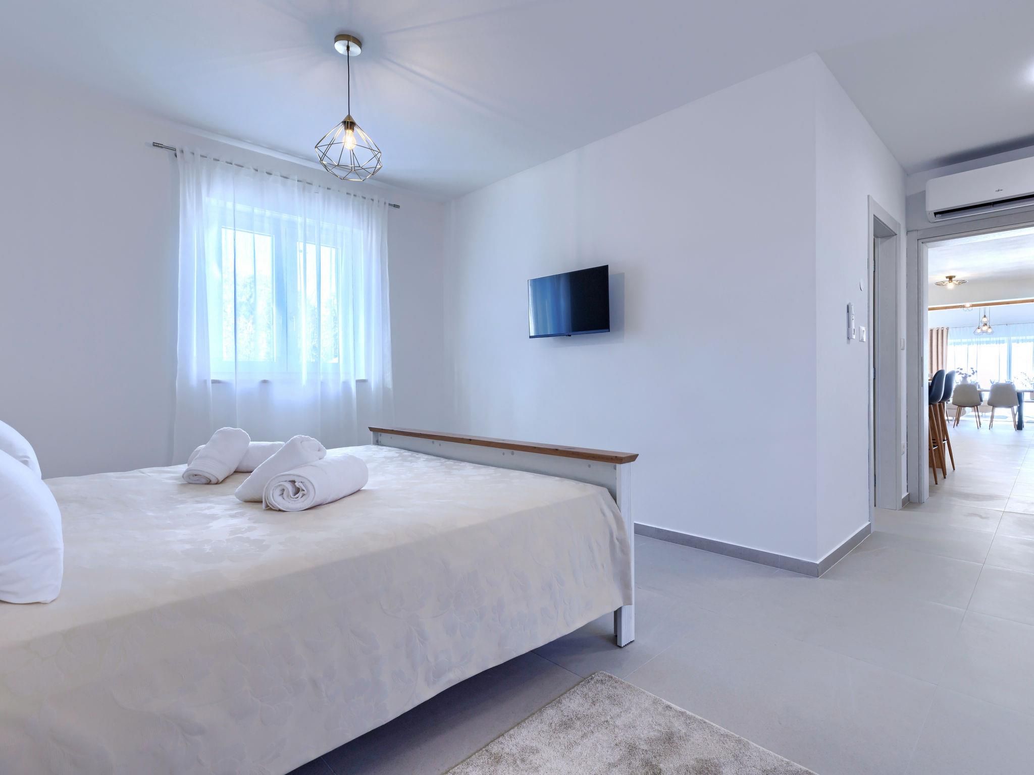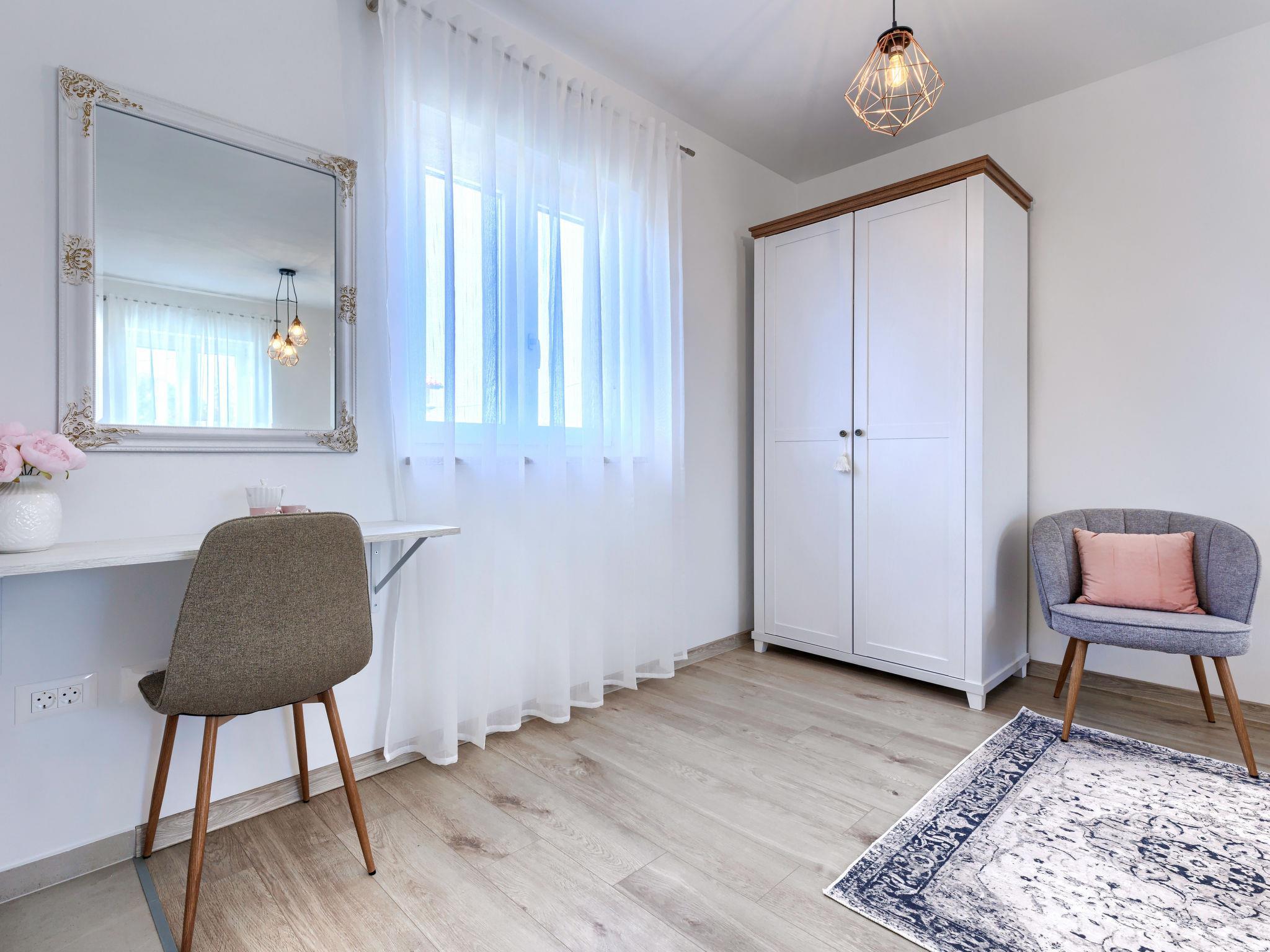 Modern, luxurious villa "Jolanda", 2 storeys, built in 2024. In the hamlet Pamici 4 km from the centre of Žminj, 25 km from the sea, 25 km from the beach. Private: property 7'000 m2 with lawn and trees, swimming pool angular (9 x 4 m, 36 m2, depth 140 cm, seasonal availability: 01.May. - 01.Oct.) with internal staircase. Outdoor shower, barbecue, barbecue house, children's playground (swing). In the house: internet access, washing machine. Parking (for 4 cars) at the house on the premises. Shop 2.8 km, supermarket 2.8 km, restaurant 3 km, bus stop 3.9 km, pebble beach 25 km. Nearby attractions: adventure park 20 km, zip line 15 km.