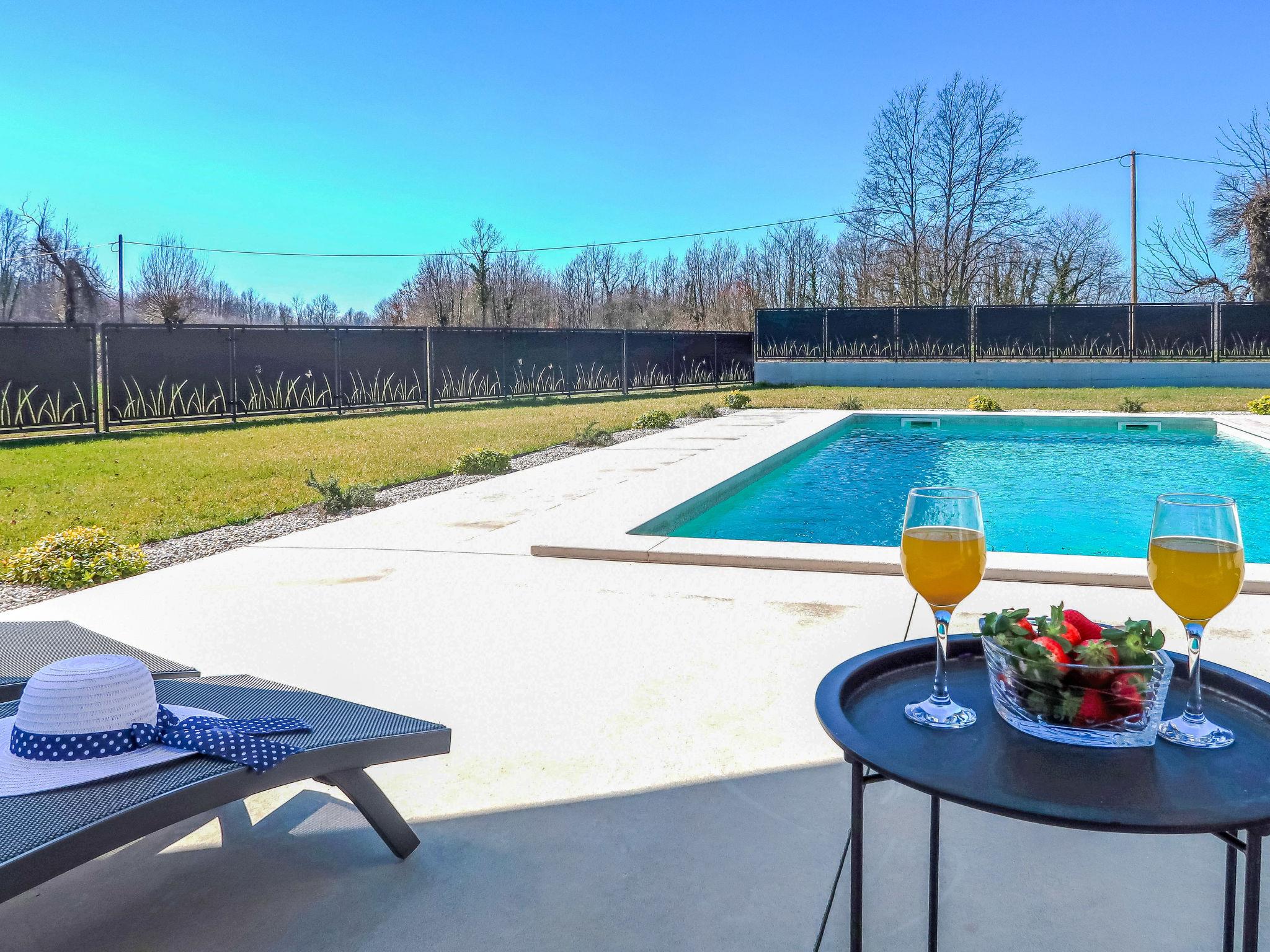 Beautiful single-family house "Villa Temelia", 2 storeys. In the hamlet Salamunišce 9 km from the centre of Žminj, 27 km from the sea, in the countryside. Private: property 1'000 m2 with lawn and wildlife garden, swimming pool angular (8 x 4 m, depth 140 cm, seasonal availability: 01.May. - 30.Oct.) with internal staircase and salt-electrolysis pool-cleaning system. Outdoor shower, terrace, barbecue (slide, swing), pool maintenance by the owner/gardener. In the house: internet access, trampoline, washing machine. Parking (for 3 cars) at the house on the premises. Shop 5 km, supermarket 9 km, restaurant 9 km, bus stop "Žminj" 9 km, pebble beach 27 km. Please note: airfield 34 km from the property.