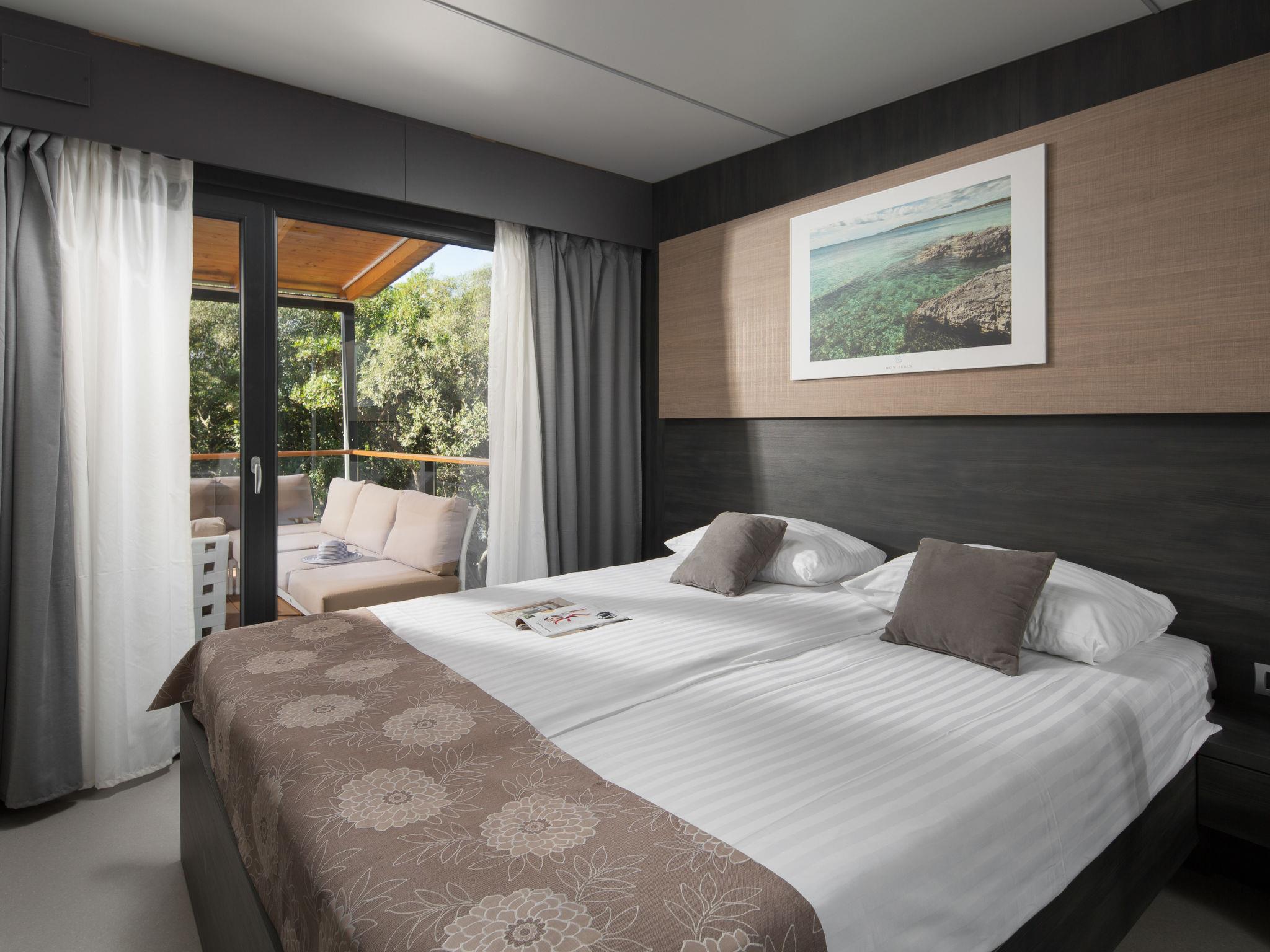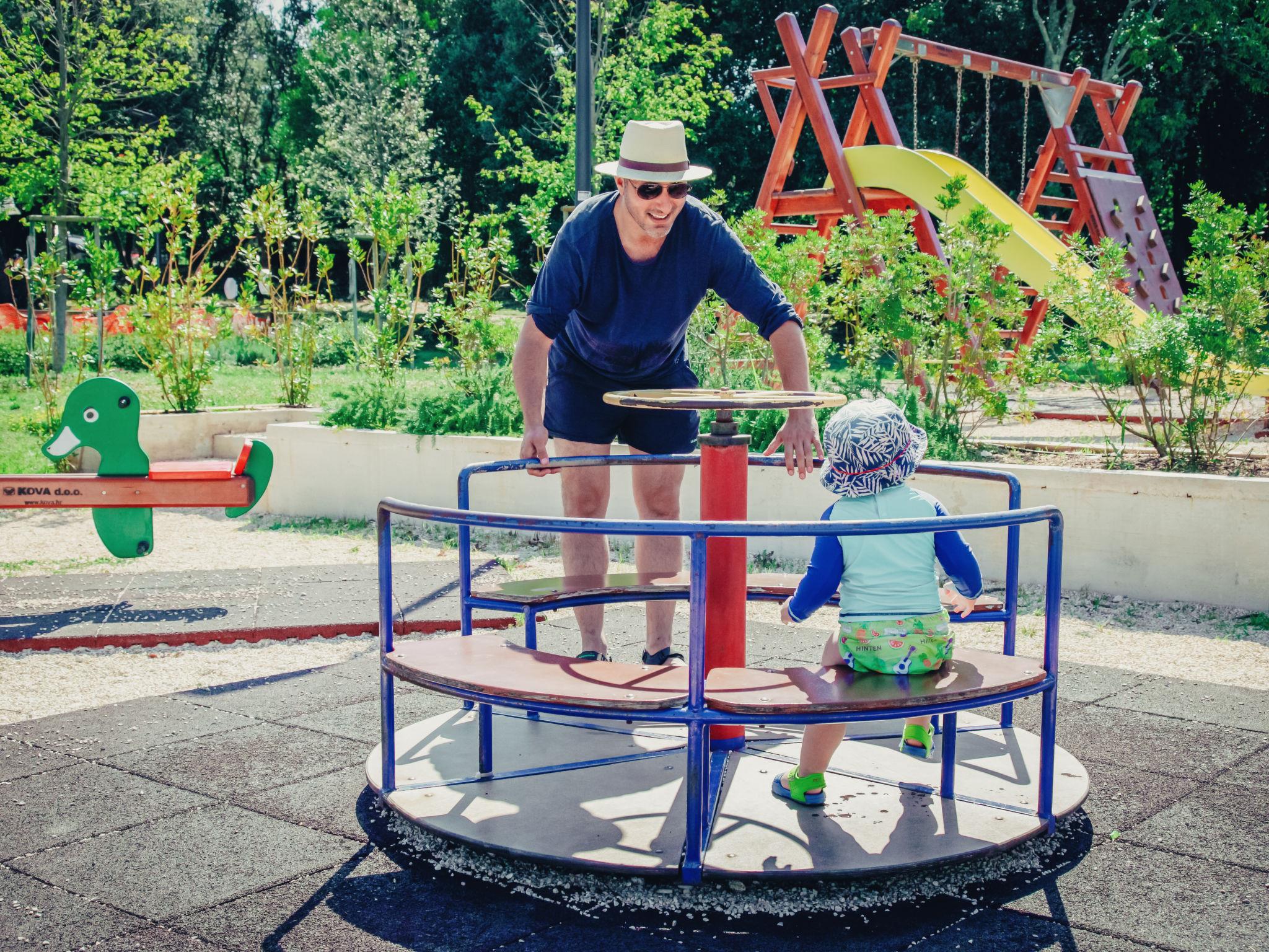 Child friendly resort "Mon Perin". 6 km from the centre of Bale, 17 km from the centre of Rovinj, in a quiet, sunny position, at the seaside, on the beach. For shared use: property with trees, swimming pool (400 m2, depth 45 - 135 cm, seasonal availability: 30.May. - 21.Sep.). Children's pool, tennis, basketball, boccia, beach volleyball, children's playground. In the complex: restaurant, bar, internet access, sauna (extra). Hot tub (extra). Infrared sauna, relaxation room, spa area (extra) hamam, table football, shopping facilities, bicycle rental. Parking at the house on the premises. E-charging station. Bus stop 4.2 km, pebble beach "Mon Perin", rocky beach "Mon Perin". Riding stable 500 m, walking paths from the house 100 m, cycle lane 150 m. Please note: entertainment. The camp has 1 additional paddling pool (90 m2, depth 60 cm, open from 01.06.-03.10.). Wellness and spa with indoor pool is for use only by adults over 18 years old.