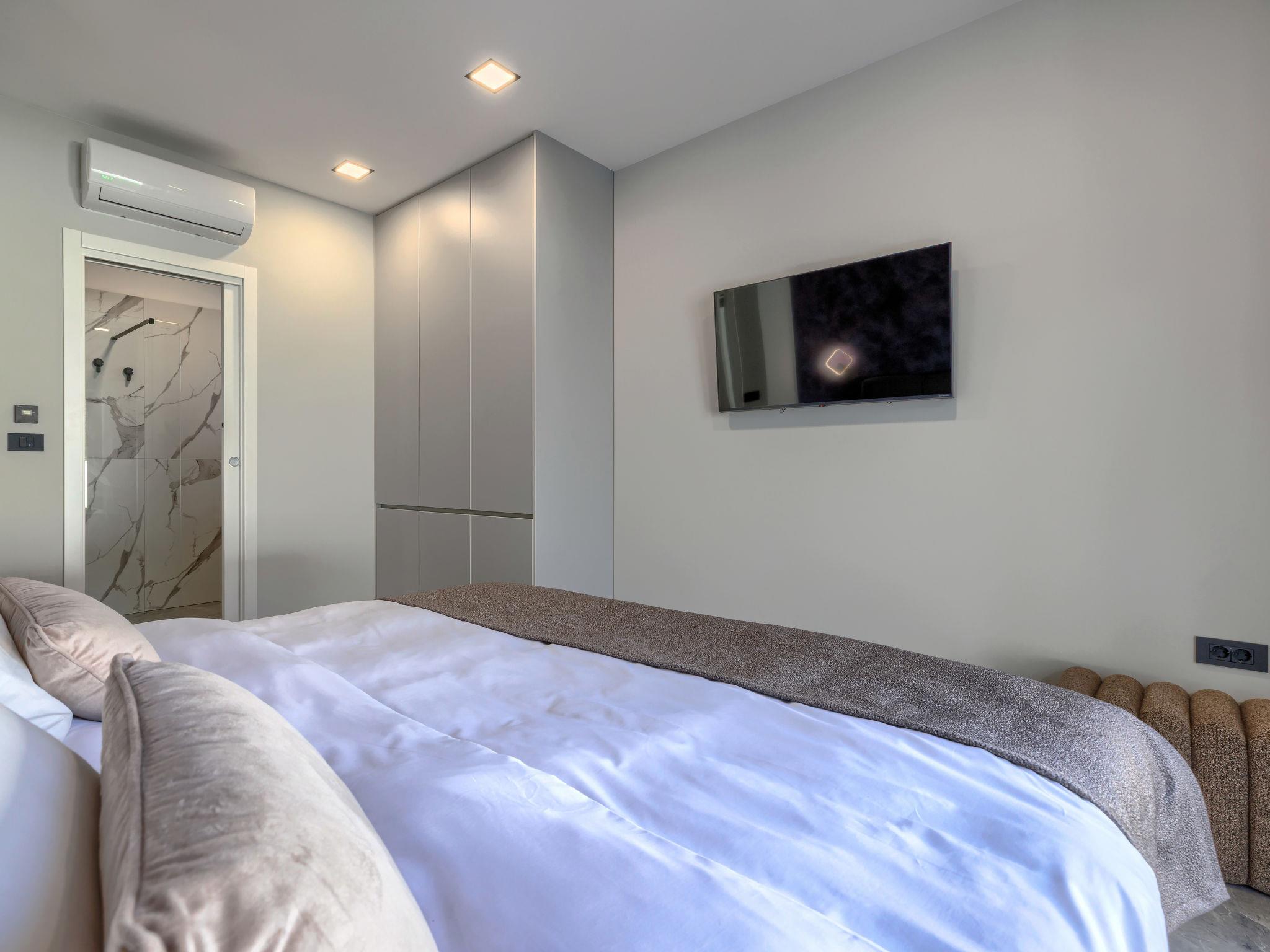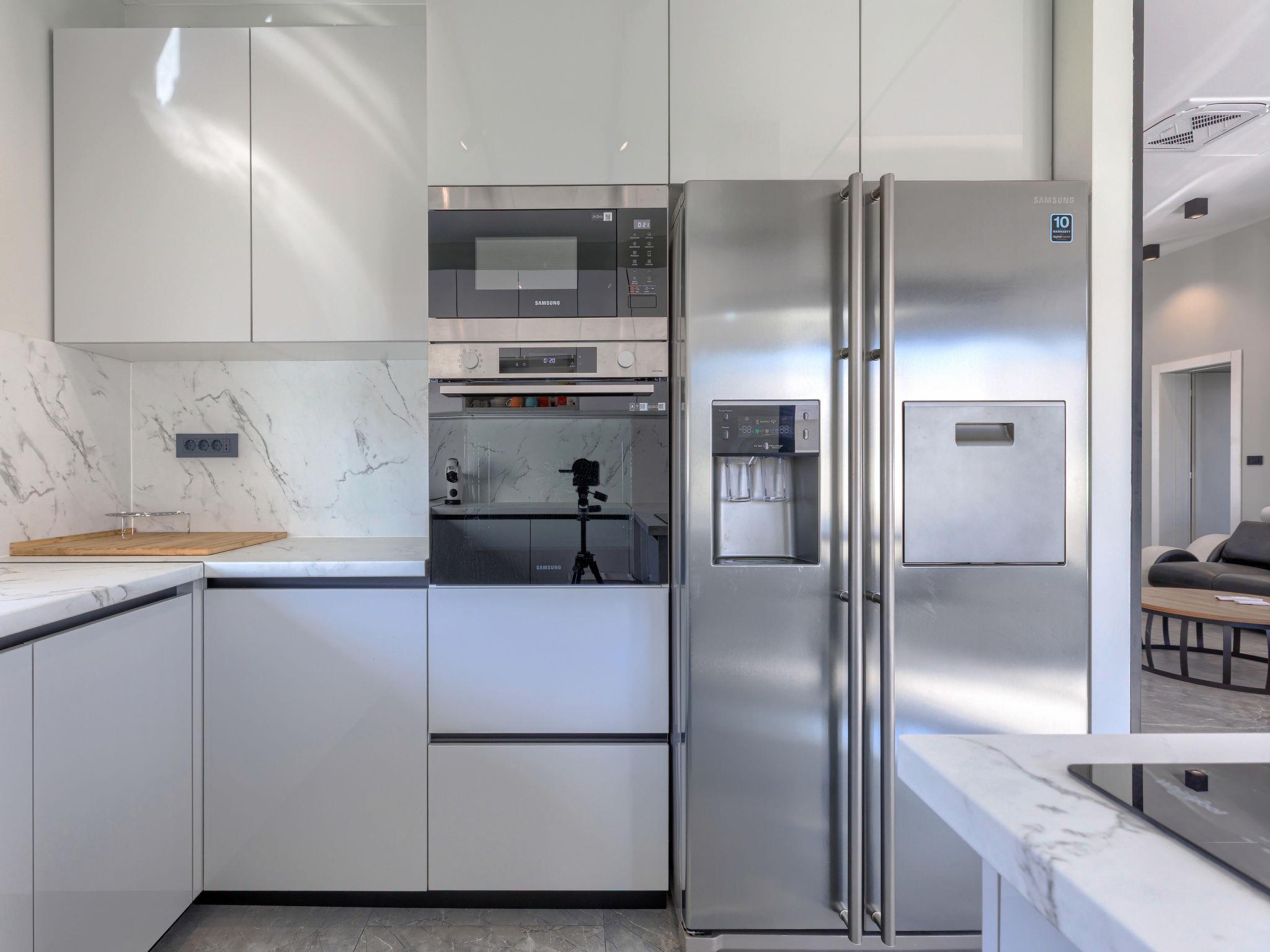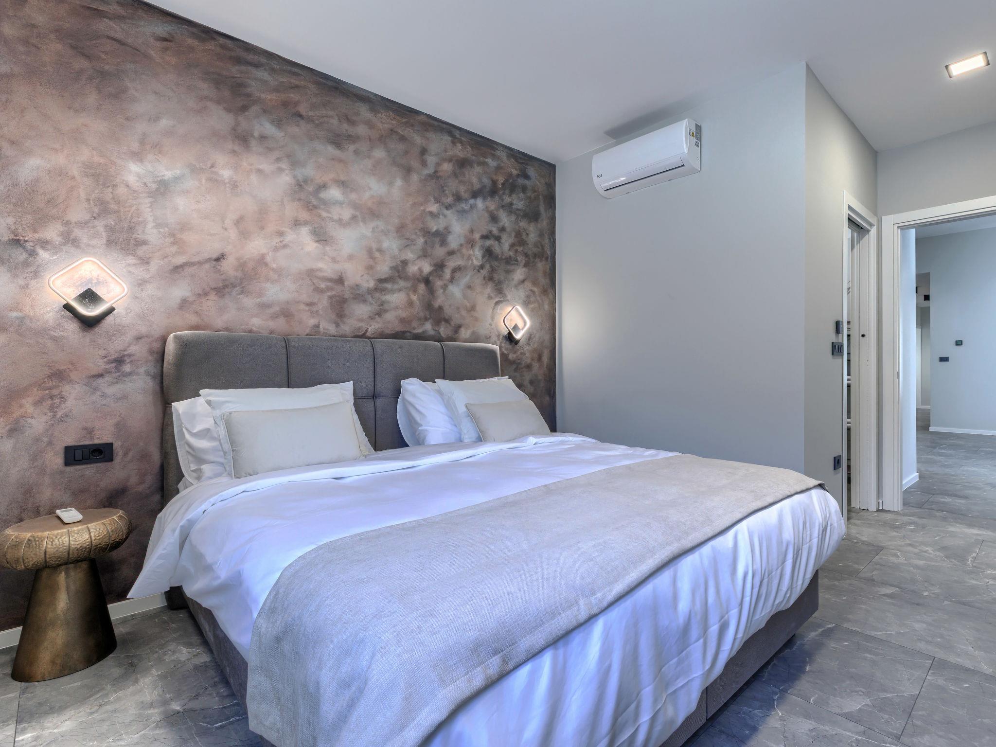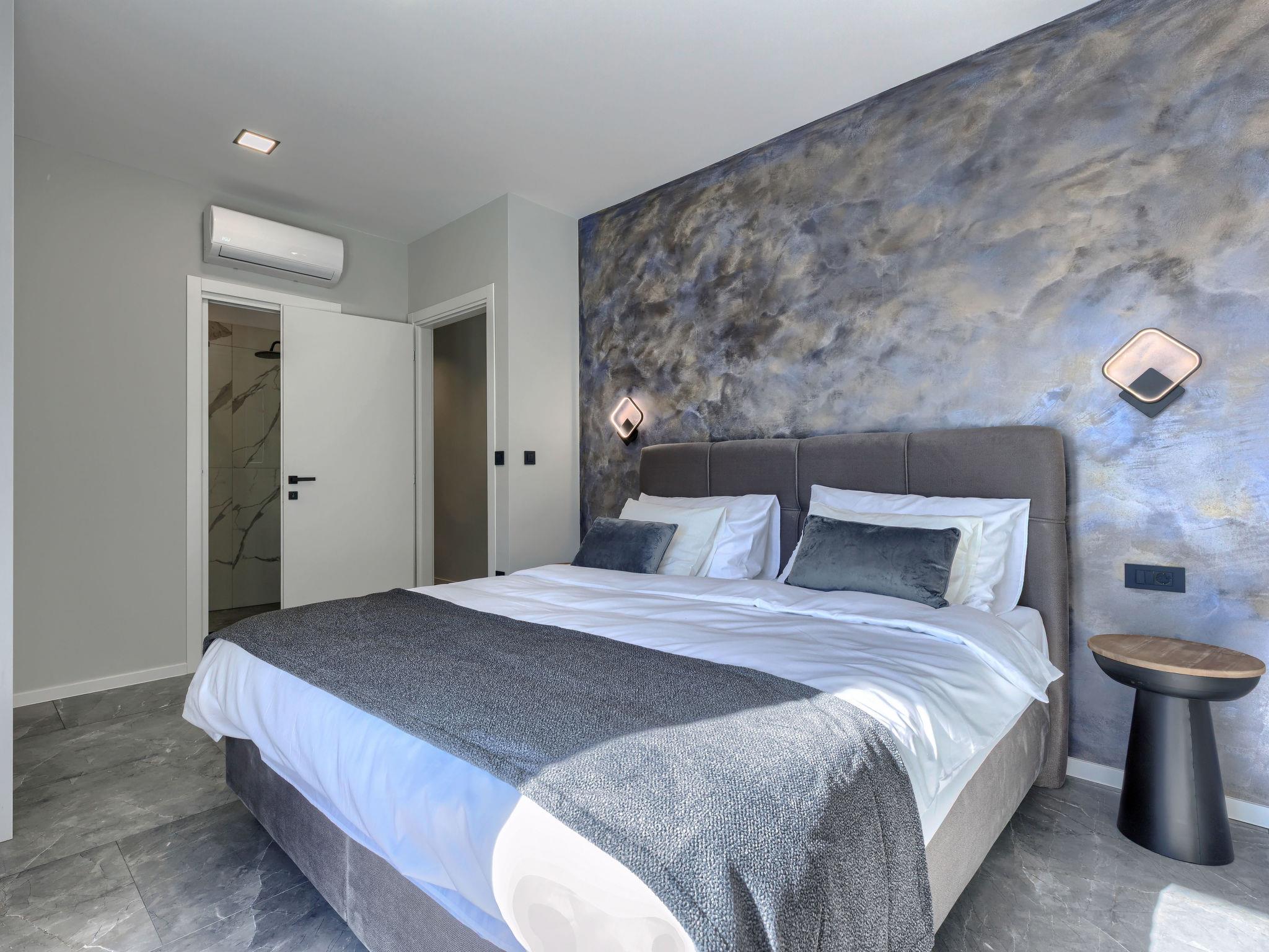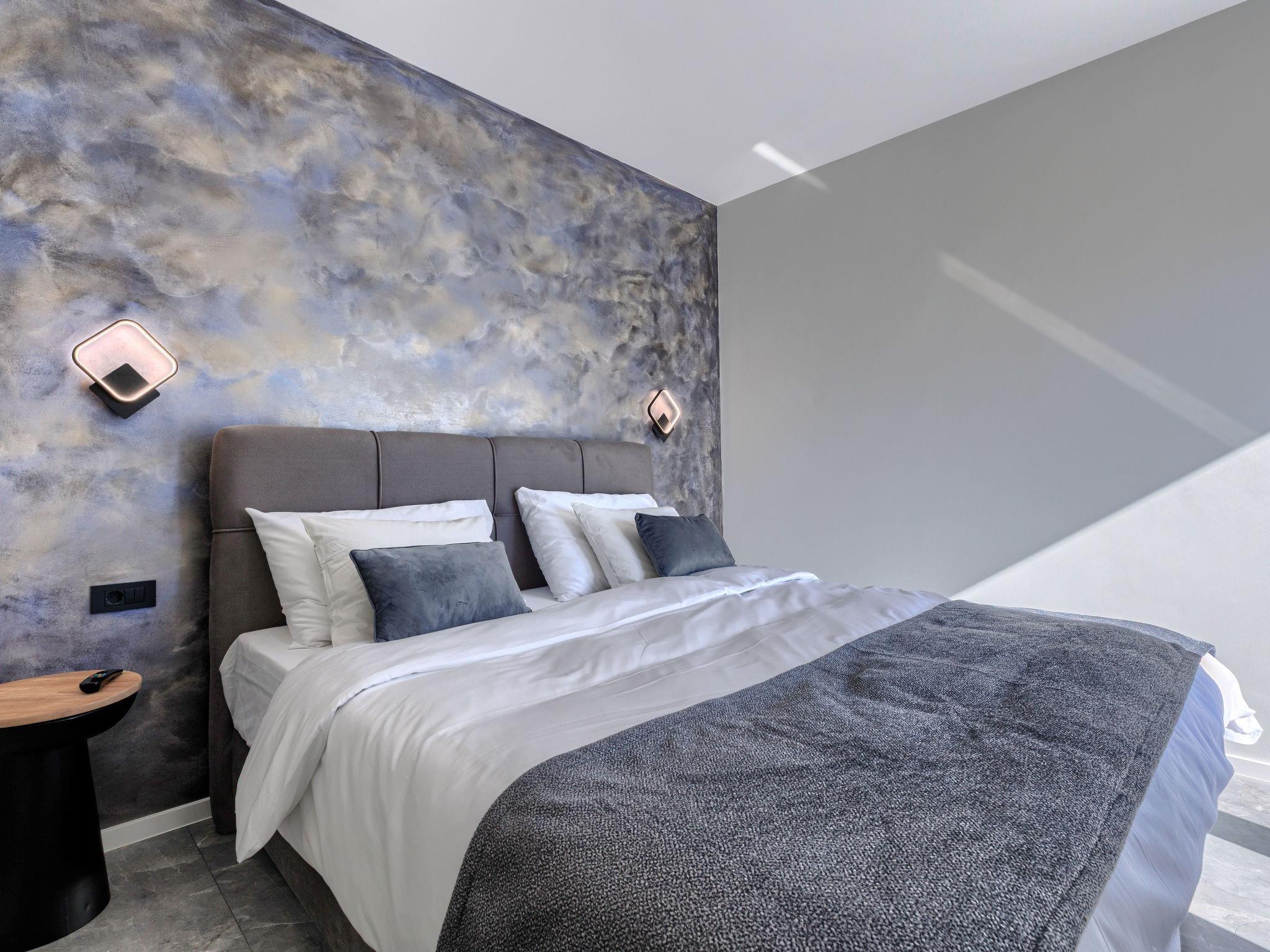 Modern villa "De Karlo", built in 2025. In the hamlet Ladici 9 km from the centre of Kanfanar, 26 km from the centre of Rovinj, 26 km from the sea. Private: property 908 m2 (fenced), swimming pool angular, heated (11 x 5 m, depth 140 cm, seasonal availability: 01.Mar. - 01.Dec.) with internal staircase and salt-electrolysis pool-cleaning system. Hot tub, pool house with fridge, shower and WC, table tennis, terrace (20 m2), garden furniture, barbecue. In the house: internet access, sauna, washing machine. Parking (for 4 cars) at the house on the premises. Shop 9 km, restaurant 5 km, bus stop 3 km, pebble beach 26 km. Groups of teenagers on request only. Swimming pool heated (extra). It is necessary to announce 7 days in advance if the pool heating is required.