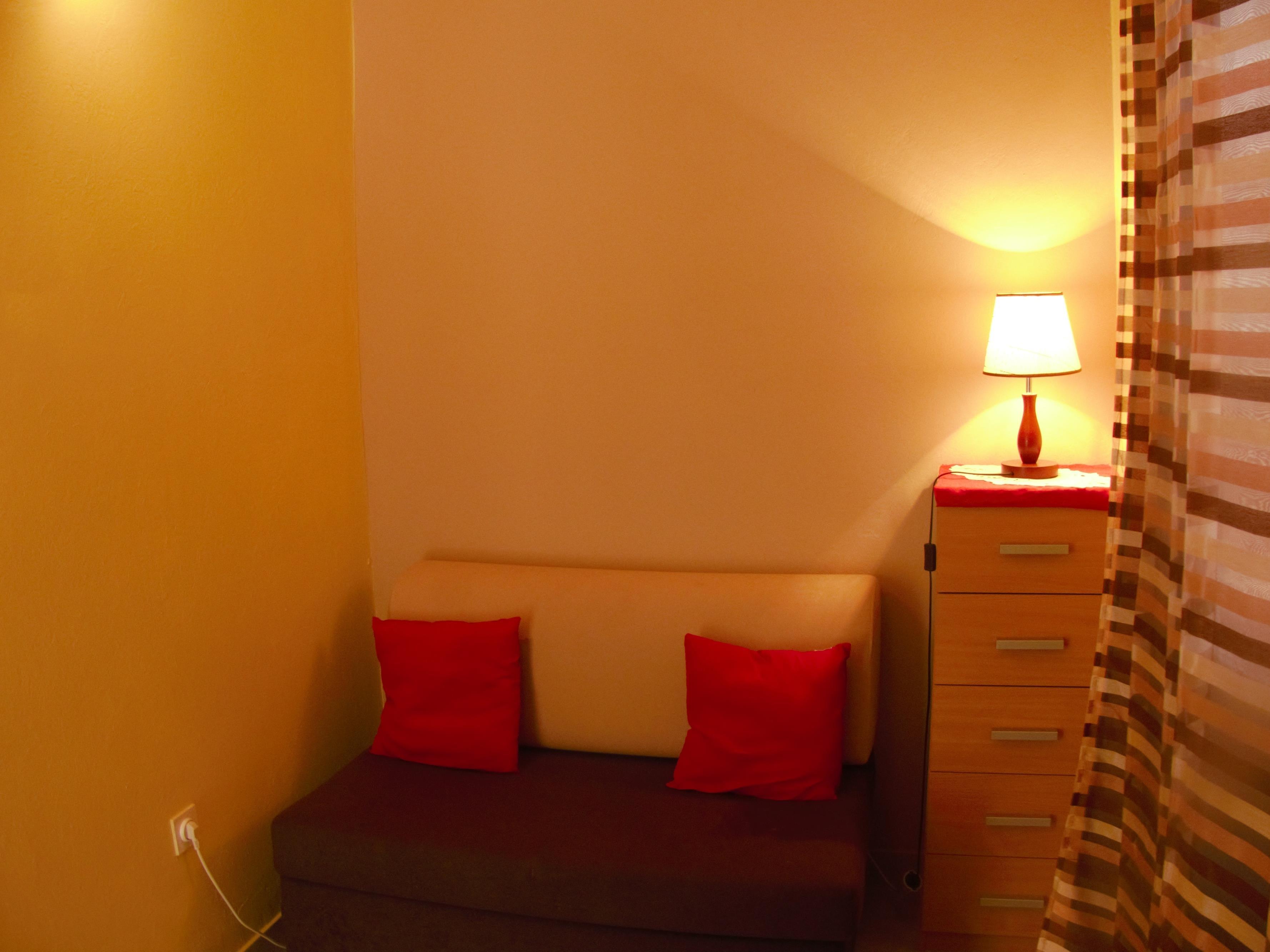 Studio flat can accommodate 3 guests. Beds are situated in 1 sleeping rooms, but also in the dining room, within 25m2. Guests can use a private terrace to enjoy the warm summer evenings. The studio offers the sea view. Food can be prepared using barbecue which is shared with other guests too. This accommodation unit welcomes pets at no additional costs.