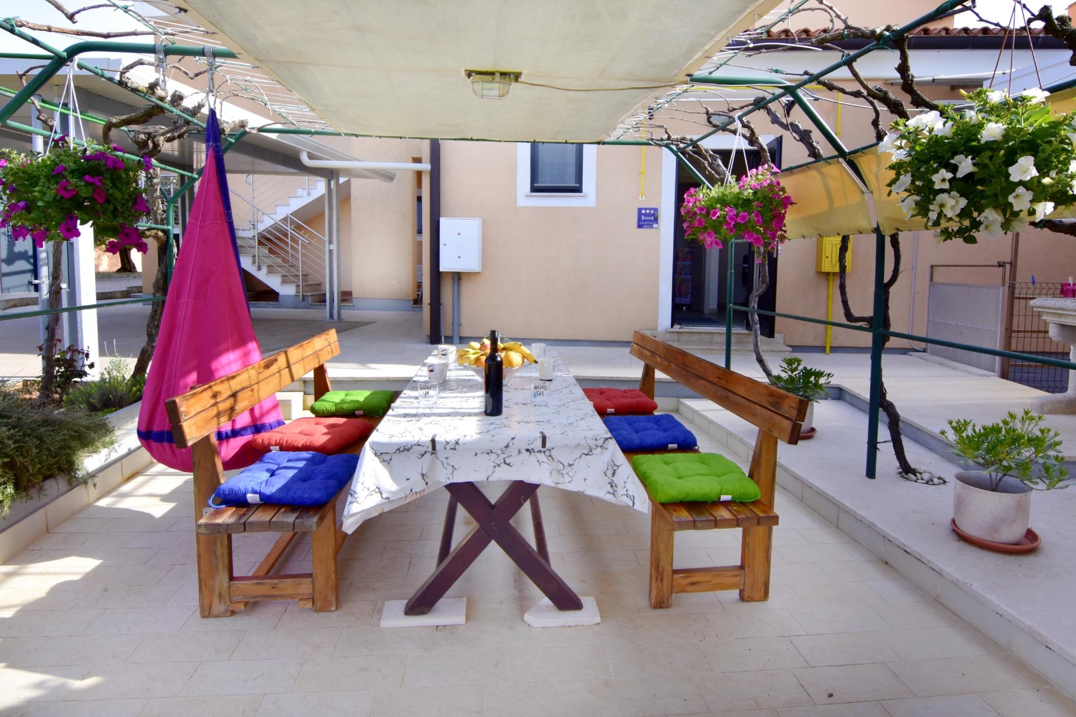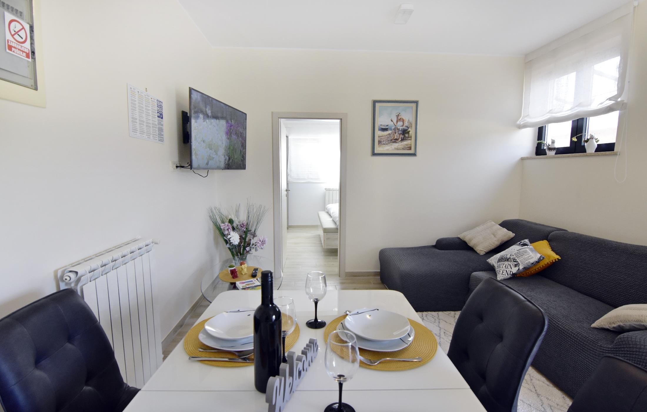 Apartment can accommodate 4 guests. Beds are situated in 1 sleeping rooms, but also in the living room, within 40m2. Guests can use a private terrace to enjoy the warm summer evenings. Food can be prepared using barbecue which is shared with other guests too.