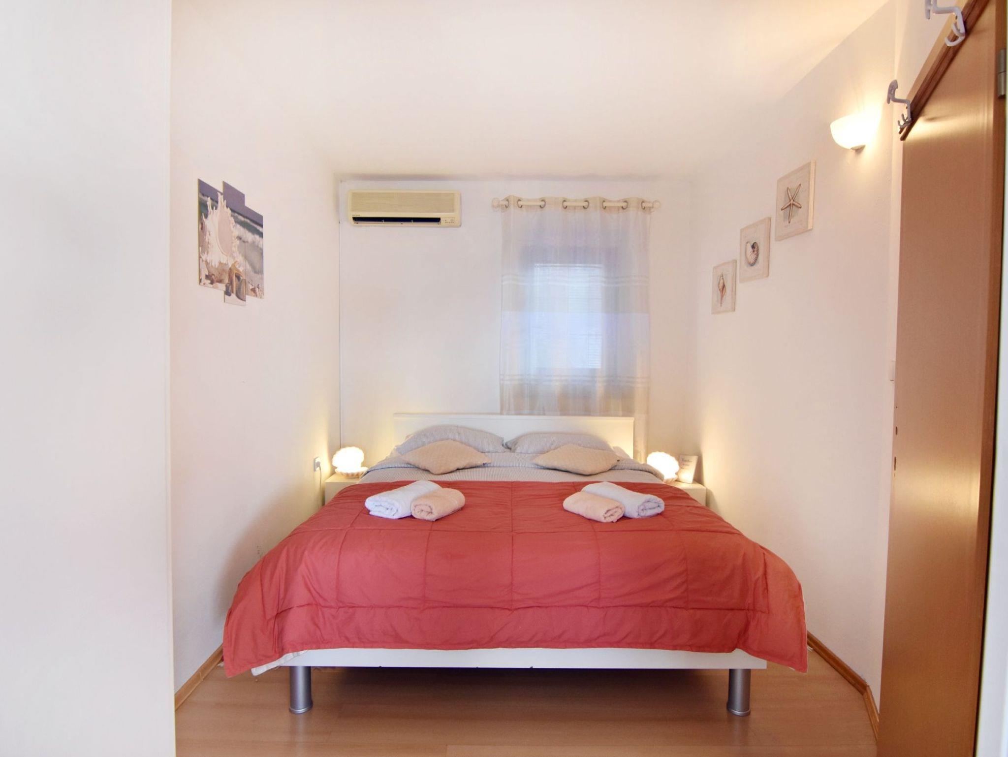 Ferienwohnung bietet Platz für 3 Gäste. Die Betten sind in Schlafzimmern, die es 1 gibt, und in Wohnzimmer, innerhalb einer Gesamtfläche von 31m2, angeordnet. Die Gäste haben eine eigene Terrasse zur Verfügung, auf der sie in warmen Sommernächten genießen können. Das Apartment bietet Meerblick. Es ist erlaubt, Speisen auf dem Gemeinschafts-Grill vorzubereiten. IM PREIS INBEGRIFFEN: Kurtaxe, Endreinigung, Klimatisierung, Parkplatz, Internet, Bügeleisen, Bügelbrett, Föhn, tragbarer Grill. Die Verfügbarkeit zusätzlicher Dienstleistungen in Ihrem reservierten Termin und die Preise derselben (falls nicht aufgeführt) müssen im Voraus überprüft werden. Zusätzliche Dienstleistungen die in der Zahlungsaufforderung nicht aufgeführt sind werden direkt beim Vermieter bezahlt, angenommen der Gast nutzt auch diese.