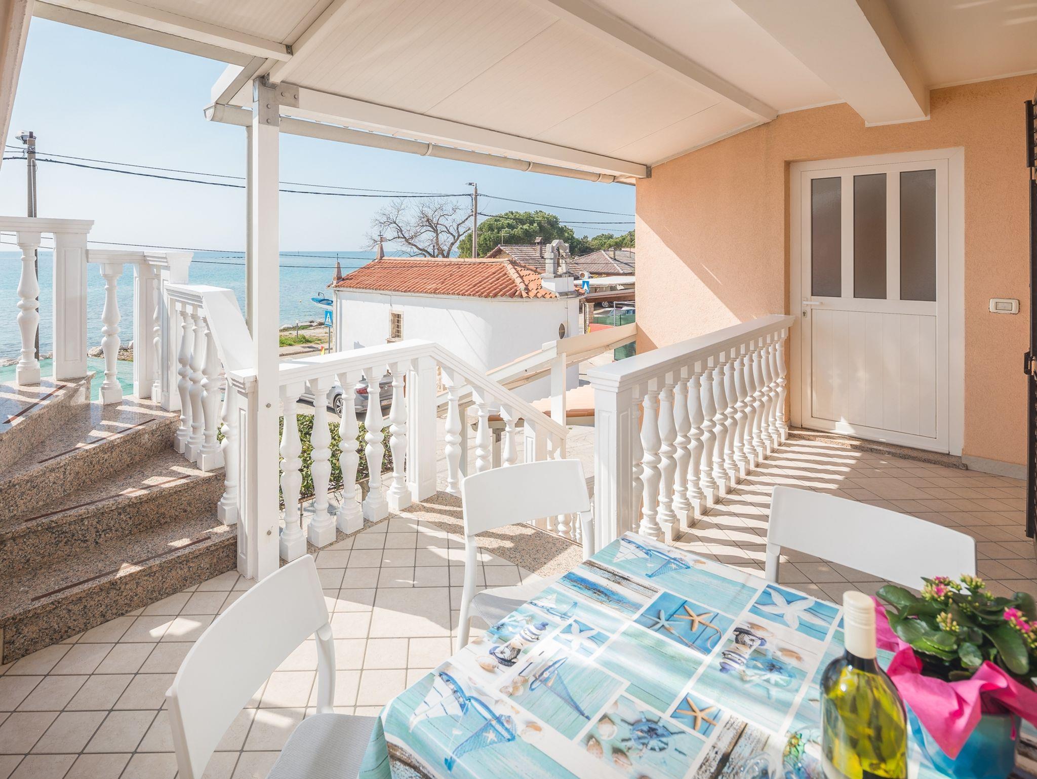Ferienwohnung bietet Platz für 4 Gäste. Die Betten sind in Schlafzimmern, die es 2 gibt, innerhalb einer Gesamtfläche von 43m2, angeordnet. Die Gäste haben eine eigene Terrasse zur Verfügung, auf der sie in warmen Sommernächten genießen können. Das Apartment bietet Meerblick. In der Unterkunftseinheit besteht die Möglichkeit des Mitbringens von Haustieren gegen Aufpreis. Durch die Terrasse der gebuchten Unterkunftseinheit gehen auch andere Gäste oder Vermieter. IM PREIS INBEGRIFFEN: Kurtaxe, Endreinigung, Klimatisierung, Zentralheizung, Parkplatz, Internet, Föhn. VERBINDLICHE ZUSÄTZLICHE KOSTEN: Aufzahlung für Kurzaufenthalte (prozentualer Zuschlag pro Nächtigungsanzahl: 30% - 1, 20% - 2, 10% - 3). UNVERBINDLICHE ZUSÄTZLICHE KOSTEN: Wäschewaschen (3,00 € Waschen), Haustiere (10,00 € pro Nacht), Zusatzbett (10,00 € pro Nacht). Die Verfügbarkeit zusätzlicher Dienstleistungen in Ihrem reservierten Termin und die Preise derselben (falls nicht aufgeführt) müssen im Voraus überprüft werden. Zusätzliche Dienstleistungen die in der Zahlungsaufforderung nicht aufgeführt sind werden direkt beim Vermieter bezahlt, angenommen der Gast nutzt auch diese.