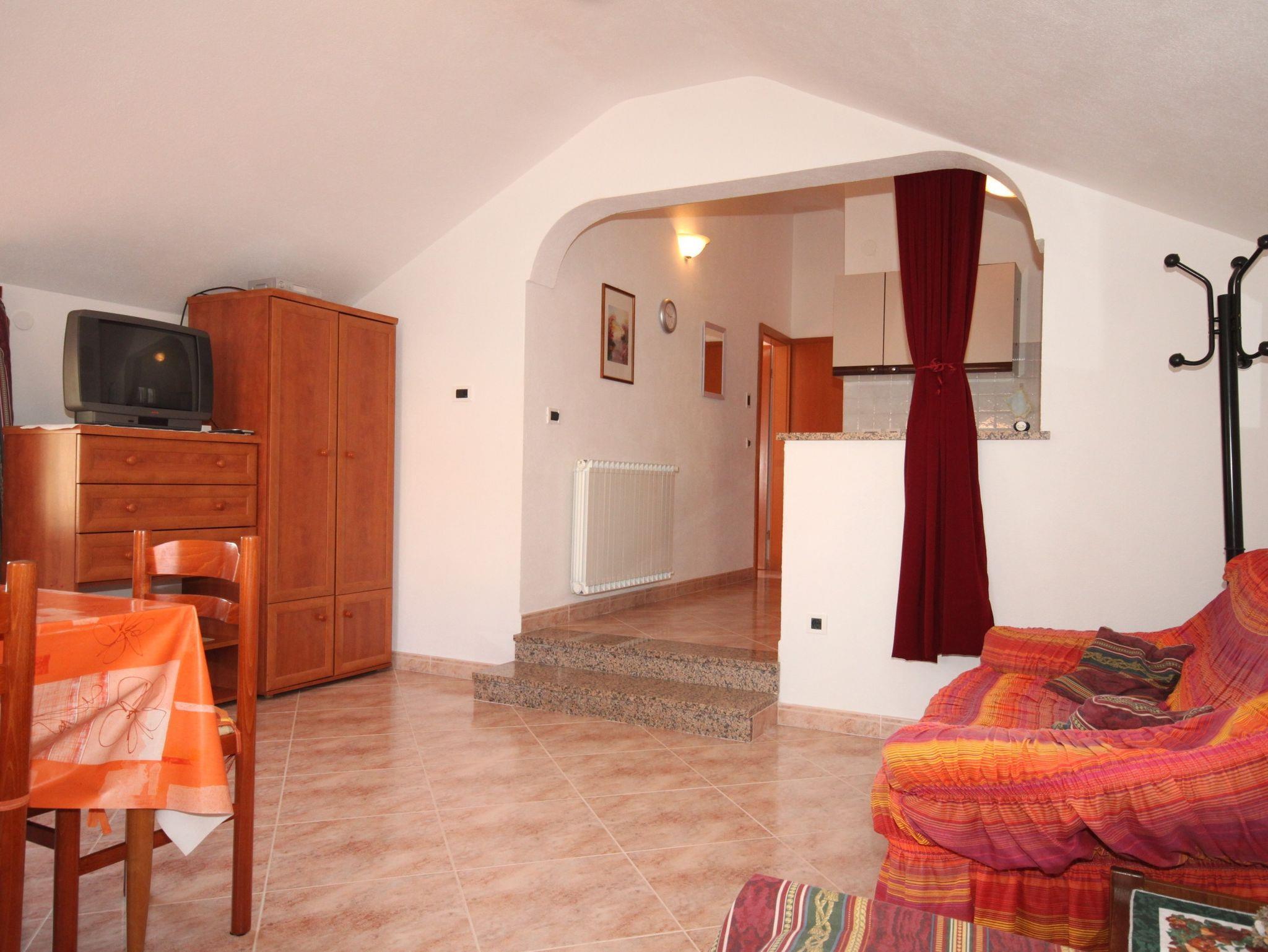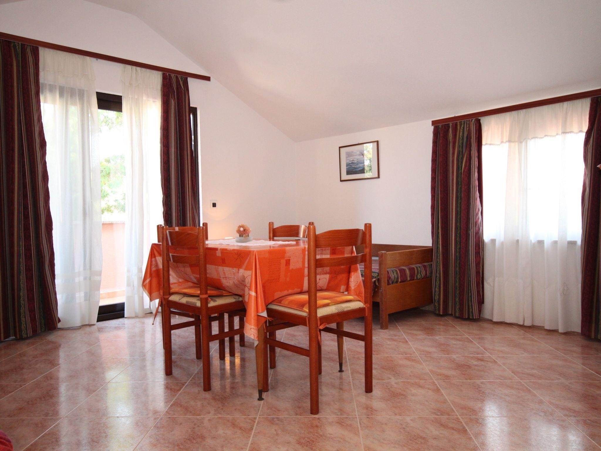 Ferienwohnung bietet Platz für 4 Gäste. Die Betten sind in Schlafzimmern, die es 1 gibt, und in Esszimmer, innerhalb einer Gesamtfläche von 47m2, angeordnet. Die Gäste haben einen eigenen Balkon zur Verfügung, auf der sie in warmen Sommernächten genießen können. Das Apartment bietet Meerblick. Es ist erlaubt, Speisen auf dem Gemeinschafts-Grill vorzubereiten. IM PREIS INBEGRIFFEN: Kurtaxe, Endreinigung, Zentralheizung, Parkplatz, Internet, Föhn, Sonnenschirm. VERBINDLICHE ZUSÄTZLICHE KOSTEN: Aufzahlung für Kurzaufenthalte (prozentualer Zuschlag pro Nächtigungsanzahl: 30% - 1, 20% - 2, 10% - 3). UNVERBINDLICHE ZUSÄTZLICHE KOSTEN: Klimatisierung (5,00 € pro Nacht), Wäschewaschen (10,00 € Waschen), Zusatzbett (20,00 € pro Nacht). Die Verfügbarkeit zusätzlicher Dienstleistungen in Ihrem reservierten Termin und die Preise derselben (falls nicht aufgeführt) müssen im Voraus überprüft werden. Zusätzliche Dienstleistungen die in der Zahlungsaufforderung nicht aufgeführt sind werden direkt beim Vermieter bezahlt, angenommen der Gast nutzt auch diese.