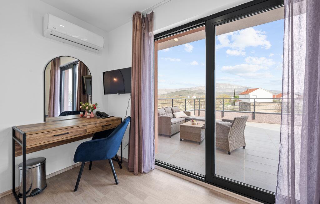 Sie haben die Wahl zwischen zwei Dachterrassen, auf der Sie gesellige Stunden in der Sonne und den Ausblick auf die Landschaft genießen können. Vom Wohnraum gelangen Sie auf das Sonnendeck mit privatem Pool, der Ihnen an warmen Tagen die erwünscht Erfrischung gibt.
