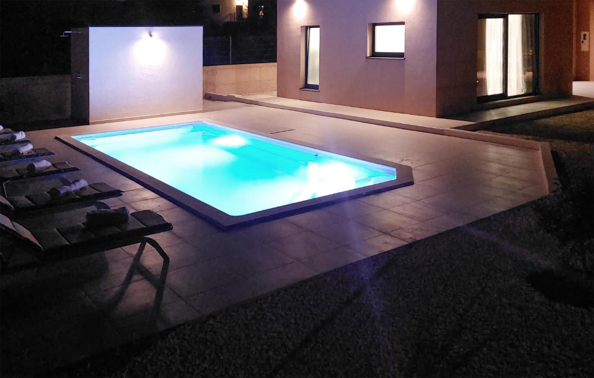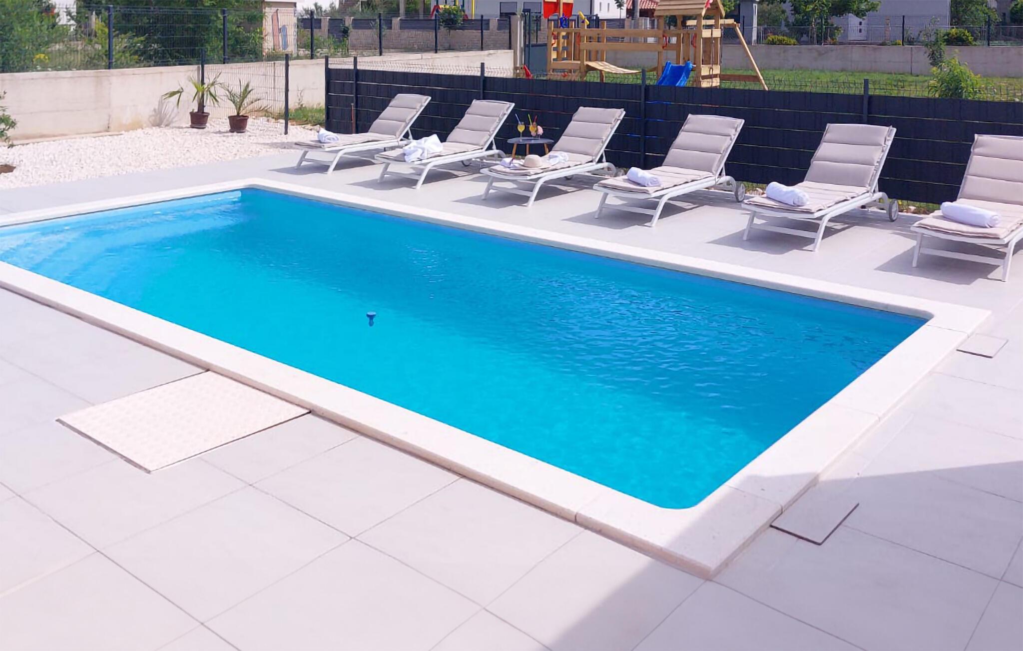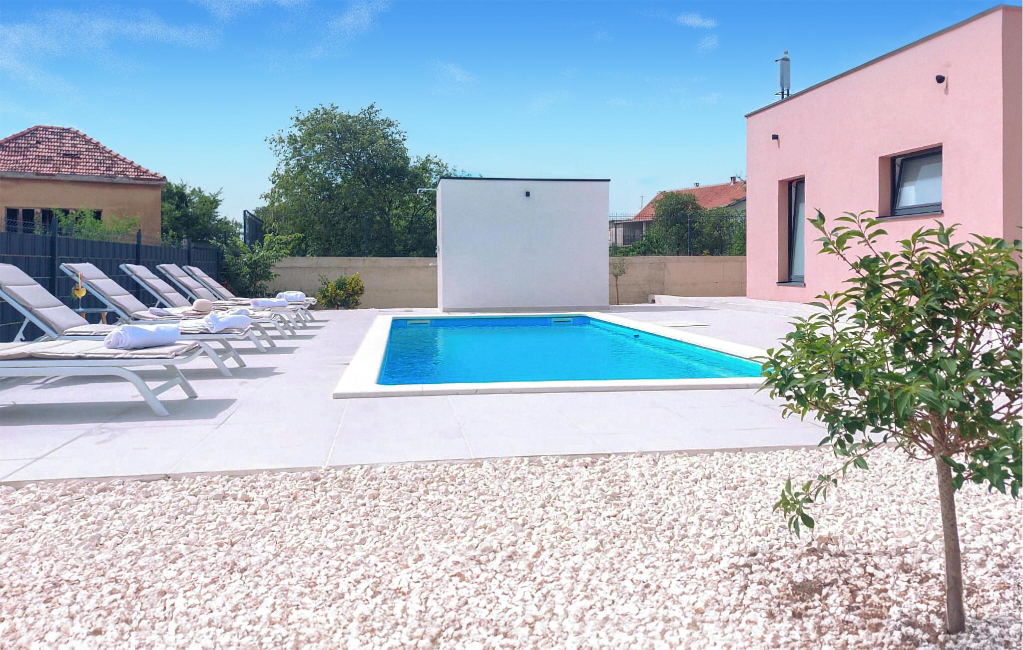 Schönes Ferienhaus mit geräumiger Dachterrasse und privatem Pool.