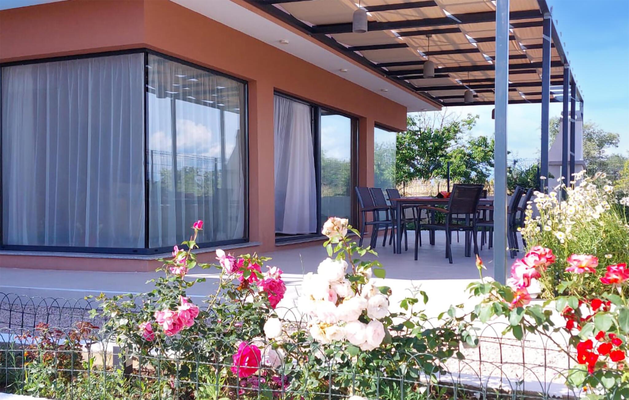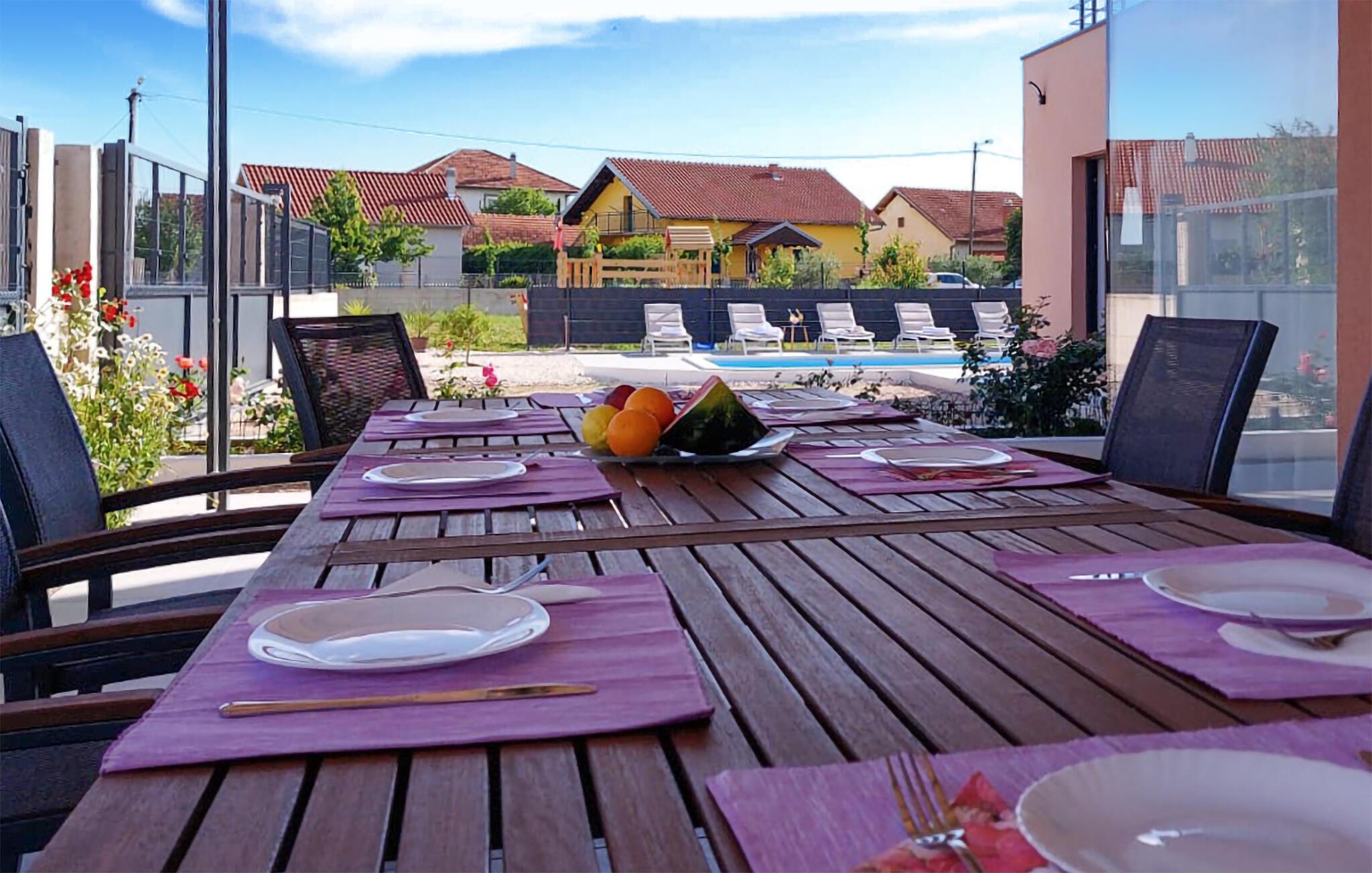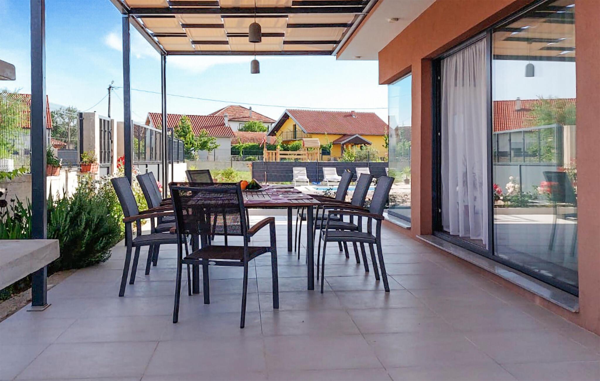 Schönes Ferienhaus mit geräumiger Dachterrasse und privatem Pool.