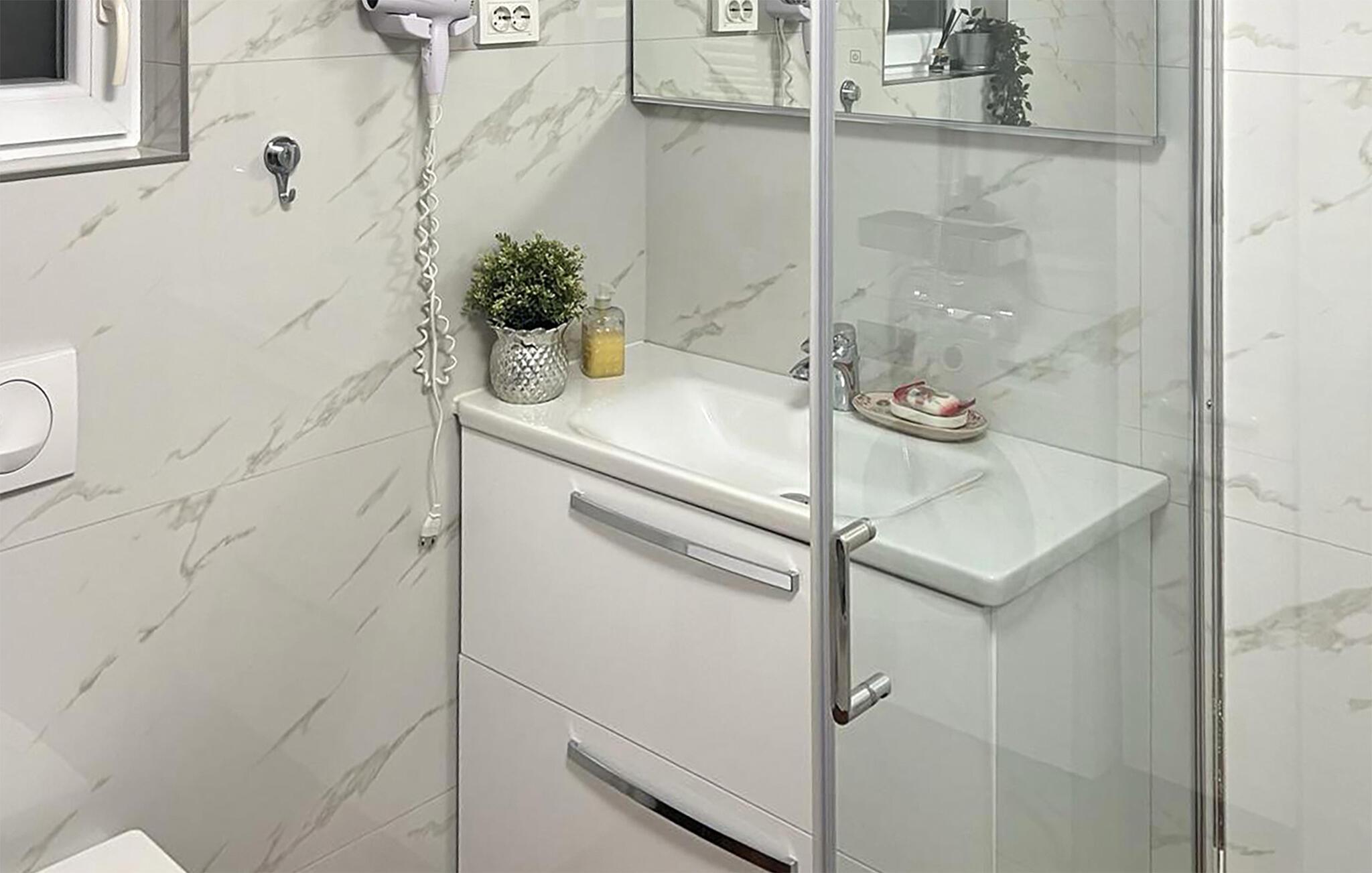 Badezimmer (nr. 1) - WC. Warmes und kaltes Wasser. Dusche