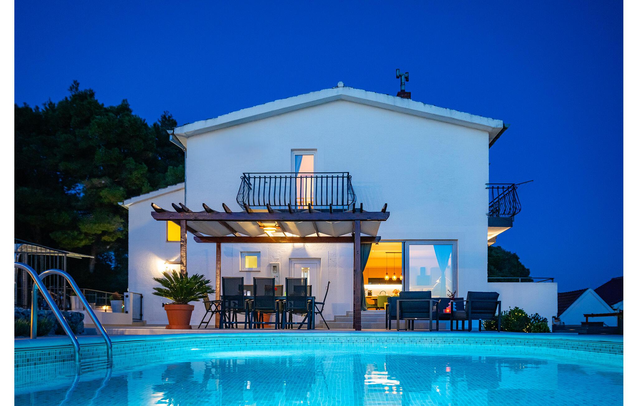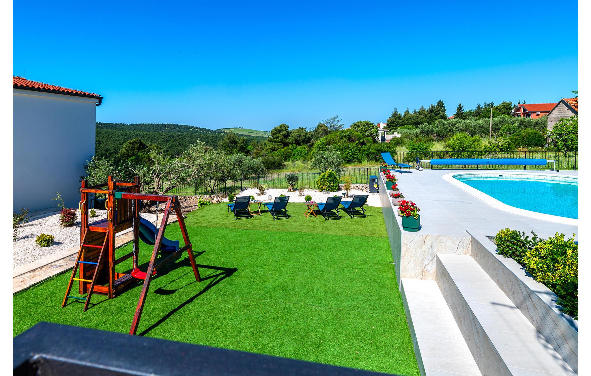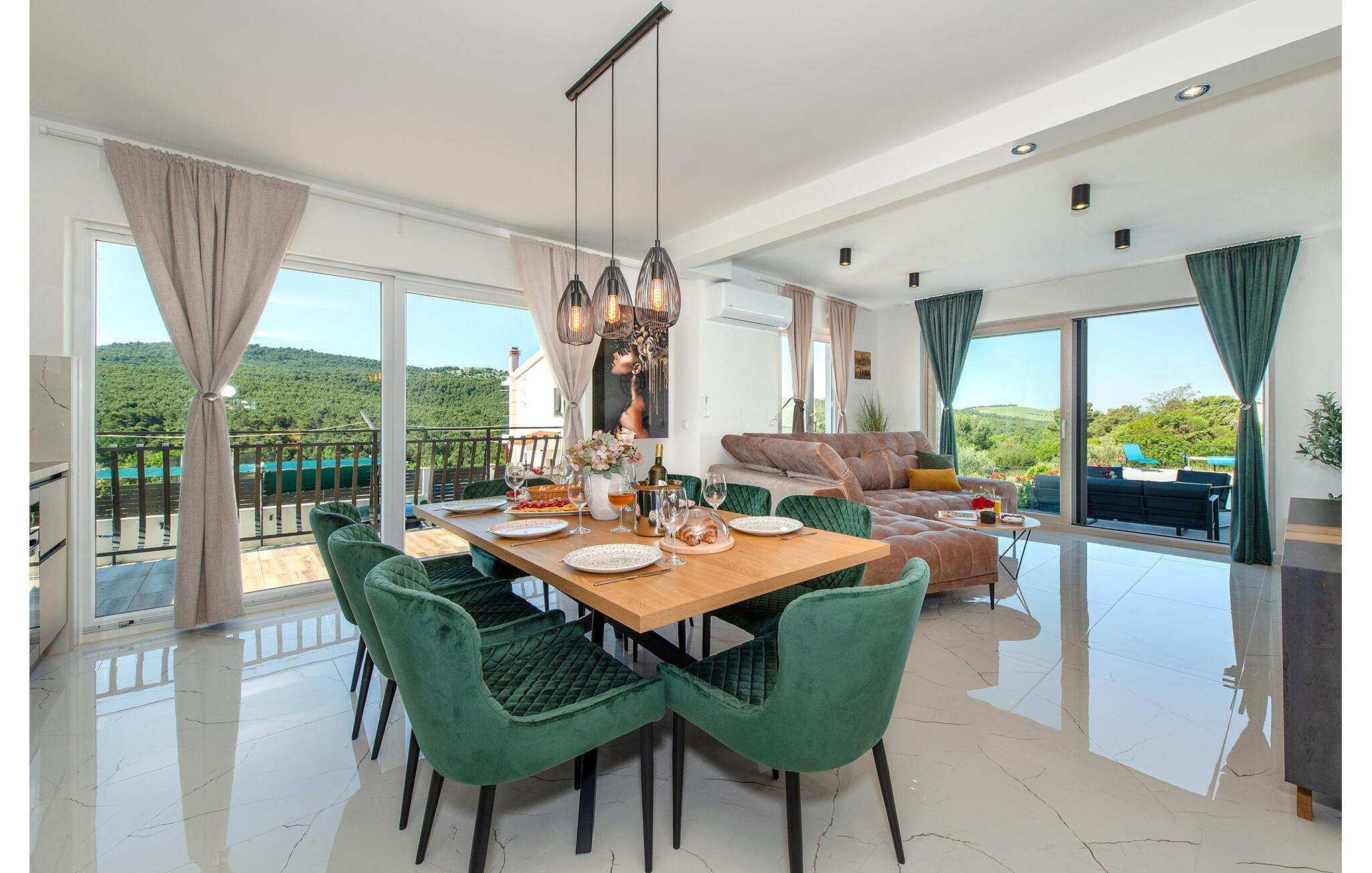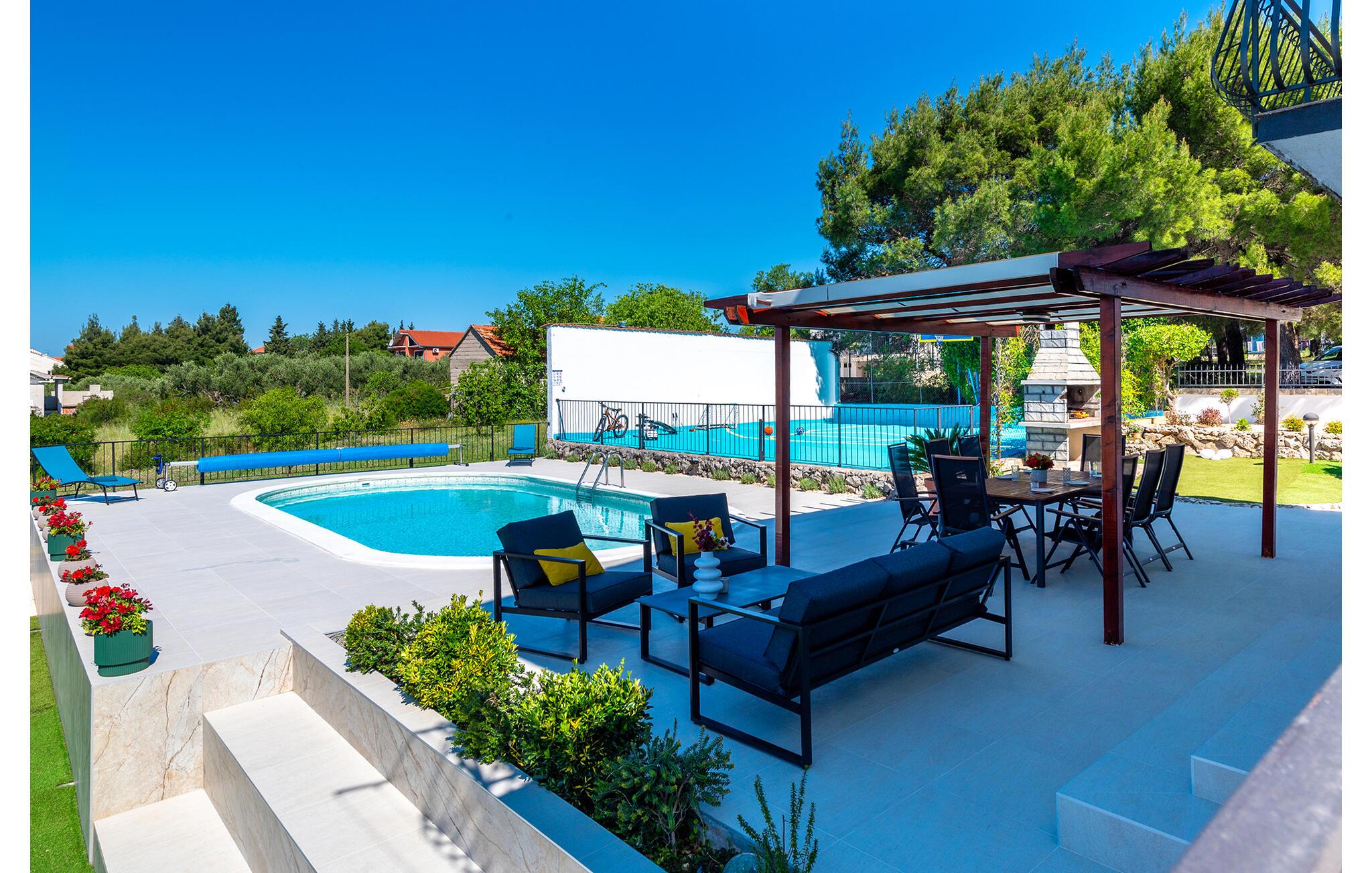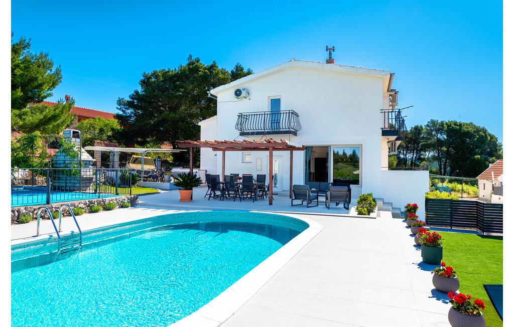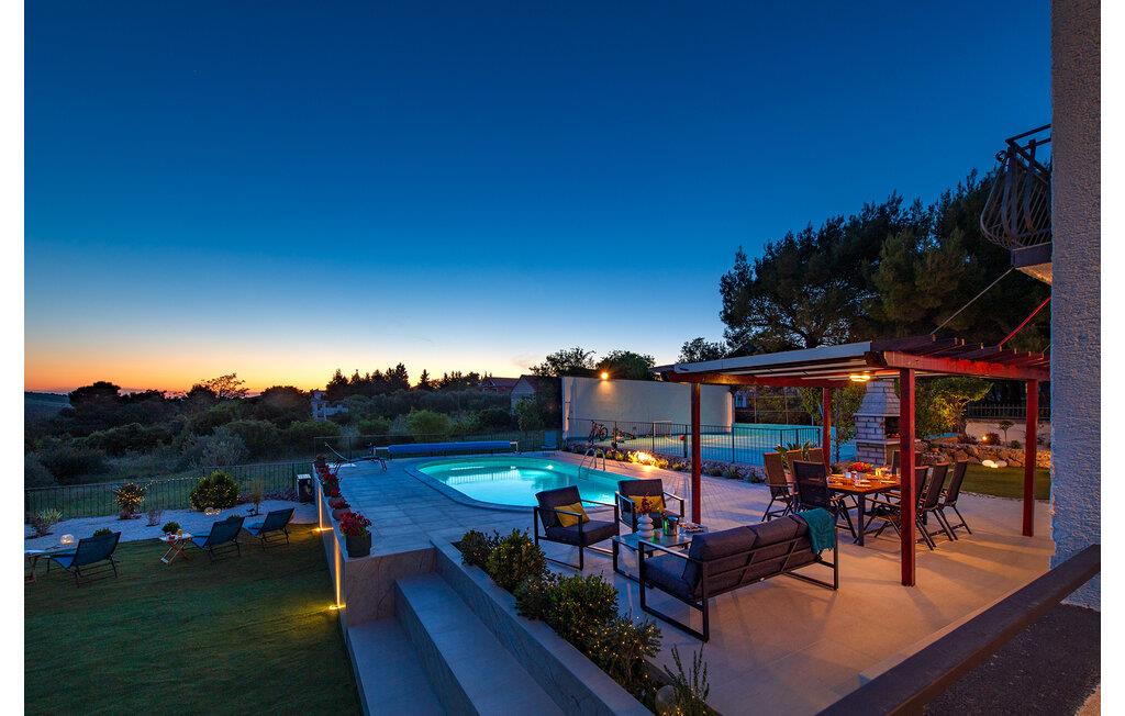 Die wunderschöne Villa Plenca liegt in einem kleinen dalmatinischen Dorf in der Nähe der Stadt Sibenik. Diese charmante Villa inmitten unberührter Natur bietet Ihnen einen bezaubernden Blick auf die Landschaft, den Sie beim Entspannen an privatem Pool vor der Villa genießen können. Im Außenbereich befindet sich auch eine schöne überdachte Terrasse mit einem Esstisch und einem Grill, damit Sie die sommerliche Atmosphäre mit Familie und Freunden in vollen Zügen genießen können. Ihren ersten Morgenkaffee können Sie in der Sitzecke beim Pool genießen.