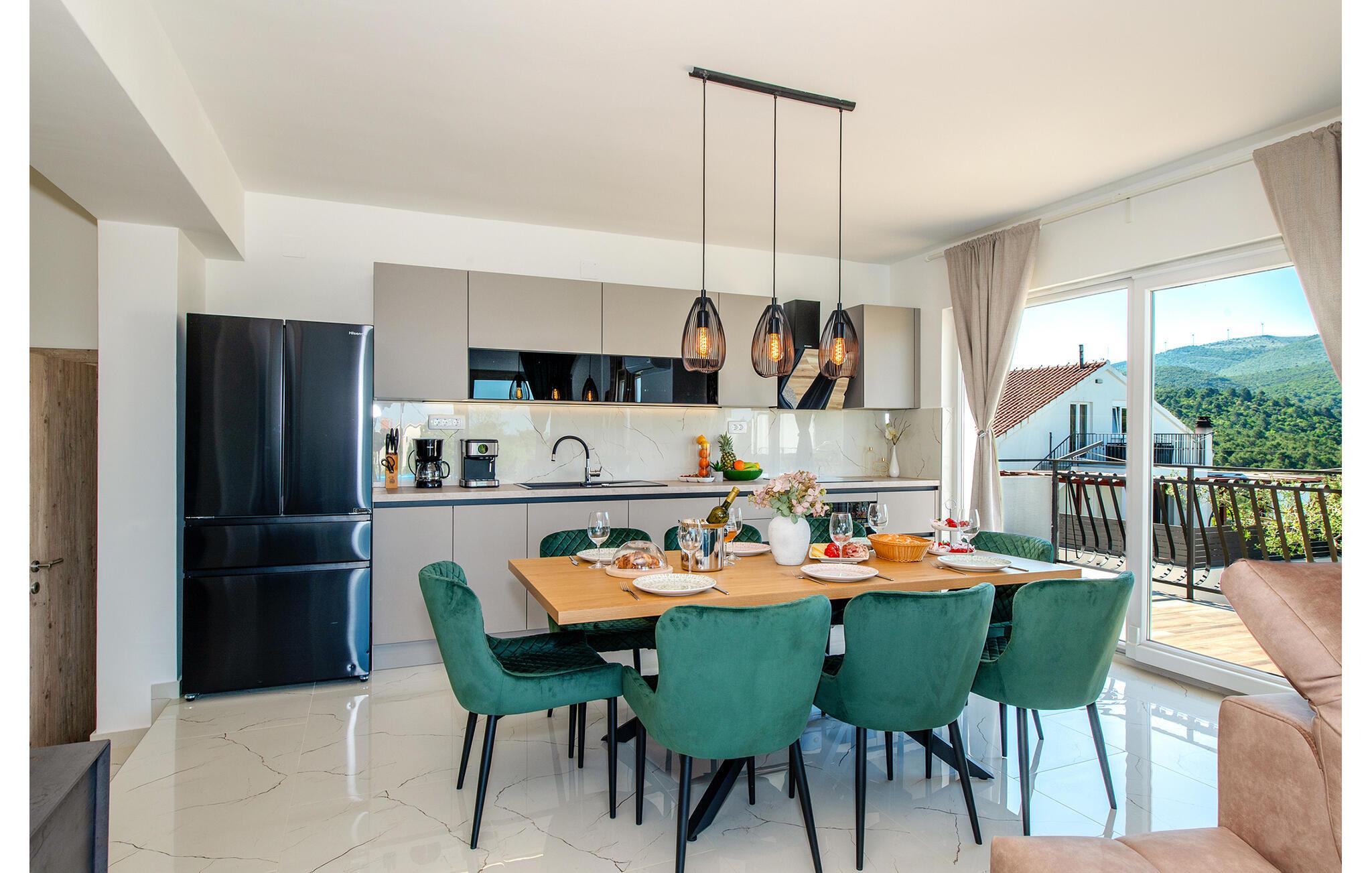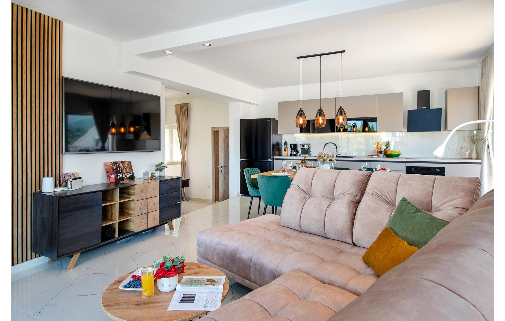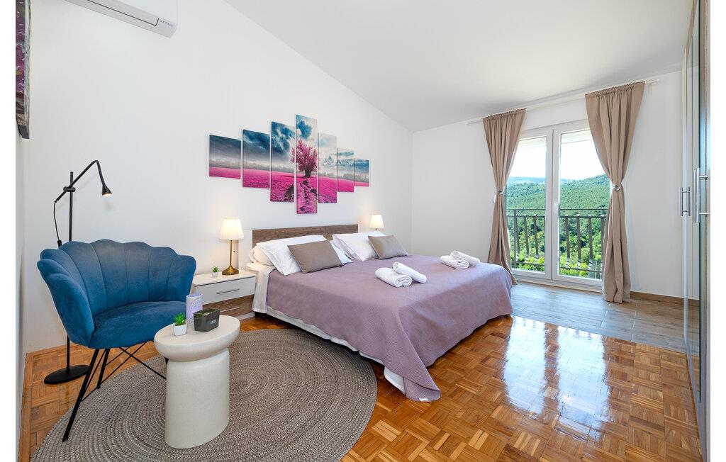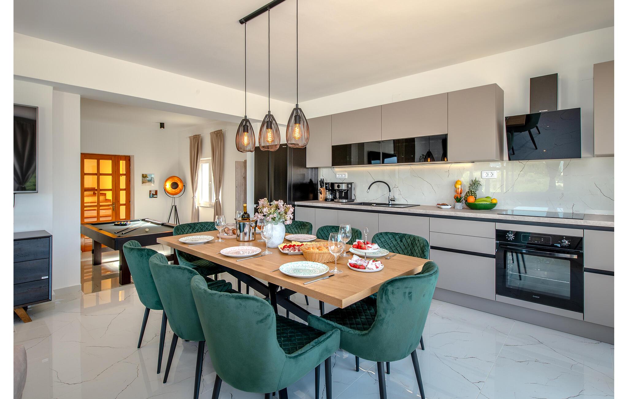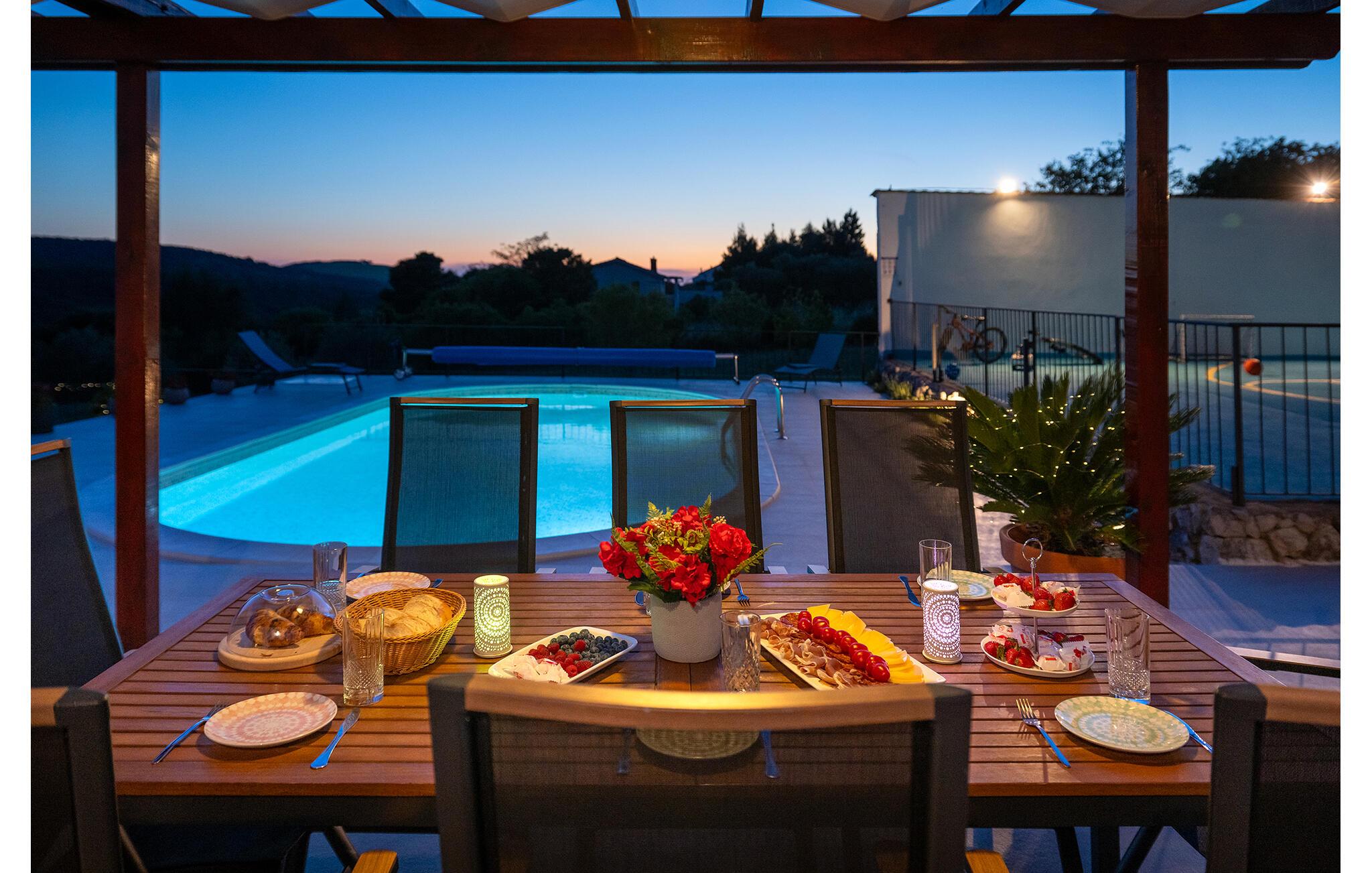 Die wunderschöne Villa Plenca liegt in einem kleinen dalmatinischen Dorf in der Nähe der Stadt Sibenik. Diese charmante Villa inmitten unberührter Natur bietet Ihnen einen bezaubernden Blick auf die Landschaft, den Sie beim Entspannen an privatem Pool vor der Villa genießen können. Im Außenbereich befindet sich auch eine schöne überdachte Terrasse mit einem Esstisch und einem Grill, damit Sie die sommerliche Atmosphäre mit Familie und Freunden in vollen Zügen genießen können. Ihren ersten Morgenkaffee können Sie in der Sitzecke beim Pool genießen.
