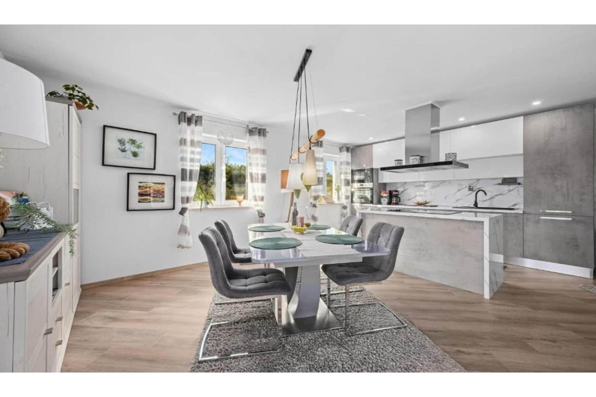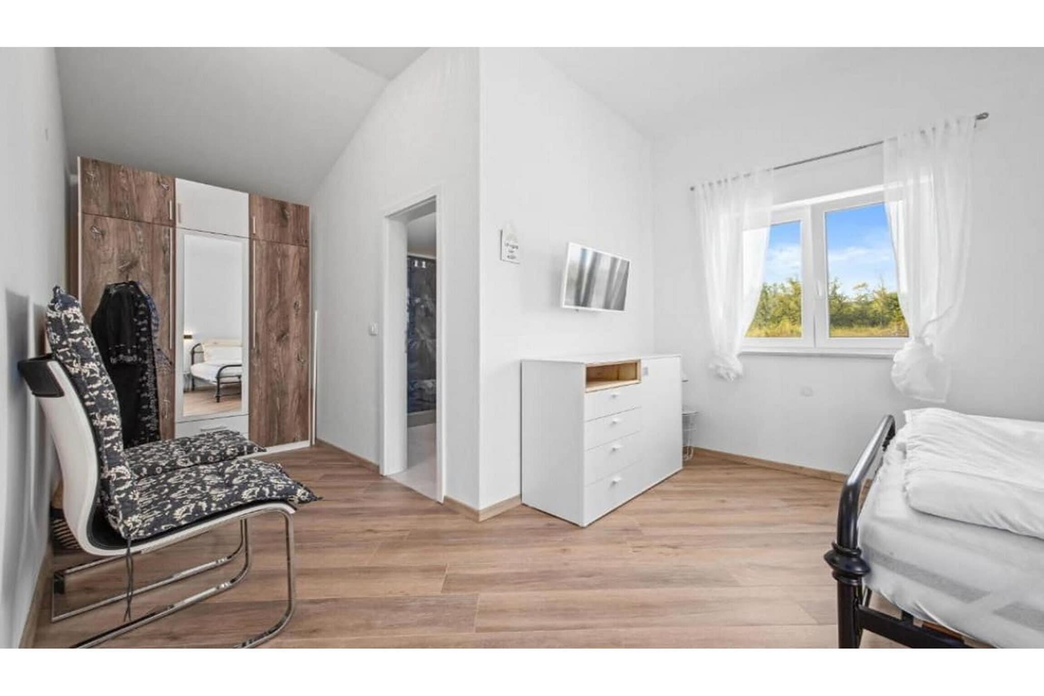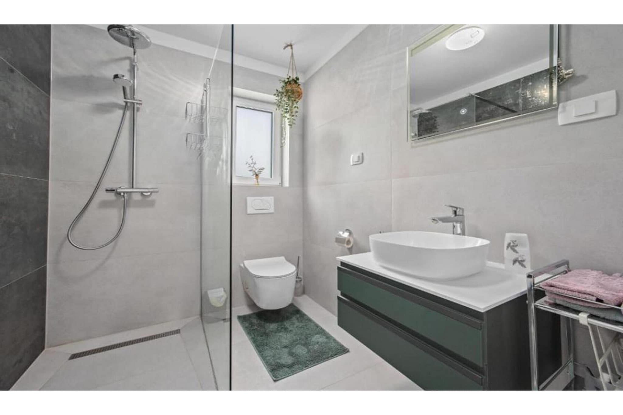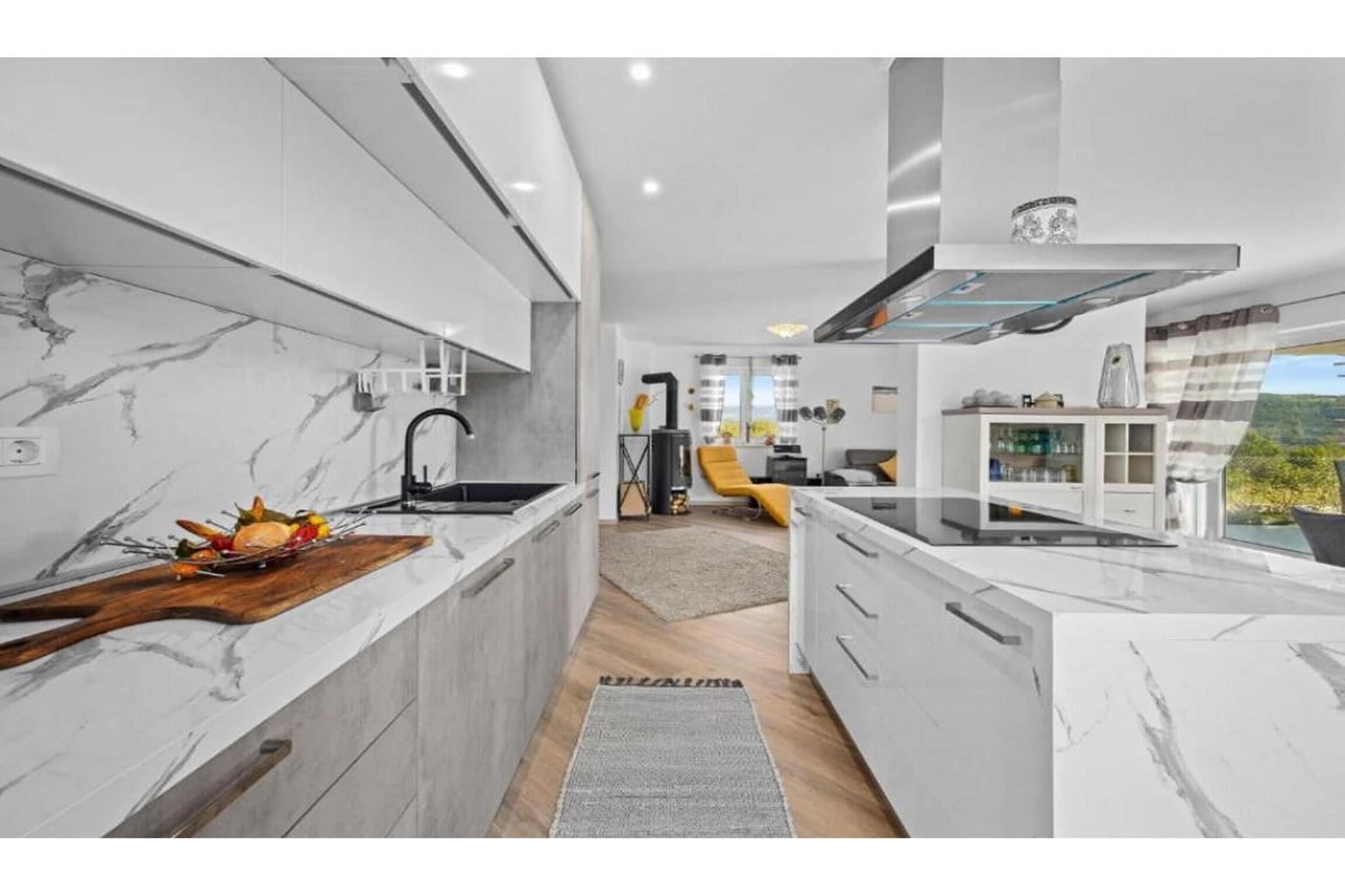 The villa in Sovinjak has 3 bedrooms and capacity for 6 persons. Accommodation of 150 m² nice and is modern, It has garden and swimming pool. The property is located 0 m bus station, 2 km from the restaurant "Konoba Santa Terra, Sovinjak", 7 km city "Buzet", 7 km supermarket "Buzet", 30 km water park "Istralandia", 35 km rock beach "Beach Karpinjan, Novigrad", 36 km nature reserve "Ucka Nature Park", 38 km river "Mirna River", 40 km train station "Pazin Train Station", 45 km water park "Aquacolors", 50 km amusement park / theme park "Dino Park Funtana", 85 km airport "Airport Pula", 86 km airport "Airport Trieste", 98 km airport "Aiprort Rijeka- Island of Krk" and it is located in a a family-friendly zone and in a beautiful rural area. The accommodation is equipped with the following items: garden, outdoor furniture, fenced plot, 15 m² terrace, washing machine, barbecue, iron, internet (Wi-Fi), hair dryer, balcony, heat pump, air-conditioned, swimming pool private, heated swimming pool private, open-air parking in the same building, TV, satellite tv (Languages: English, German). The open plan kitchen, of hotplate of glass ceramics, is equipped with refrigerator, microwave, oven, freezer, dishwasher, dishes/cutlery, kitchen utensils, coffee machine, toaster and kettle.