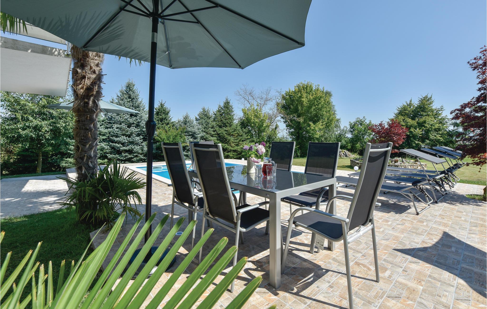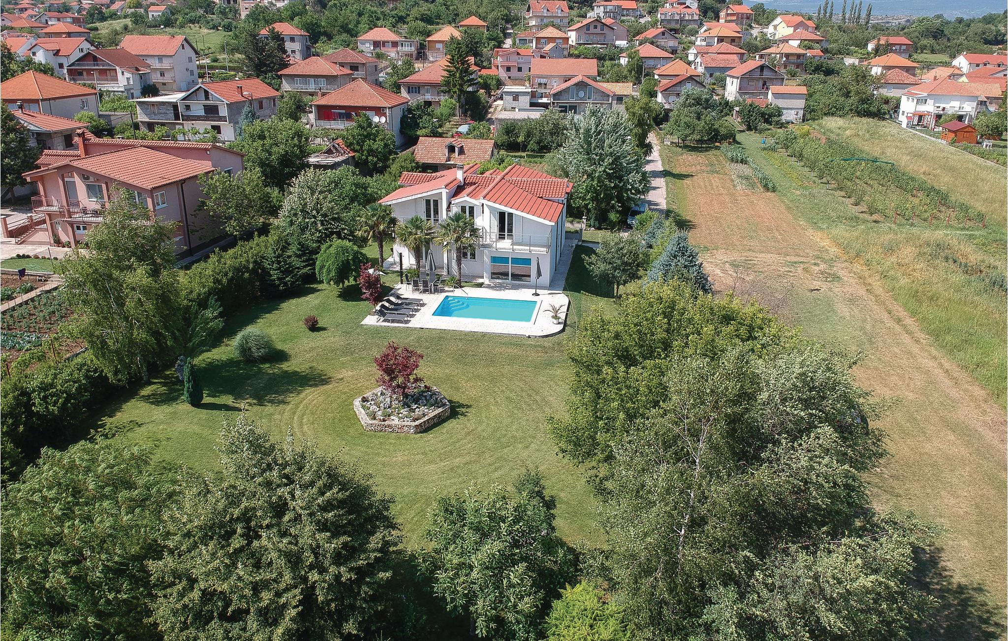 Dieses Ferienhaus mit Pool besteht aus zwei Schlafzimmern, zwei Badezimmern, einem Wohnzimmer mit Essbereich und Küche im Erdgeschoss, wobei die 1. Etage nicht bewohnt ist. Der schön angelegte Garten, der in Kombination mit dem Pool die reinste Idylle ist, macht das Haus zu einem besonderen Ort. Die Felder und Wälder sind ideal für Radtouren und Wanderungen. In der Nähe haben Sie auch die Möglichkeit, zu reiten oder Tennis zu spielen. Besuchen Sie das Stadtzentrum von Sinj und das Alka Museum, um Einblicke in die einstigen mittelalterlichen Ritterspiele zu bekommen. Die Stadt Split, mit reichem kulturellen sowie gastronomischen Angebot und schönen Stränden ist etwa 20 Fahrminuten mit dem Auto entfernt.