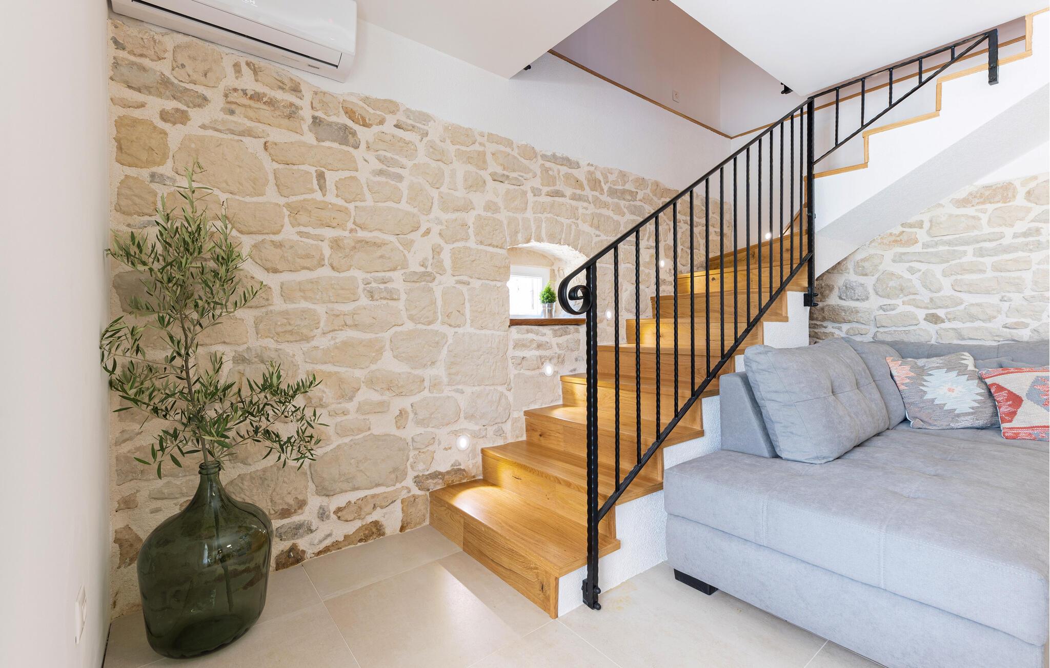 Genießen Sie Ihren Urlaub in diesem wunderschönen Ferienhaus in Sinj, das durch seine ruhige Lage und atemberaubende Aussicht auf die umliegende Landschaft besticht. Das Haus bietet eine stilvolle und komfortable Einrichtung, die eine einladende Atmosphäre schafft. Die Innenräume kombinieren traditionelles Mauerwerk mit moderner Gestaltung und ist mit allem ausgestattet, was Sie für einen erholsamen Aufenthalt benötigen. Entdecken Sie die zwei Stockwerk, fühlen sich direkt wie zuhause und entspannen auf dem Sofa bei einem lauschigen Kaminfeuer