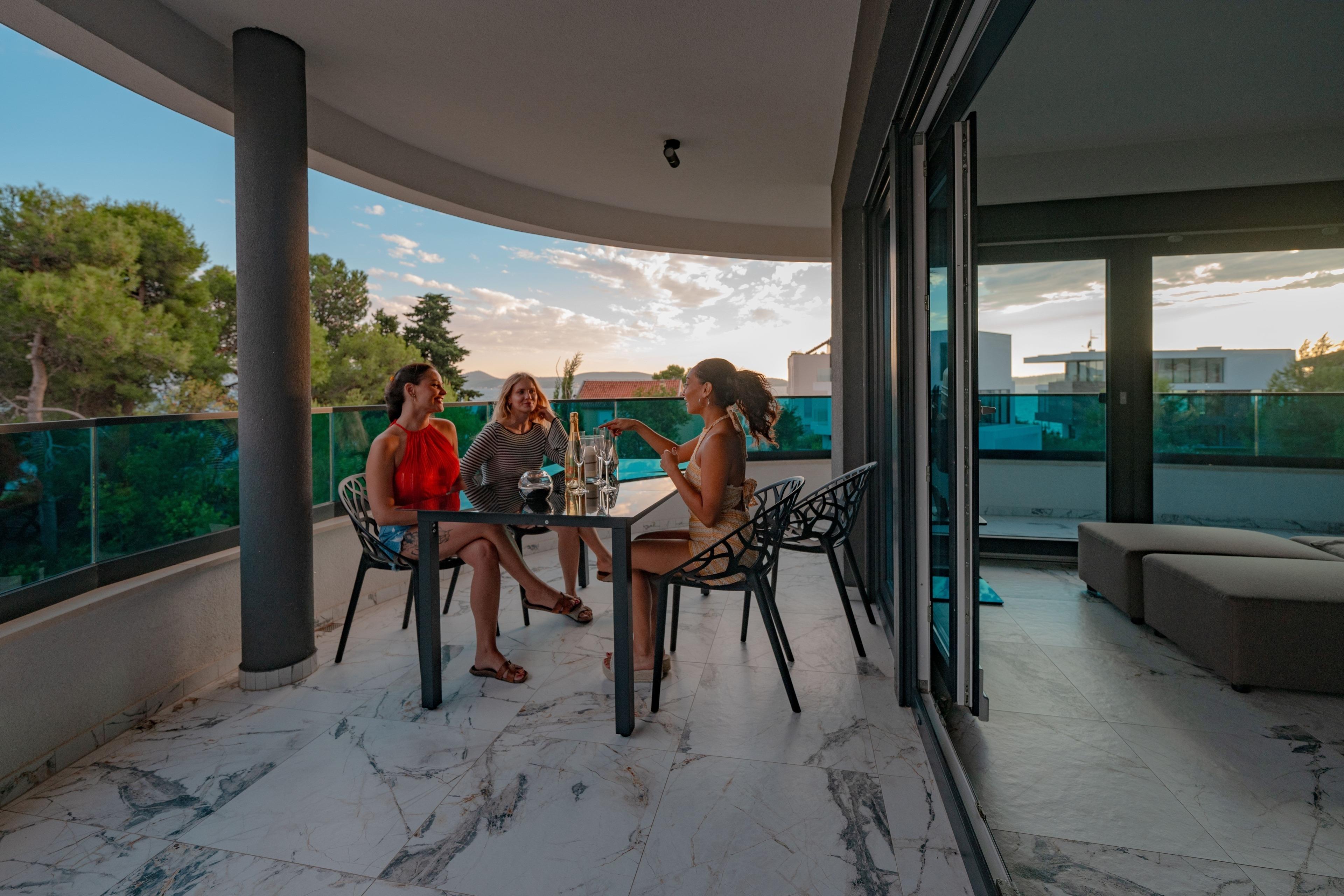 Terrasse mit outdoor Möbel und uneingeschränktem Meerblick