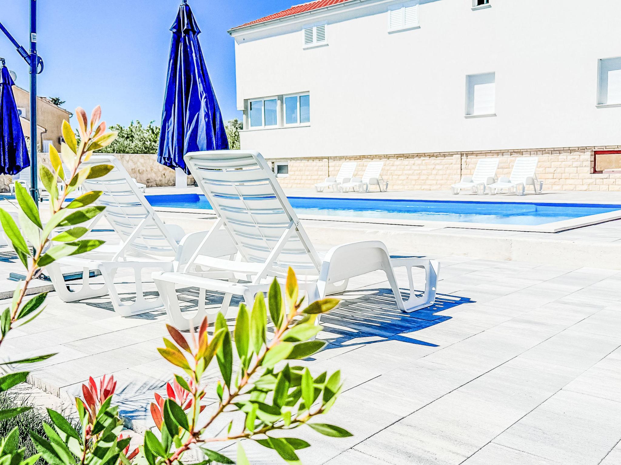 Apartment house "Zubcic" in 2024. In the hamlet Sikovo 10 km from the centre of Biograd na Moru, 5 km from the centre of Sv. Filip i Jakov, in a quiet, sunny position, 5 km from the sea, 5 km from the beach. For shared use: property 600 m2 with trees, swimming pool (9 x 4 m, depth 150 cm, seasonal availability: 01.May. - 01.Oct.). Outdoor shower. In the house: internet access. Parking at the house on the premises. Shop 500 m, supermarket 5 km, restaurant 5 km, bus stop 5 km, pebble beach 5 km.
