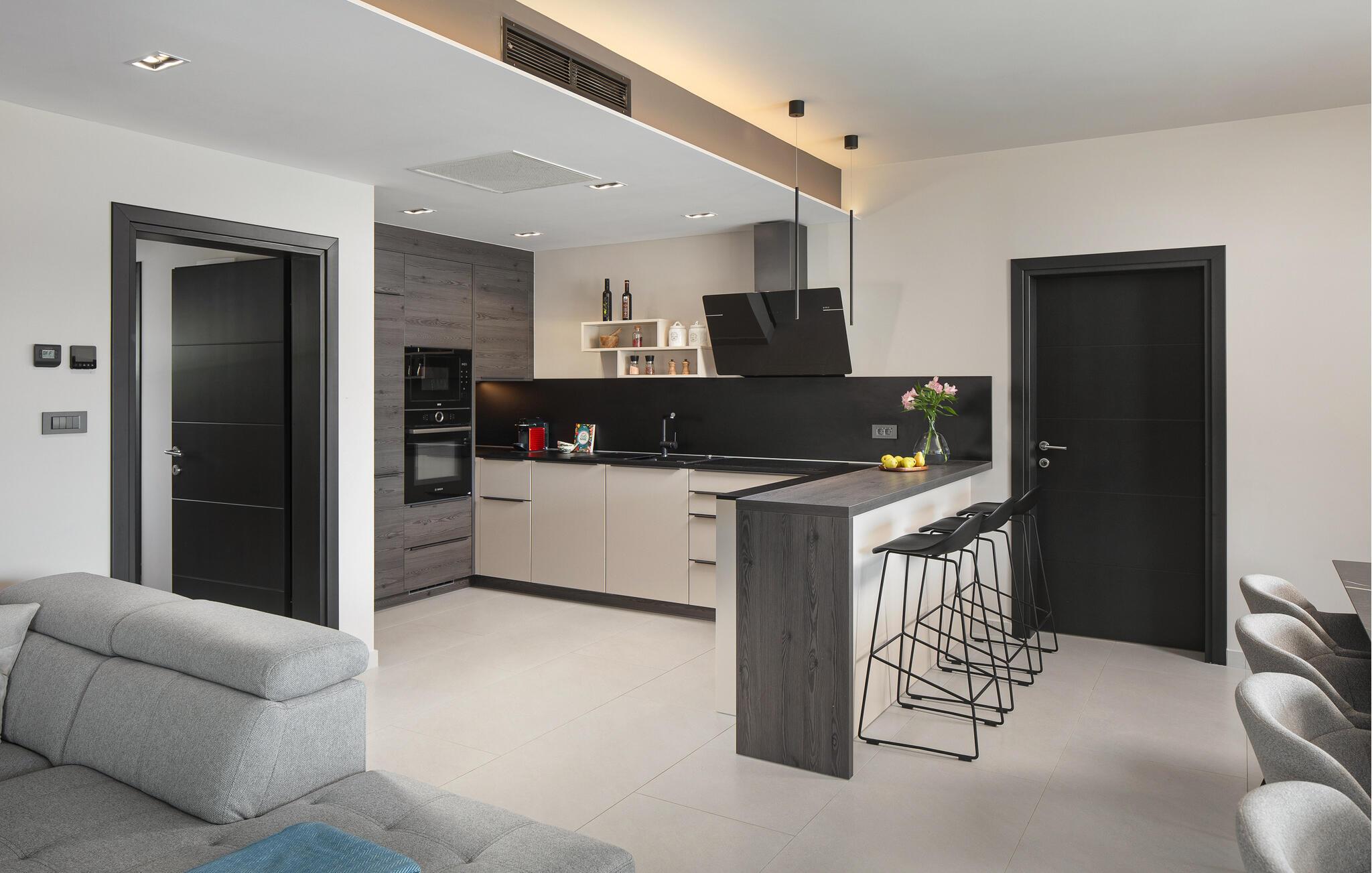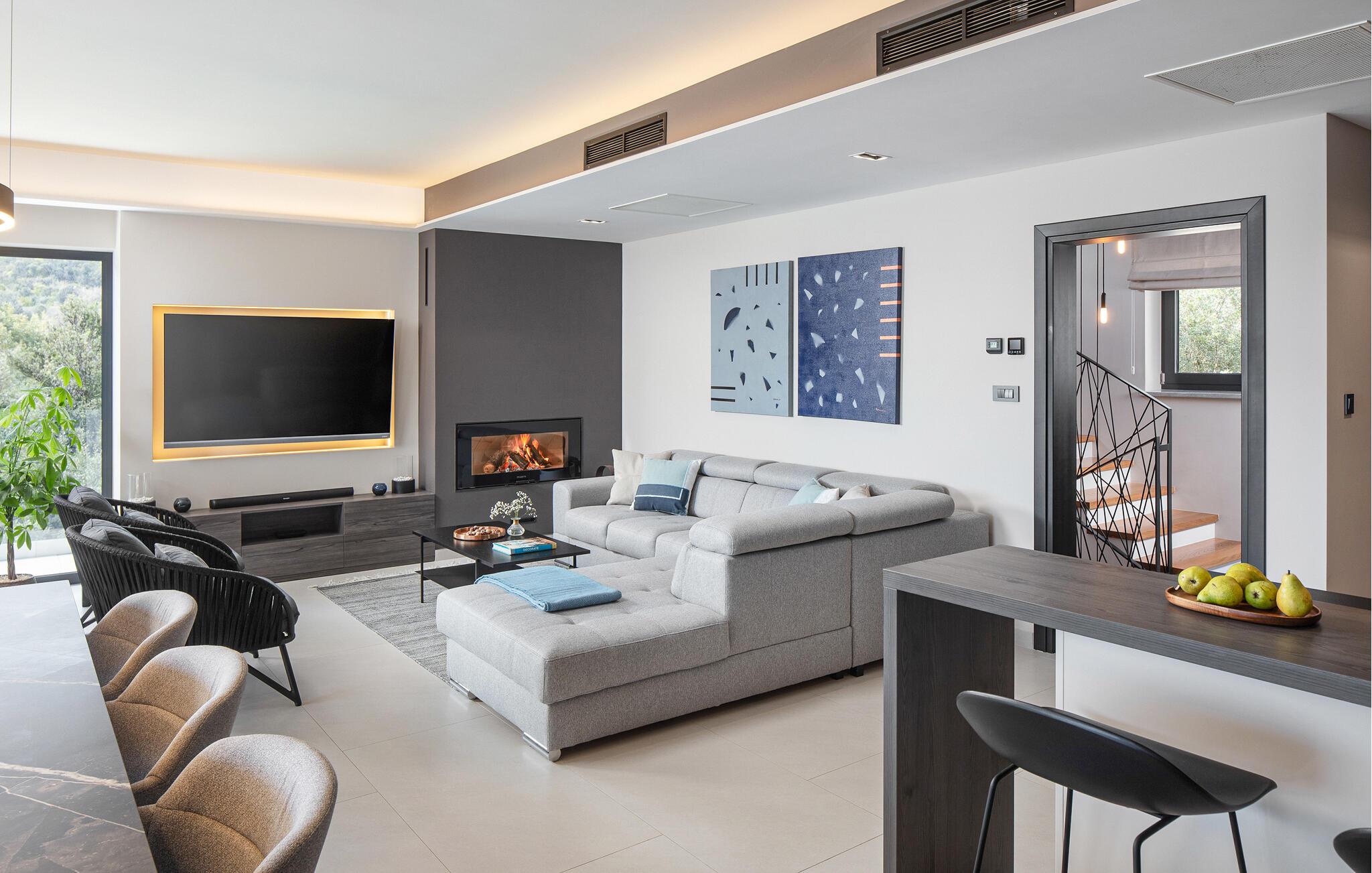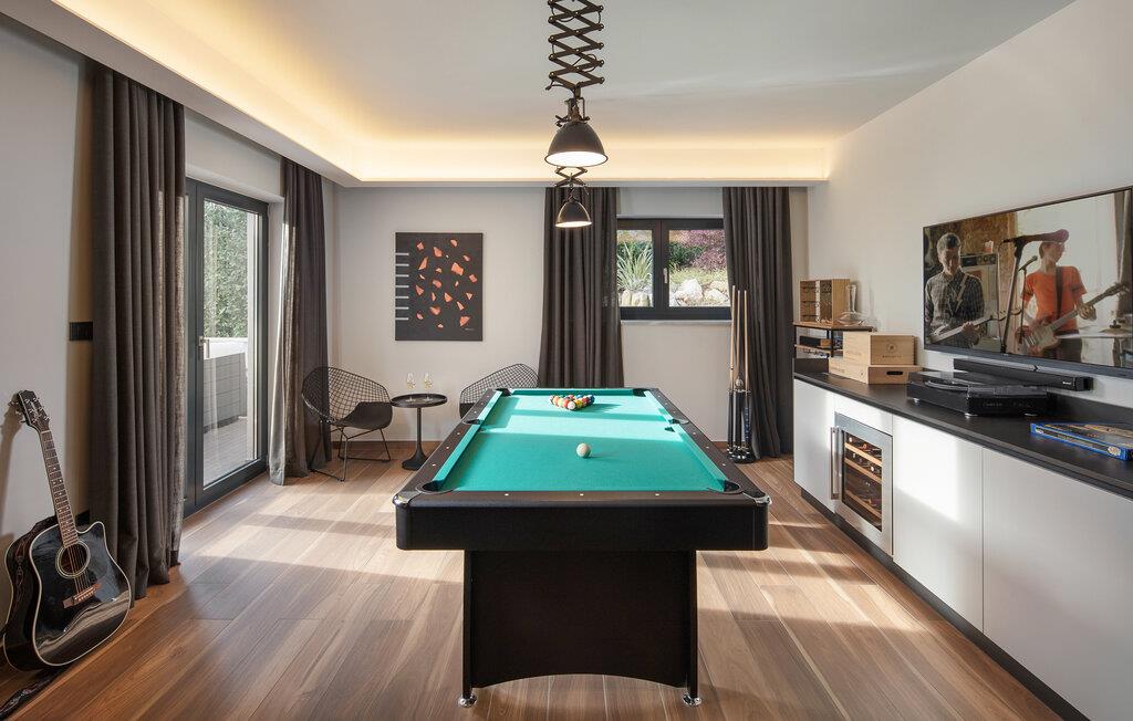 Kommen Sie in dieser modernen Villa in wunderschöner Lage direkt am Meer an. Das Haus verfügt über alles, was Sie für einen Urlaub benötigen, wie einen Whirlpool, eine Sauna, einen Fitnessraum, einen Swimmingpool und einen Gesellschaftsraum. Groß und Klein werden sich hier wohlfühlen und können sich umgeben von den vielen Annehmlichkeiten gleich zuhause fühlen. Das große Platzangebot, die hochwertige Einrichtung und Ausstattung und die elegante Dekoration schaffen ein großartiges Ambiente, in dem Sie spielend, relaxend und in aktiver Form Ihre Urlaubstage verbringen können. Der Fitnessraum ist mit diversen Fitnessgeräten ausgestattet und die Sauna mit Sternenhimmel sorgt für eine entspannte Atmosphäre.