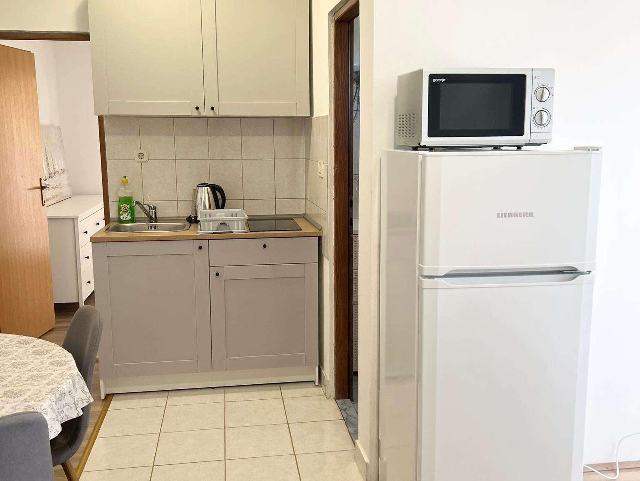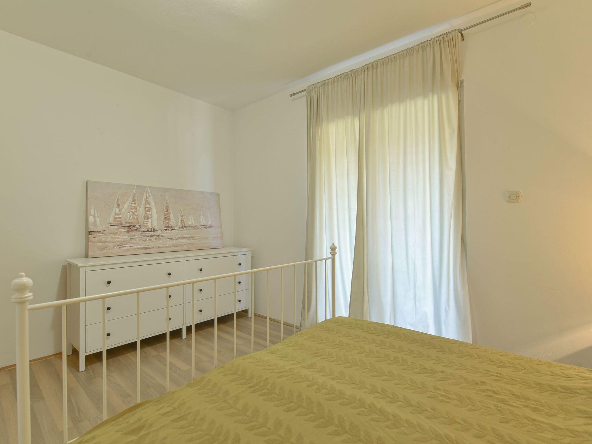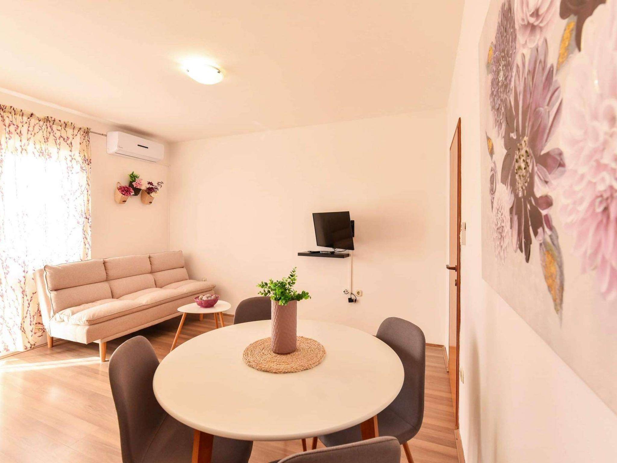 Ferienwohnung bietet Platz für 4 Gäste. Die Betten sind in Schlafzimmern, die es 1 gibt, und in Wohnzimmer, innerhalb einer Gesamtfläche von 30m2, angeordnet. Die Gäste haben eine eigene Terrasse zur Verfügung, auf der sie in warmen Sommernächten genießen können. Das Apartment bietet Meerblick. Es ist erlaubt, Speisen auf dem Gemeinschafts-Grill vorzubereiten. IM PREIS INBEGRIFFEN: Kurtaxe, Endreinigung, Klimatisierung, Parkplatz, Internet, Kinderbett, Bügeleisen, Bügelbrett. VERBINDLICHE ZUSÄTZLICHE KOSTEN: Aufzahlung für Kurzaufenthalte (prozentualer Zuschlag pro Nächtigungsanzahl: 30% - 1, 20% - 2, 10% - 3). Die Verfügbarkeit zusätzlicher Dienstleistungen in Ihrem reservierten Termin und die Preise derselben (falls nicht aufgeführt) müssen im Voraus überprüft werden. Zusätzliche Dienstleistungen die in der Zahlungsaufforderung nicht aufgeführt sind werden direkt beim Vermieter bezahlt, angenommen der Gast nutzt auch diese. Ermäßigung auf den Grundpreis: Gratistag 14=13 (bei einem Aufenthalt von 14 Tagen oder mehr erhalten Sie einen Gratistag für den Aufenthalt bis 31.12.26).