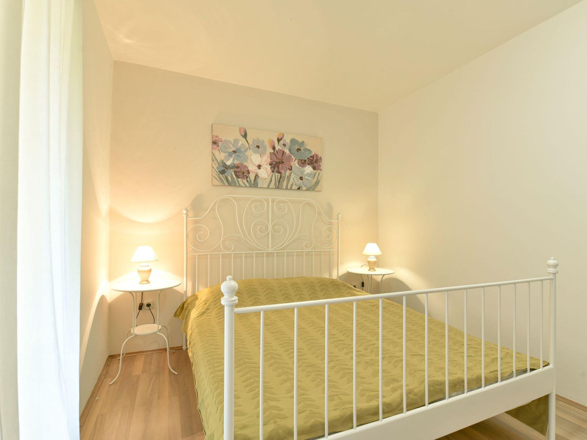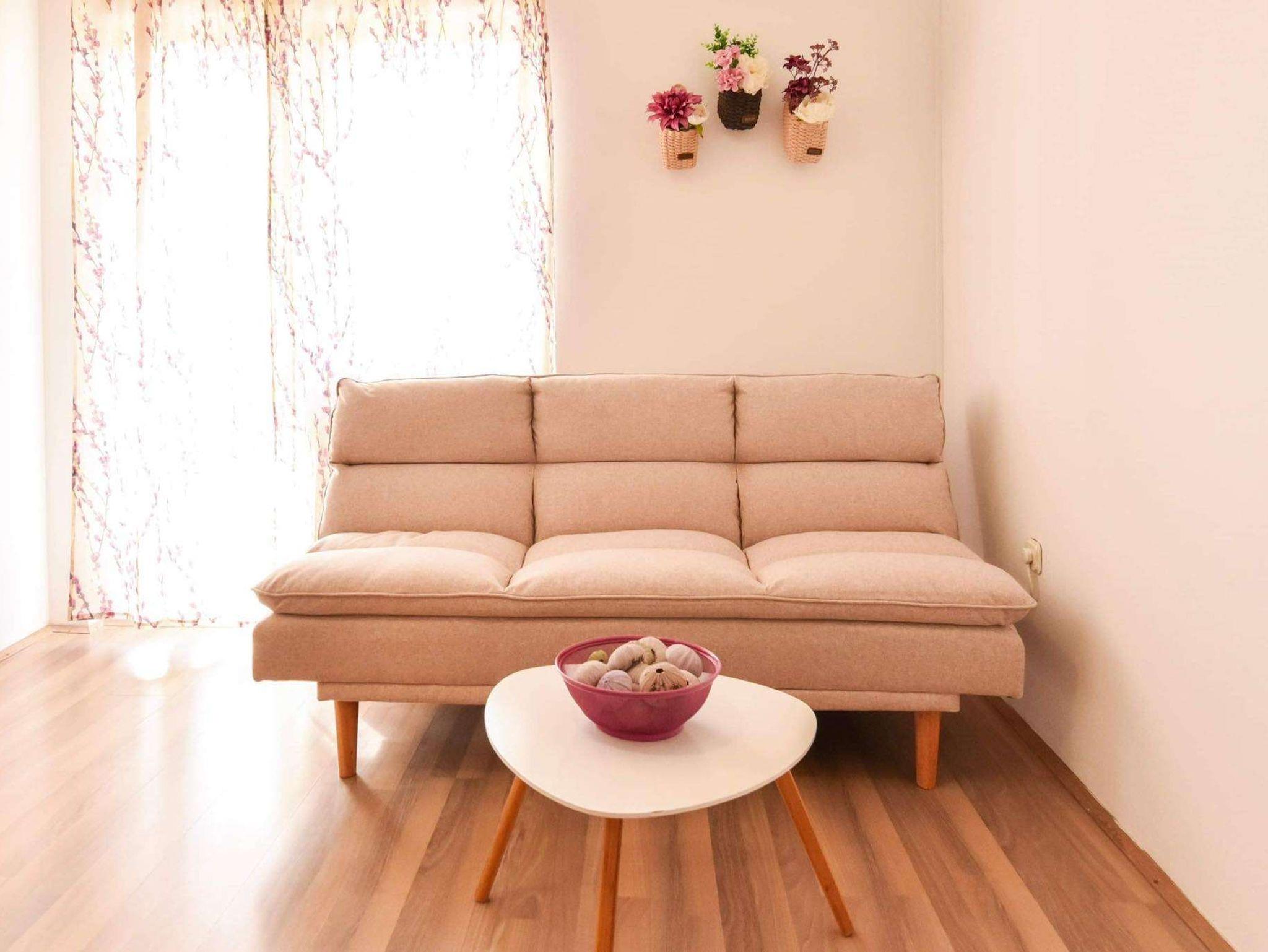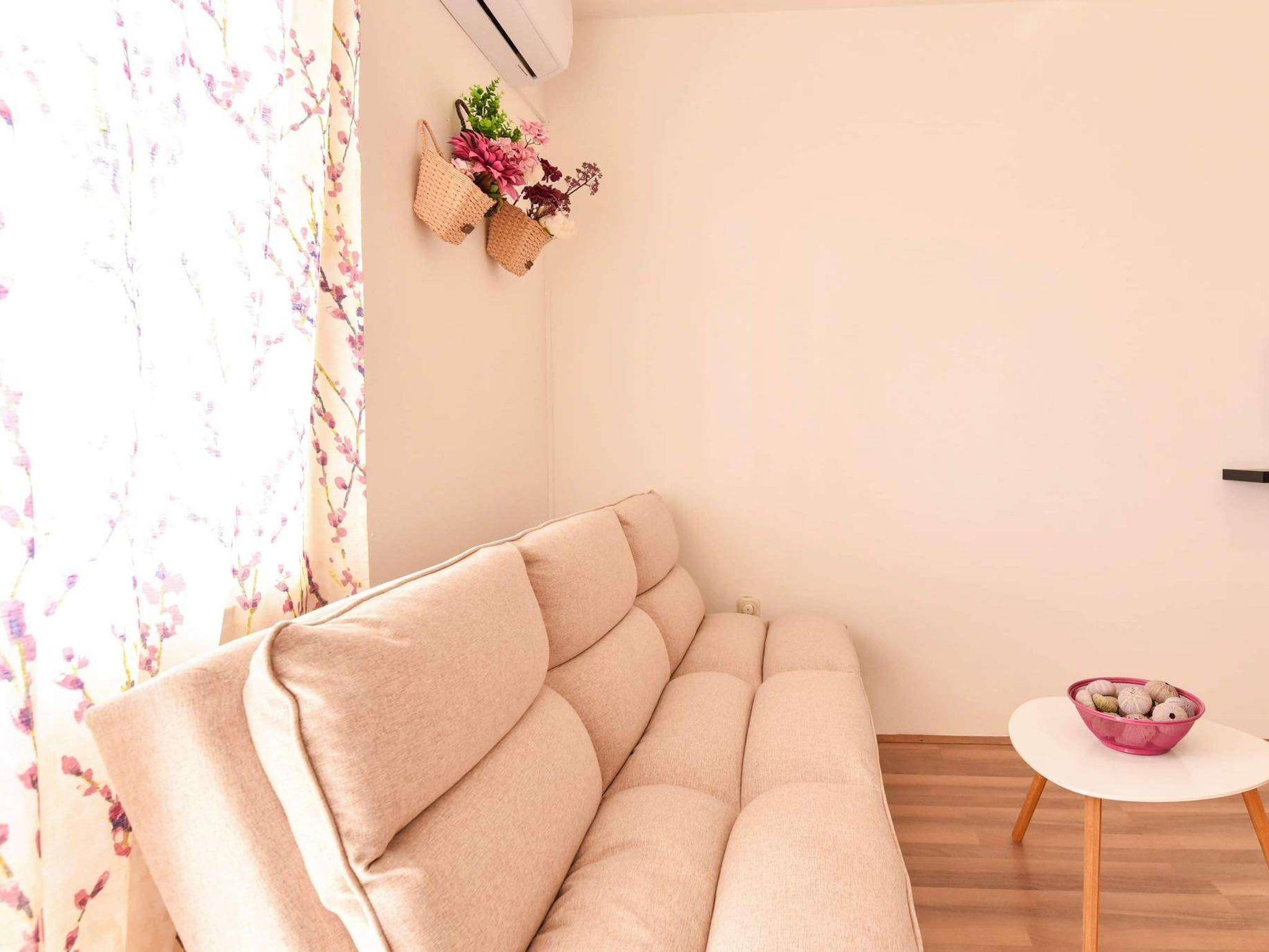 Ferienwohnung bietet Platz für 4 Gäste. Die Betten sind in Schlafzimmern, die es 1 gibt, und in Wohnzimmer, innerhalb einer Gesamtfläche von 30m2, angeordnet. Die Gäste haben eine eigene Terrasse zur Verfügung, auf der sie in warmen Sommernächten genießen können. Das Apartment bietet Meerblick. Es ist erlaubt, Speisen auf dem Gemeinschafts-Grill vorzubereiten. IM PREIS INBEGRIFFEN: Kurtaxe, Endreinigung, Klimatisierung, Parkplatz, Internet, Kinderbett, Bügeleisen, Bügelbrett. VERBINDLICHE ZUSÄTZLICHE KOSTEN: Aufzahlung für Kurzaufenthalte (prozentualer Zuschlag pro Nächtigungsanzahl: 30% - 1, 20% - 2, 10% - 3). Die Verfügbarkeit zusätzlicher Dienstleistungen in Ihrem reservierten Termin und die Preise derselben (falls nicht aufgeführt) müssen im Voraus überprüft werden. Zusätzliche Dienstleistungen die in der Zahlungsaufforderung nicht aufgeführt sind werden direkt beim Vermieter bezahlt, angenommen der Gast nutzt auch diese. Ermäßigung auf den Grundpreis: Gratistag 14=13 (bei einem Aufenthalt von 14 Tagen oder mehr erhalten Sie einen Gratistag für den Aufenthalt bis 31.12.26).