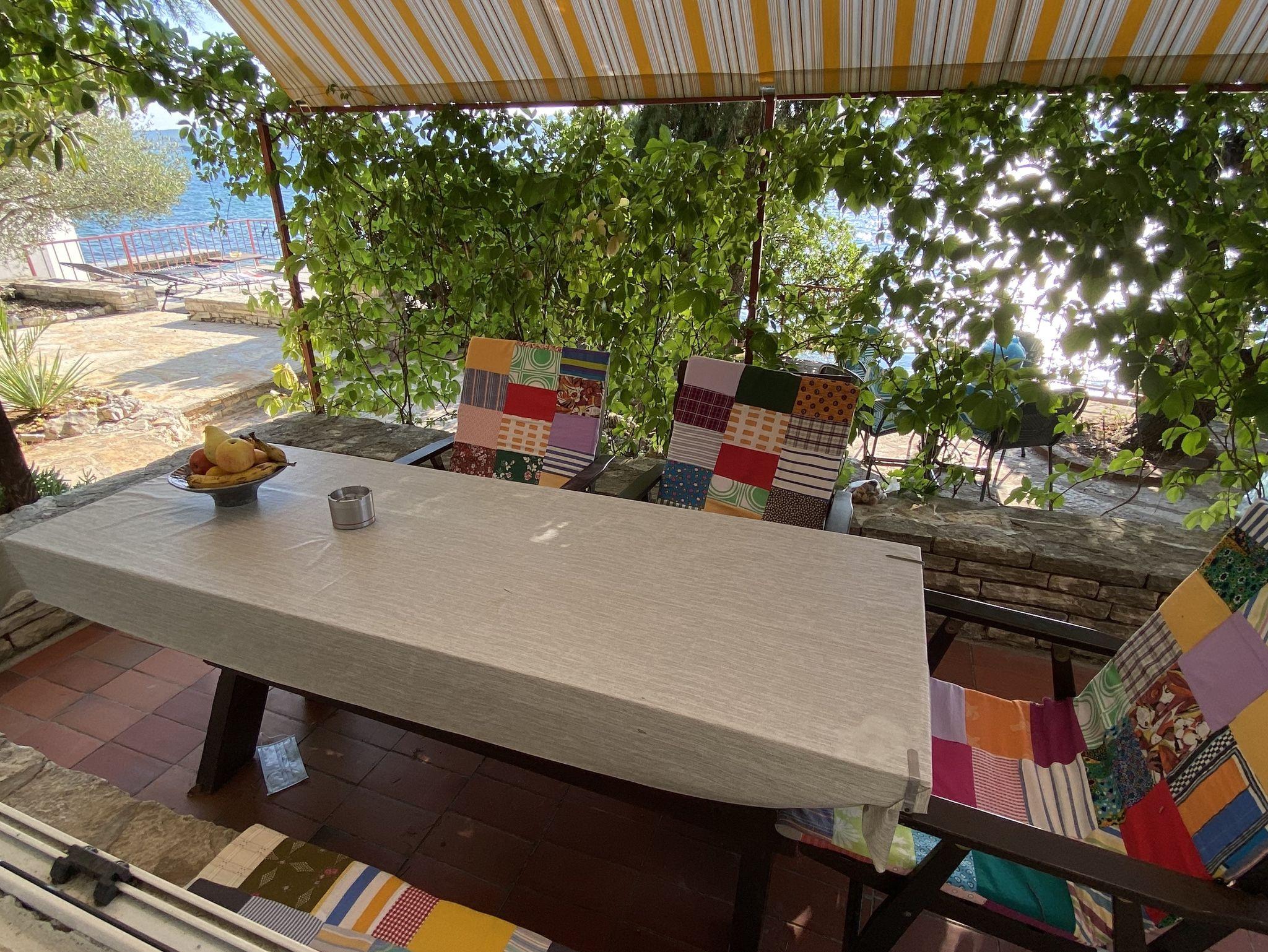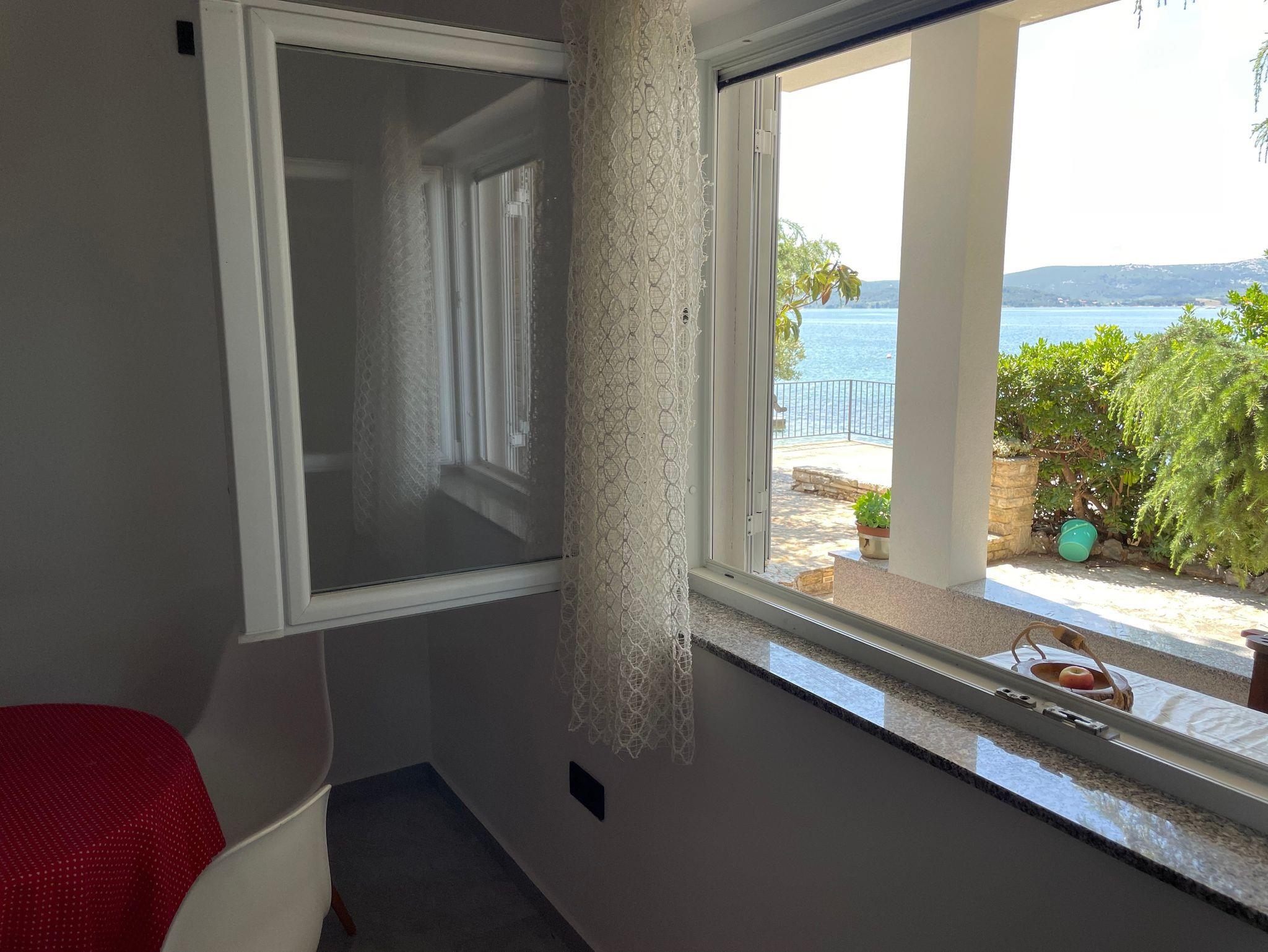 Ferienwohnung bietet Platz für 4 Gäste. Die Betten sind in Schlafzimmern, die es 1 gibt, und in Wohnzimmer, innerhalb einer Gesamtfläche von 36m2, angeordnet. Die Gäste haben eine eigene Terrasse zur Verfügung, auf der sie in warmen Sommernächten genießen können. Das Apartment bietet Meerblick. Es ist erlaubt, Speisen auf dem Gemeinschafts-Grill vorzubereiten. IM PREIS INBEGRIFFEN: Kurtaxe, Endreinigung, Klimatisierung, Parkplatz, Internet, Bootsanlegeplatz, Bügeleisen, Föhn, Sonnenschirm, Liegestühle. VERBINDLICHE ZUSÄTZLICHE KOSTEN: Aufzahlung für Kurzaufenthalte (prozentualer Zuschlag pro Nächtigungsanzahl: 30% - 1, 20% - 2, 10% - 3). Die Verfügbarkeit zusätzlicher Dienstleistungen in Ihrem reservierten Termin und die Preise derselben (falls nicht aufgeführt) müssen im Voraus überprüft werden. Zusätzliche Dienstleistungen die in der Zahlungsaufforderung nicht aufgeführt sind werden direkt beim Vermieter bezahlt, angenommen der Gast nutzt auch diese.