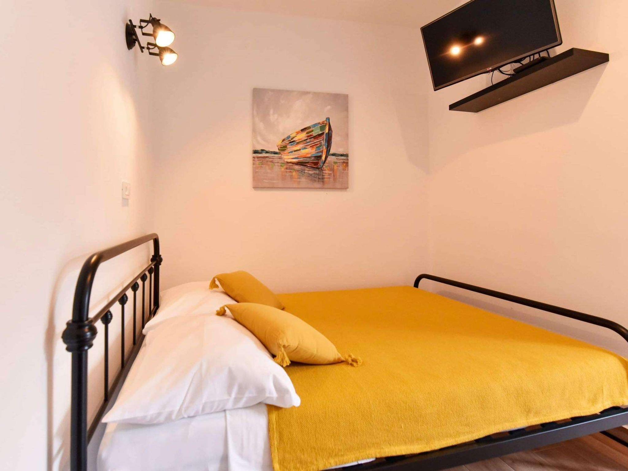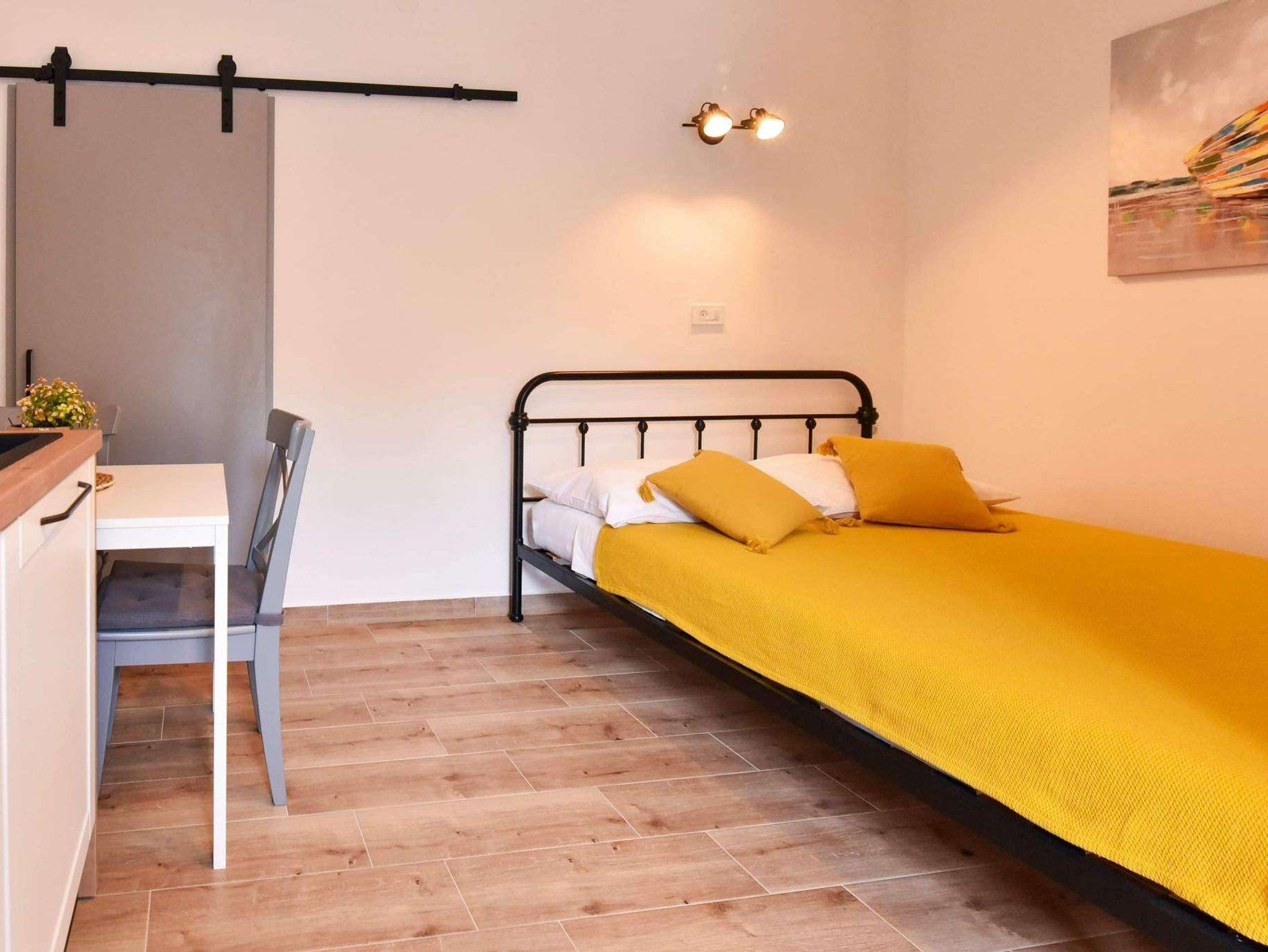 Studio bietet Platz für 2 Gäste. Die Betten sind in Schlafzimmern, die es 1 gibt, innerhalb einer Gesamtfläche von 9m2, angeordnet. Die Gäste haben einen eigenen Balkon zur Verfügung, auf der sie in warmen Sommernächten genießen können. Es ist erlaubt, Speisen auf dem Gemeinschafts-Grill vorzubereiten. IM PREIS INBEGRIFFEN: Kurtaxe, Endreinigung, Klimatisierung, Parkplatz, Internet, Kinderbett, Bügeleisen, Bügelbrett. VERBINDLICHE ZUSÄTZLICHE KOSTEN: Aufzahlung für Kurzaufenthalte (prozentualer Zuschlag pro Nächtigungsanzahl: 30% - 1, 20% - 2, 10% - 3). Die Verfügbarkeit zusätzlicher Dienstleistungen in Ihrem reservierten Termin und die Preise derselben (falls nicht aufgeführt) müssen im Voraus überprüft werden. Zusätzliche Dienstleistungen die in der Zahlungsaufforderung nicht aufgeführt sind werden direkt beim Vermieter bezahlt, angenommen der Gast nutzt auch diese. Ermäßigung auf den Grundpreis: Gratistag 14=13 (bei einem Aufenthalt von 14 Tagen oder mehr erhalten Sie einen Gratistag für den Aufenthalt bis 31.12.26).