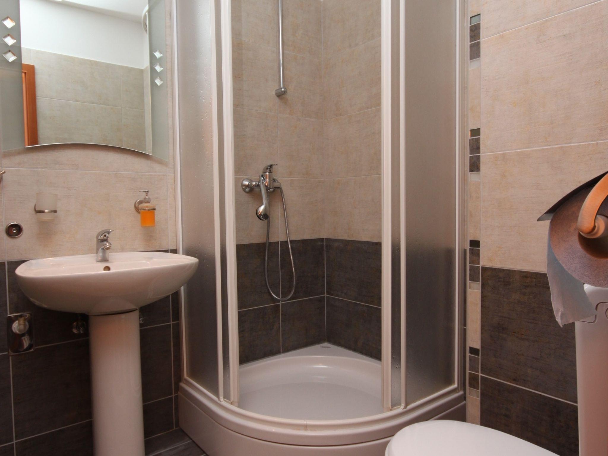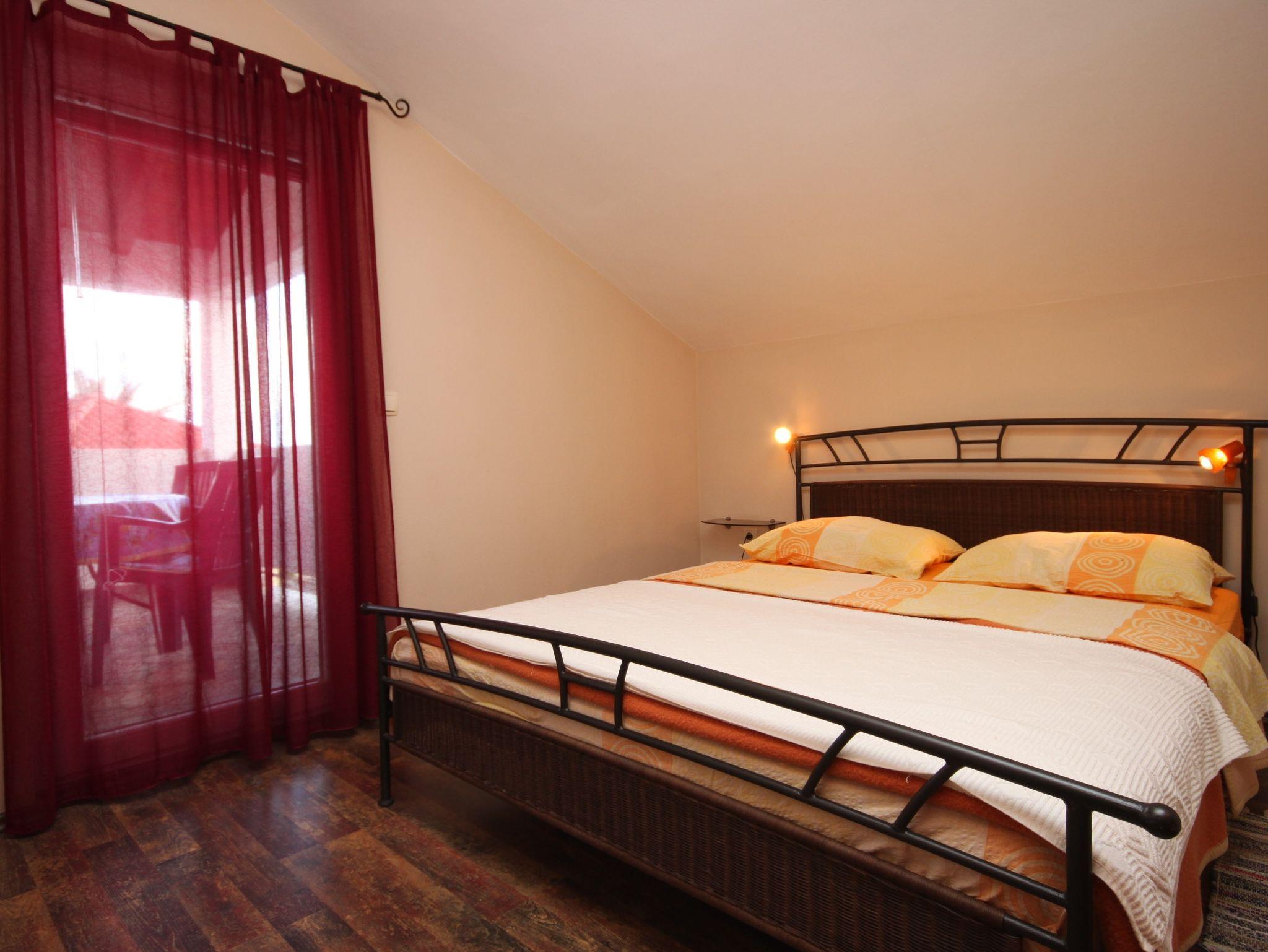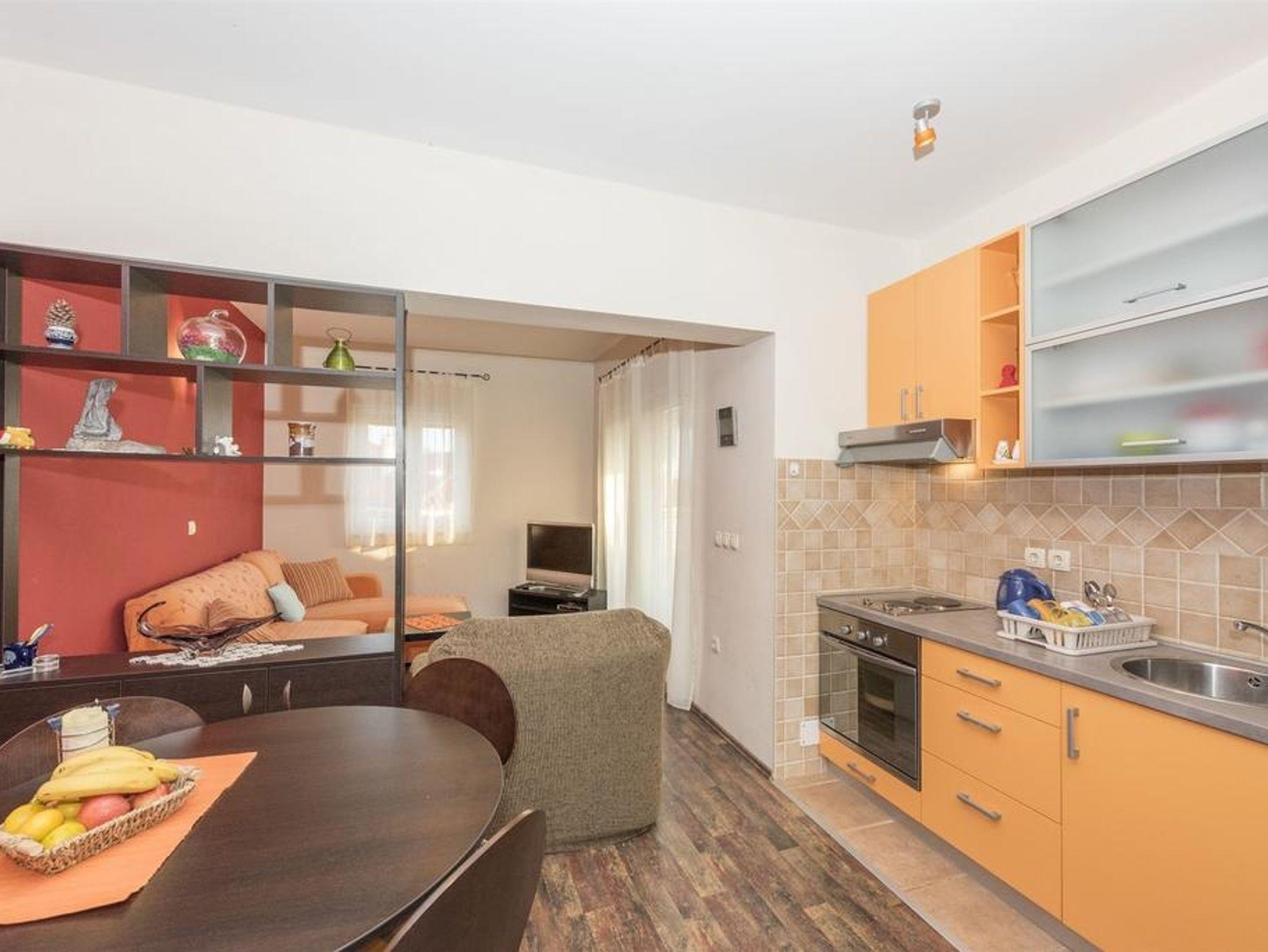 Ferienwohnung bietet Platz für 3 Gäste. Die Betten sind in Schlafzimmern, die es 1 gibt, und in Wohnzimmer, innerhalb einer Gesamtfläche von 34m2, angeordnet. Die Gäste haben eine eigene Terrasse zur Verfügung, auf der sie in warmen Sommernächten genießen können. Das Apartment bietet Meerblick. Es ist erlaubt, Speisen auf dem Gemeinschafts-Grill vorzubereiten. IM PREIS INBEGRIFFEN: Kurtaxe, Endreinigung, Klimatisierung, Parkplatz, Internet, Kinderbett, Bügeleisen, Föhn. VERBINDLICHE ZUSÄTZLICHE KOSTEN: Aufzahlung für Kurzaufenthalte (prozentualer Zuschlag pro Nächtigungsanzahl: 30% - 1, 20% - 2, 10% - 3). UNVERBINDLICHE ZUSÄTZLICHE KOSTEN: Wäschewaschen (5,00 € Waschen), Bootsanlegeplatz (5,00 € pro Nacht), Zusatzbett (7,00 € pro Nacht). Die Verfügbarkeit zusätzlicher Dienstleistungen in Ihrem reservierten Termin und die Preise derselben (falls nicht aufgeführt) müssen im Voraus überprüft werden. Zusätzliche Dienstleistungen die in der Zahlungsaufforderung nicht aufgeführt sind werden direkt beim Vermieter bezahlt, angenommen der Gast nutzt auch diese. Ermäßigung auf den Grundpreis: Gratistag 14=13 (bei einem Aufenthalt von 14 Tagen oder mehr erhalten Sie einen Gratistag für den Aufenthalt bis 31.12.26).
