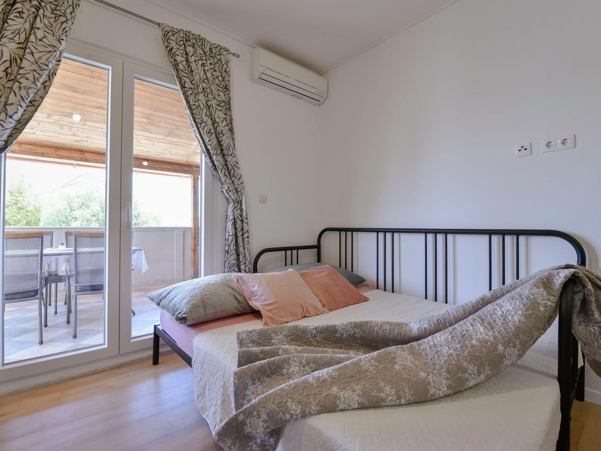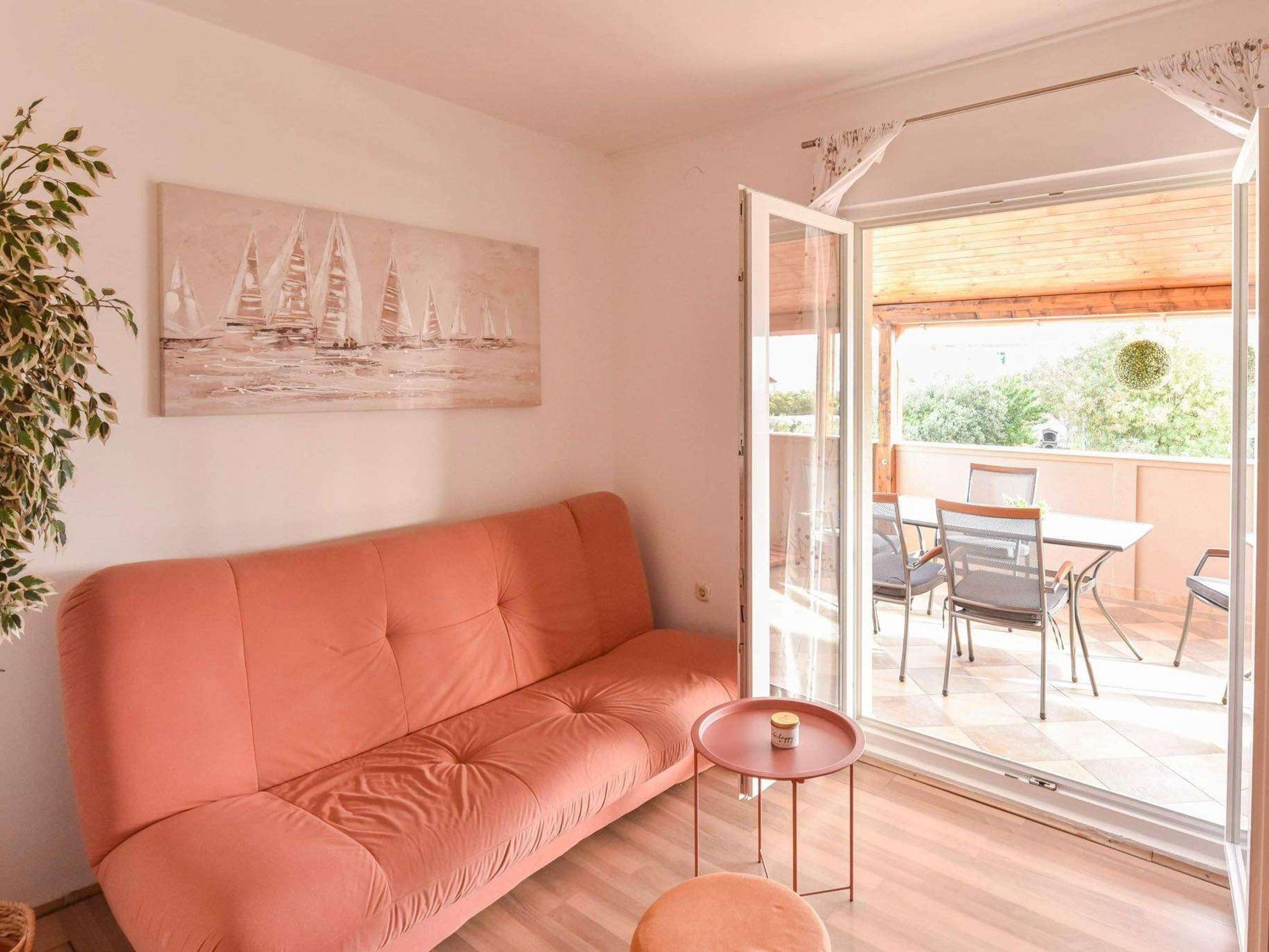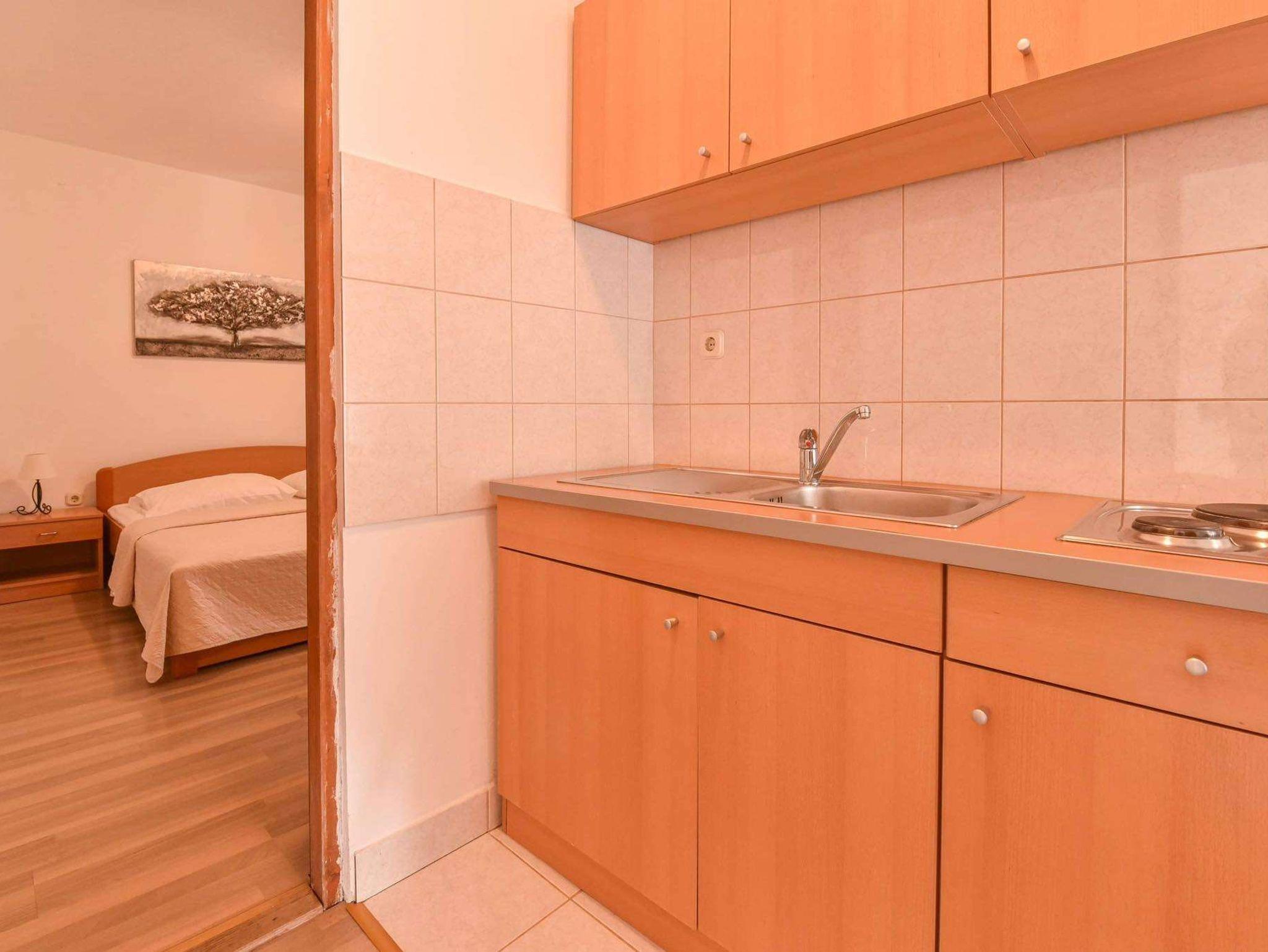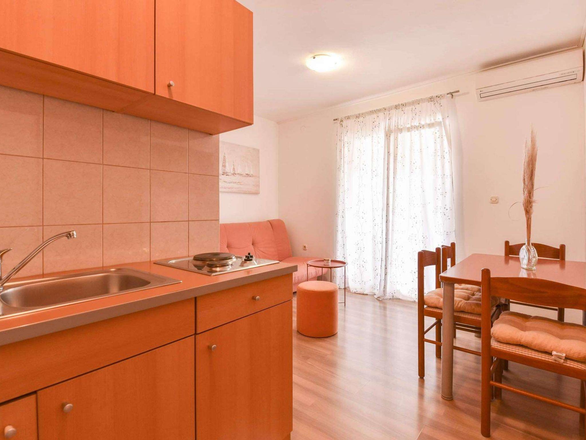 Ferienwohnung bietet Platz für 5 Gäste. Die Betten sind in Schlafzimmern, die es 1 gibt, und in Wohnzimmer, innerhalb einer Gesamtfläche von 35m2, angeordnet. Die Gäste haben eine eigene Terrasse zur Verfügung, auf der sie in warmen Sommernächten genießen können. Das Apartment bietet Meerblick. Es ist erlaubt, Speisen auf dem Gemeinschafts-Grill vorzubereiten. IM PREIS INBEGRIFFEN: Kurtaxe, Endreinigung, Klimatisierung, Parkplatz, Internet, Kinderbett, Bügeleisen, Bügelbrett. VERBINDLICHE ZUSÄTZLICHE KOSTEN: Aufzahlung für Kurzaufenthalte (prozentualer Zuschlag pro Nächtigungsanzahl: 30% - 1, 20% - 2, 10% - 3). Die Verfügbarkeit zusätzlicher Dienstleistungen in Ihrem reservierten Termin und die Preise derselben (falls nicht aufgeführt) müssen im Voraus überprüft werden. Zusätzliche Dienstleistungen die in der Zahlungsaufforderung nicht aufgeführt sind werden direkt beim Vermieter bezahlt, angenommen der Gast nutzt auch diese. Ermäßigung auf den Grundpreis: Gratistag 14=13 (bei einem Aufenthalt von 14 Tagen oder mehr erhalten Sie einen Gratistag für den Aufenthalt bis 31.12.26).