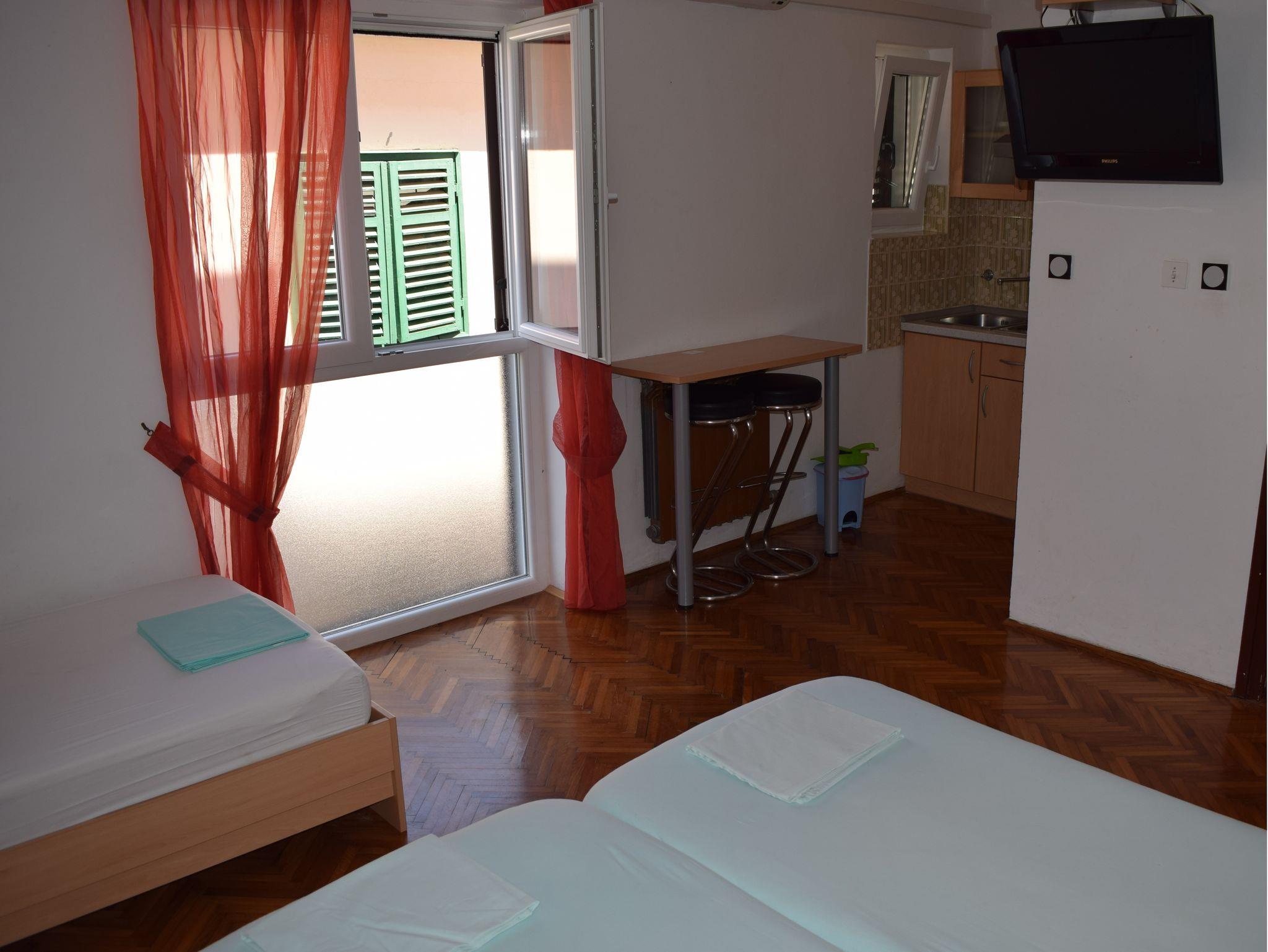 Studio bietet Platz für 3 Gäste. Die Betten sind in Schlafzimmern, die es 1 gibt, innerhalb einer Gesamtfläche von 23m2, angeordnet. Es ist erlaubt, Speisen auf dem Gemeinschafts-Grill vorzubereiten. Die reservierte Unterkunftseinheit hat keinen Balkon und keine Terrasse. IM PREIS INBEGRIFFEN: Kurtaxe, Endreinigung, Klimatisierung, Internet. VERBINDLICHE ZUSÄTZLICHE KOSTEN: Aufzahlung für Kurzaufenthalte (prozentualer Zuschlag pro Nächtigungsanzahl: 30% - 1, 20% - 2, 10% - 3). Die Verfügbarkeit zusätzlicher Dienstleistungen in Ihrem reservierten Termin und die Preise derselben (falls nicht aufgeführt) müssen im Voraus überprüft werden. Zusätzliche Dienstleistungen die in der Zahlungsaufforderung nicht aufgeführt sind werden direkt beim Vermieter bezahlt, angenommen der Gast nutzt auch diese. Ermäßigung auf den Grundpreis: Gratistag 14=13 (bei einem Aufenthalt von 14 Tagen oder mehr erhalten Sie einen Gratistag für den Aufenthalt bis 31.12.26).