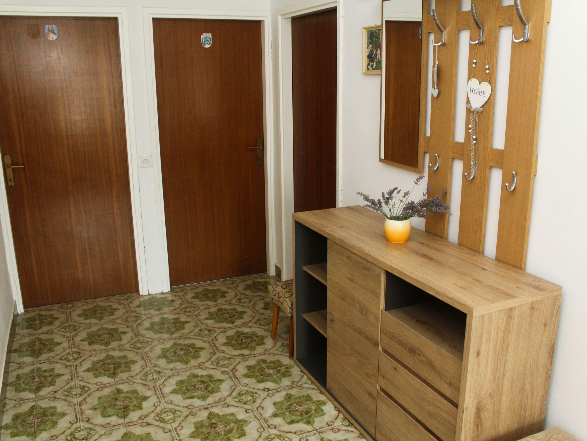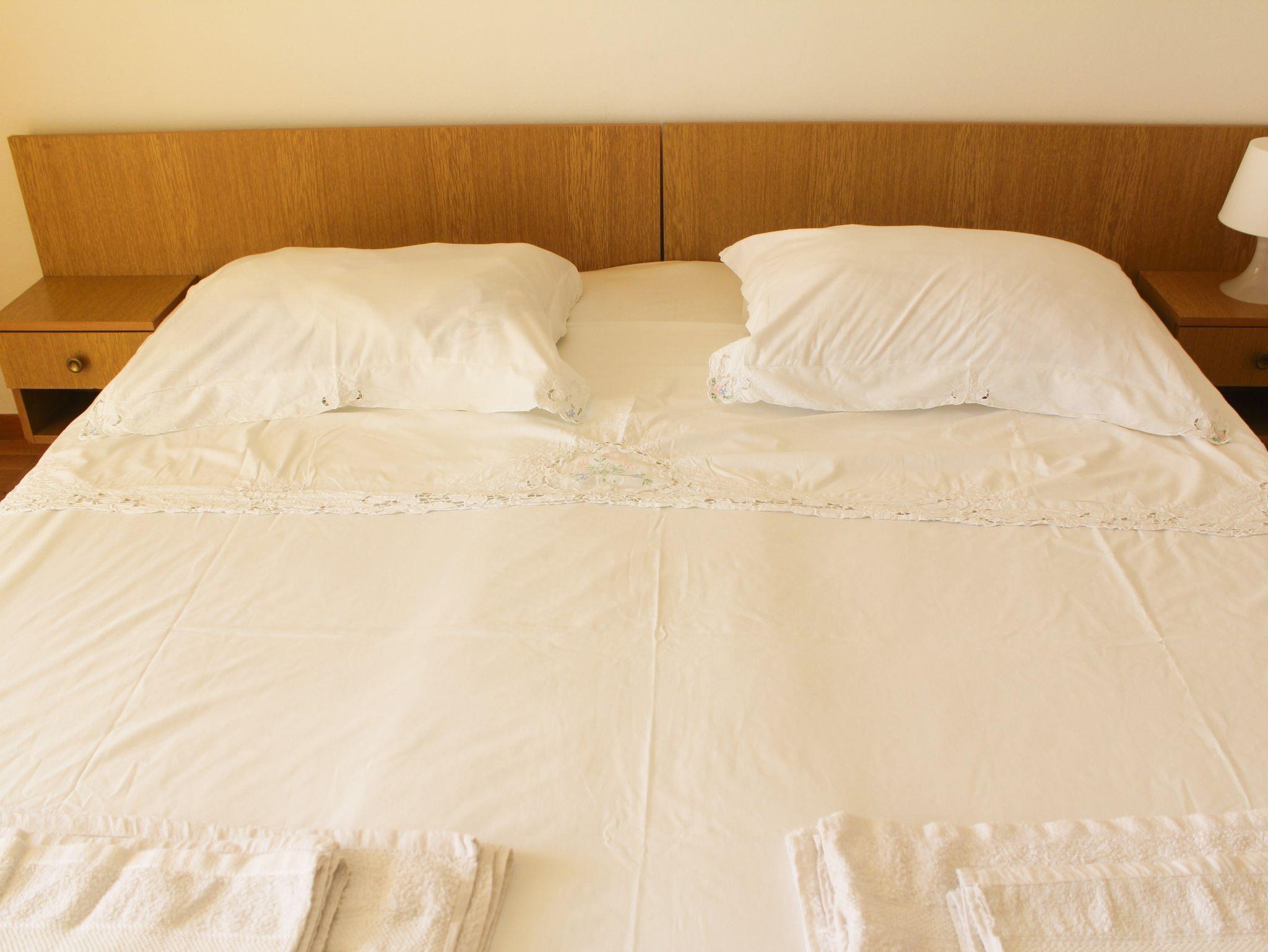 Ferienwohnung bietet Platz für 8 Gäste. Die Betten sind in Schlafzimmern, die es 3 gibt, und in Wohnzimmer, innerhalb einer Gesamtfläche von 72m2, angeordnet. Die Gäste haben eine eigene Terrasse zur Verfügung, auf der sie in warmen Sommernächten genießen können. Es ist erlaubt, Speisen auf dem Gemeinschafts-Grill vorzubereiten. IM PREIS INBEGRIFFEN: Kurtaxe, Endreinigung, Klimatisierung, Parkplatz, Internet, Kinderbett. VERBINDLICHE ZUSÄTZLICHE KOSTEN: Aufzahlung für Kurzaufenthalte (prozentualer Zuschlag pro Nächtigungsanzahl: 30% - 1, 20% - 2, 10% - 3). Die Verfügbarkeit zusätzlicher Dienstleistungen in Ihrem reservierten Termin und die Preise derselben (falls nicht aufgeführt) müssen im Voraus überprüft werden. Zusätzliche Dienstleistungen die in der Zahlungsaufforderung nicht aufgeführt sind werden direkt beim Vermieter bezahlt, angenommen der Gast nutzt auch diese.