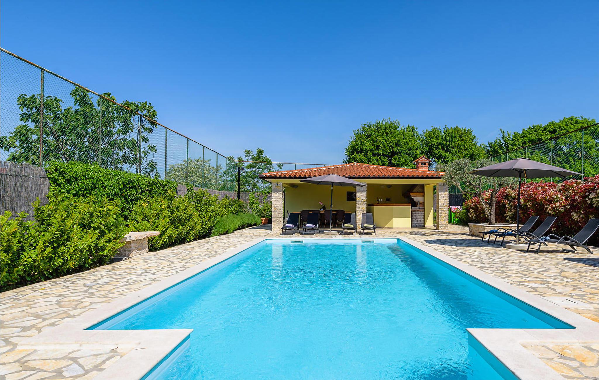 Genießen Sie einen traumhaften Urlaub in diesem komfortablen Ferienhaus mit Pool.