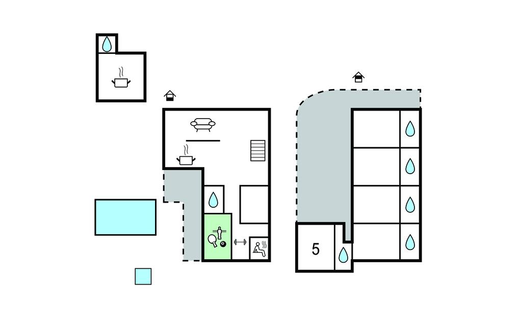 Badezimmer 8m2 (nr. 5) - WC. Warmes und kaltes Wasser. Dusche
