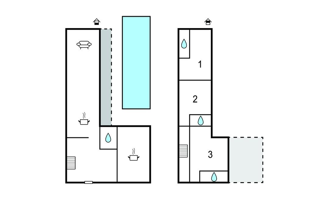 Dieses exklusive Ferienhaus lockt mit einem großzügigen, eleganten Innenbereich und zahlreichen modernen Annehmlichkeiten. Zaubern Sie kulinarische Highlights in der offenen Küche und nehmen Sie am stilvollen Esstisch Platz. Entspannen Sie abends bei einem guten Film auf dem Sofa oder genießen Sie anregende Gespräche bei einem Glas Wein.