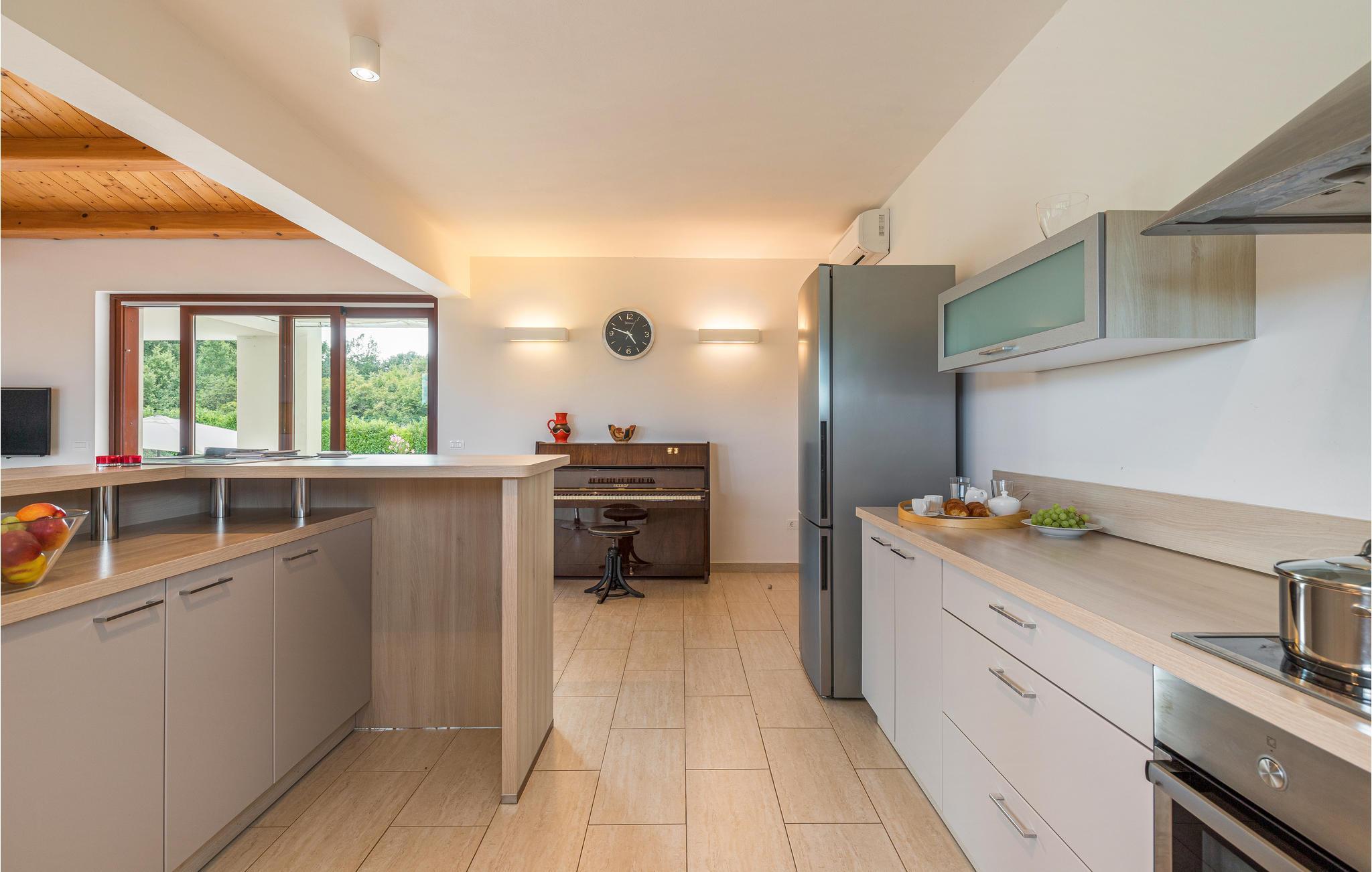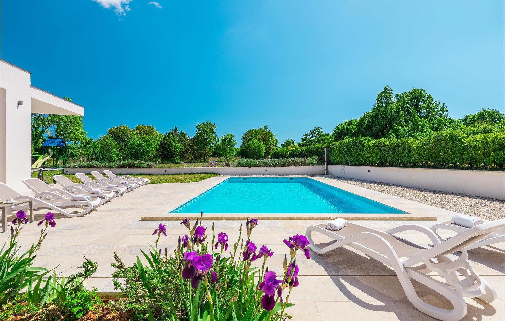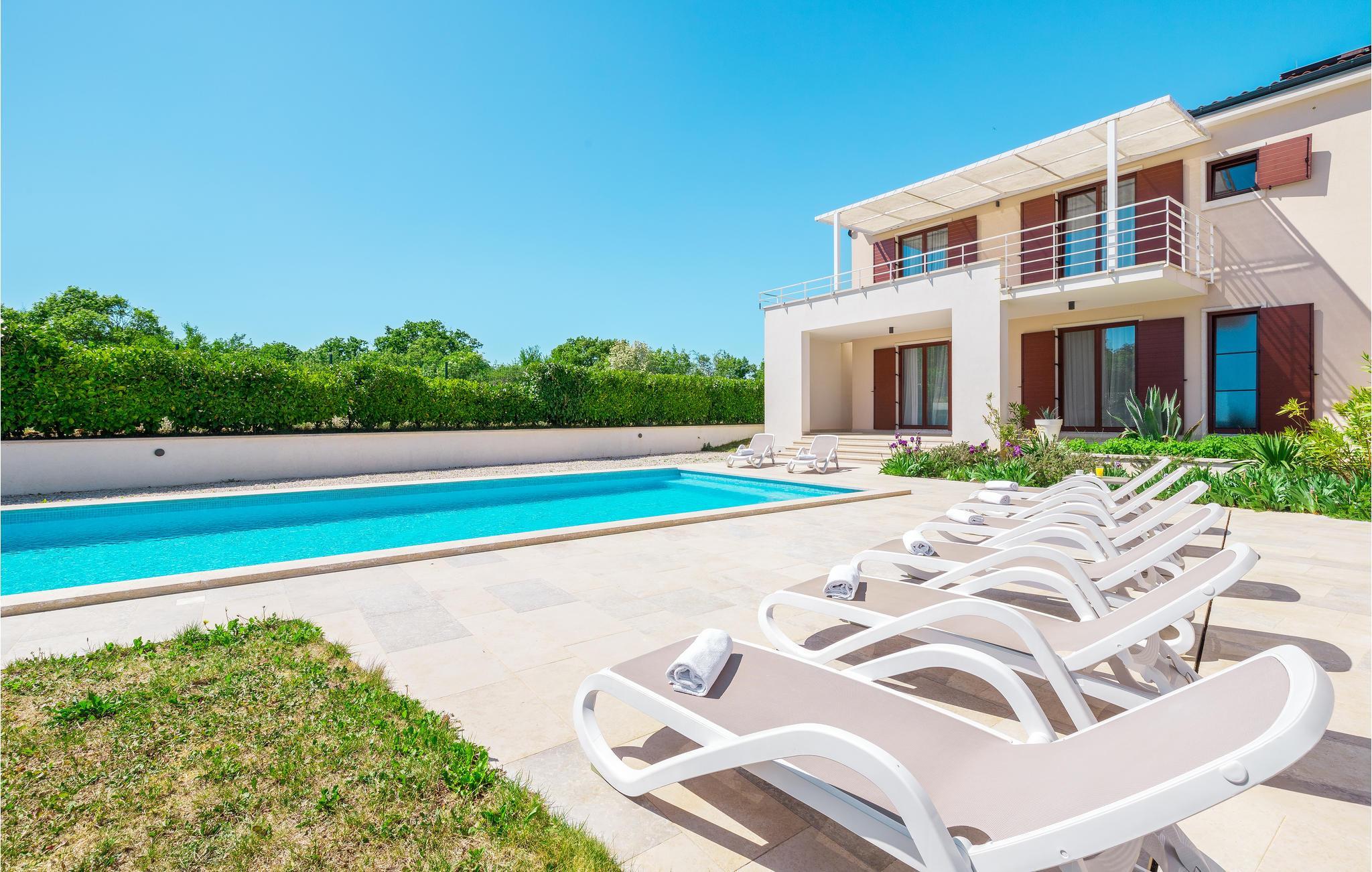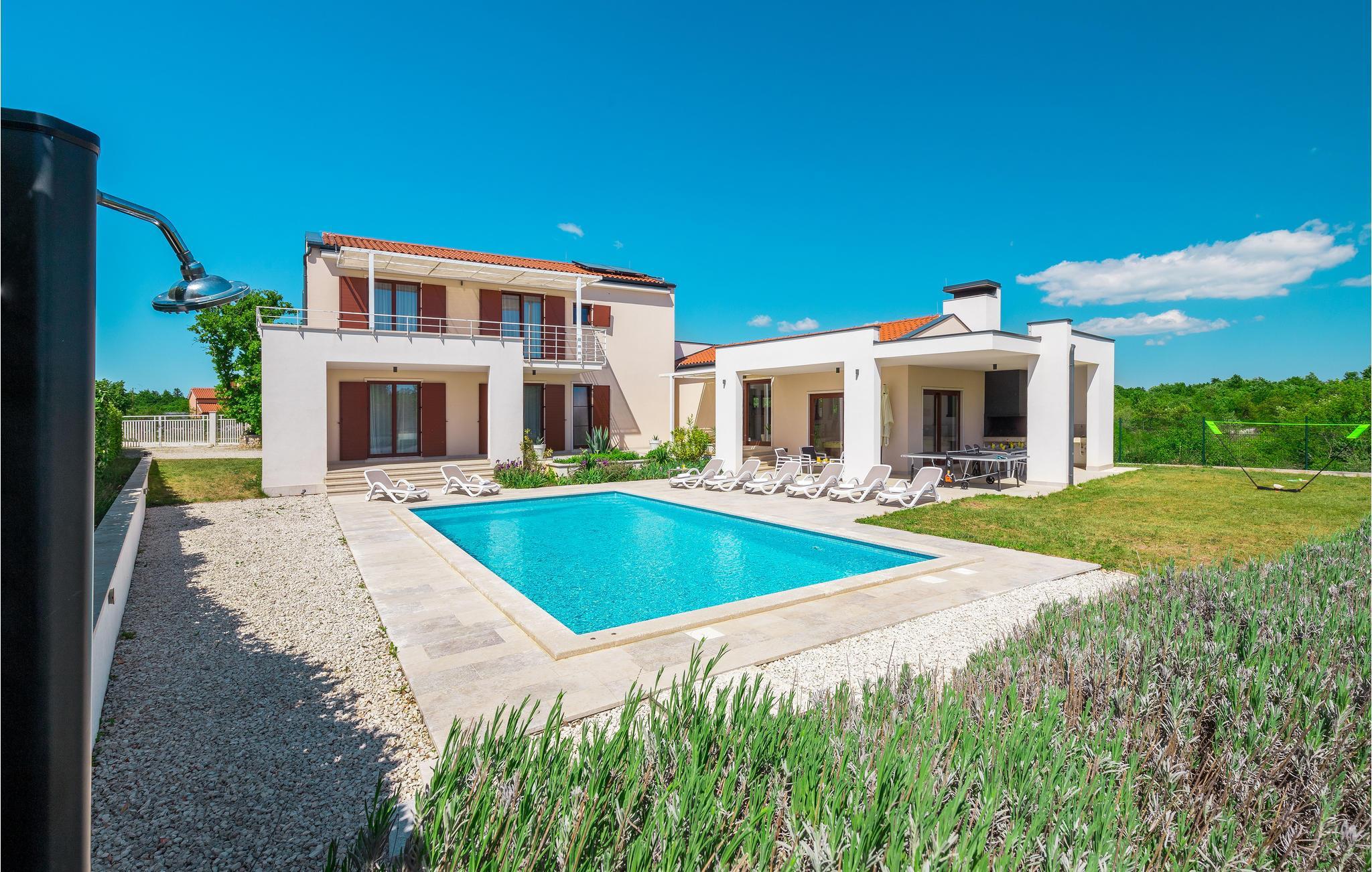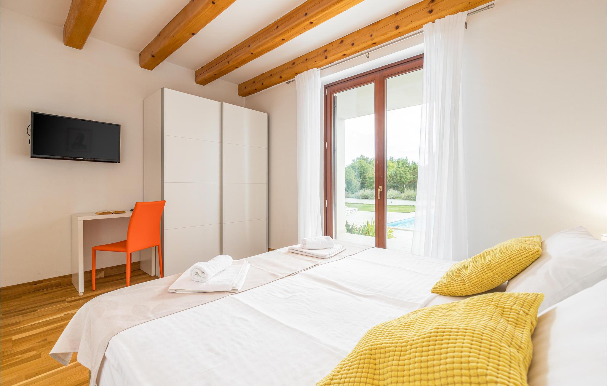 Dieses schöne Ferienhaus liegt im Ort Stokovci. Angepasst an den heutigen Lifestyle mit modernem Interieur bietet es einen unbeschwerten Urlaub für die ganze Familie. Das Erdgeschoss verfügt über ein geräumiges Wohnzimmer mit Kamin, Küche, Terrasse mit Blick auf den Pool und zwei Schlafzimmer. Im 1.Stock gibt es weitere Schlafzimmer und zwei Bäder. Im Pool können Sie sich abkühlen; wenn Sie aber an Ausflügen interessiert sind, empfehlen wir, 6 km entfernt, den Ort Svetvincenat mit einem alten Schloss. Besuchen Sie die nahe Stadt Vodnjan mit vielen Sehenswürdigkeiten wie die St. Blasius-Kirche mit Reliquien. In Restaurants erwarten Sie kulinarische Spezialitäten der Region mit Olivenöl und köstlichen Weinen.
