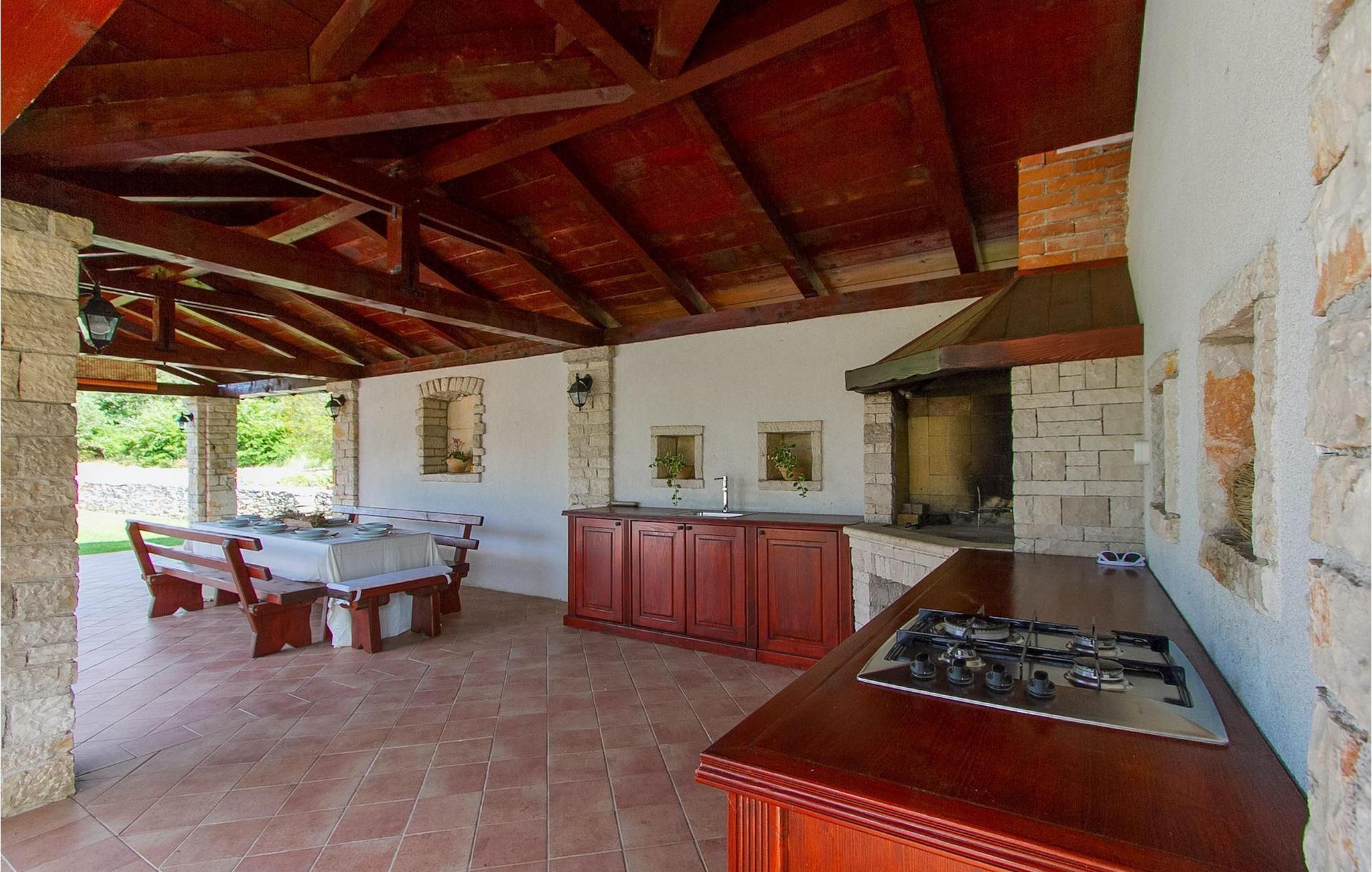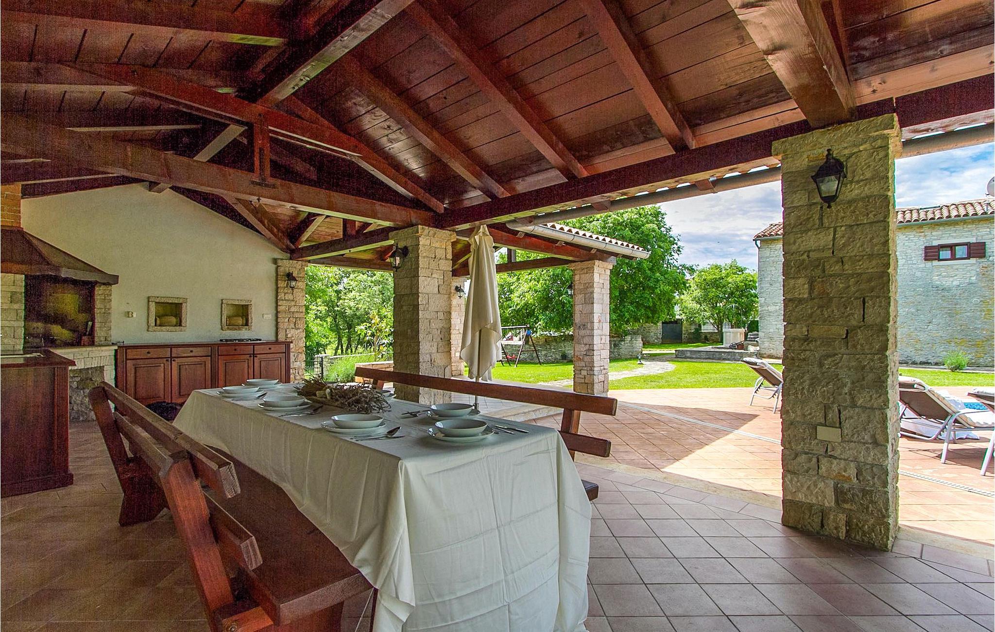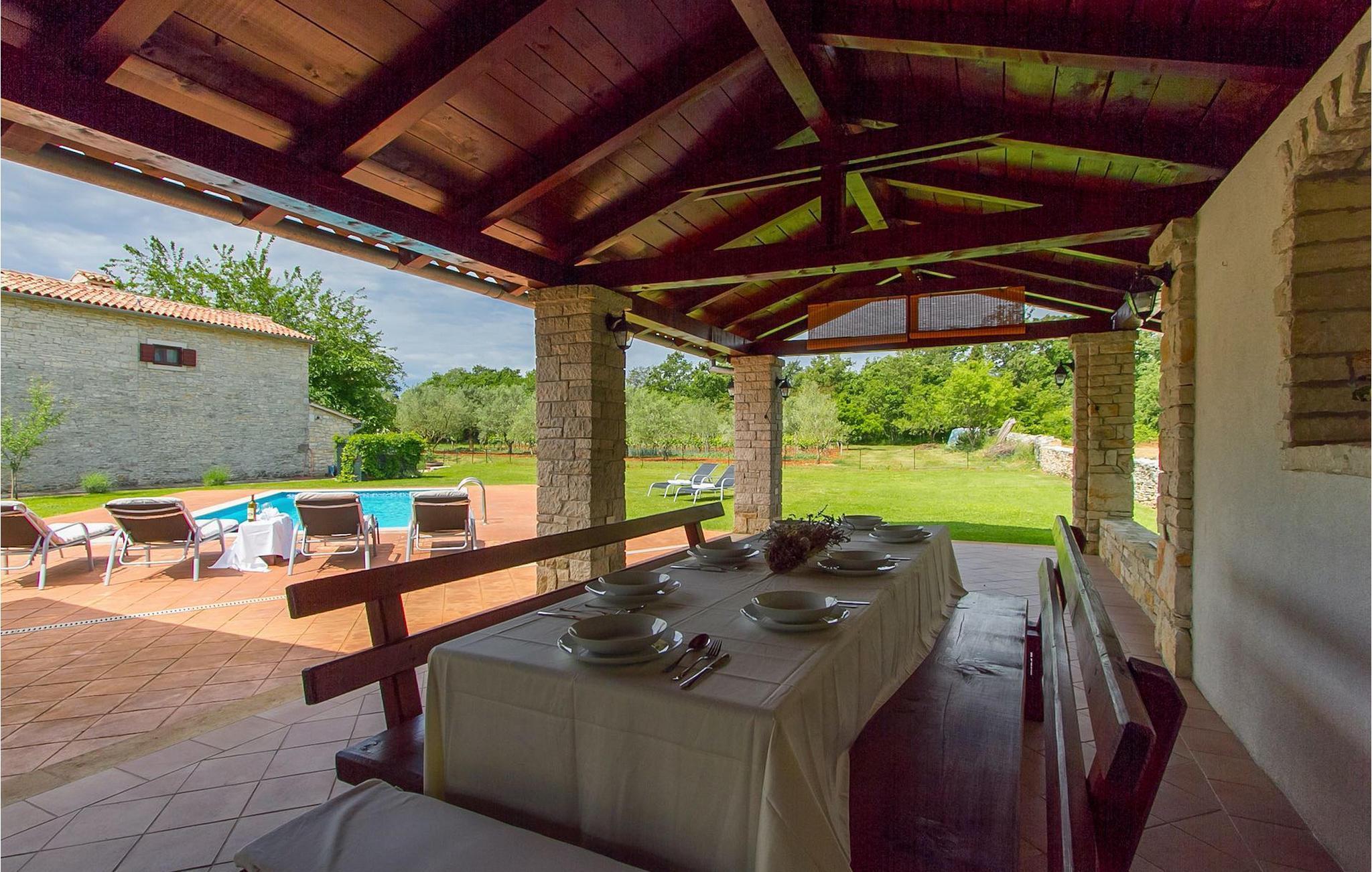 Der Garten umfasst auch eine überdachte Terrasse mit Sommerküche und Holzkohlegrill. Hier können Sie leckere Mahlzeiten zubereiten oder einfach unvergessliche Momente mit Familie und Freunden genießen. Die Villa Edera ist eine der Ferienhäuser in Istrien, die mit dem Eco Domus Zertifikat belohnt wurde. Das Zertifikat garantiert den Gästen, dass Sie sich in einer umweltfreundlichen Villa befinden. Die Idee des Eco Domus Projektes ist, aus Istrien eine “grüne Region” zu machen und den Einfluß von Ferienhäusern auf die Umwelt zu begrenzen.
