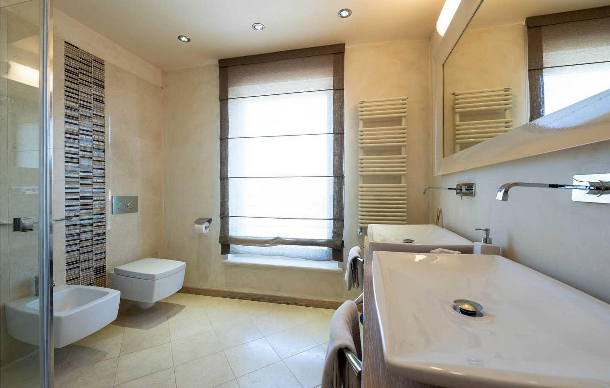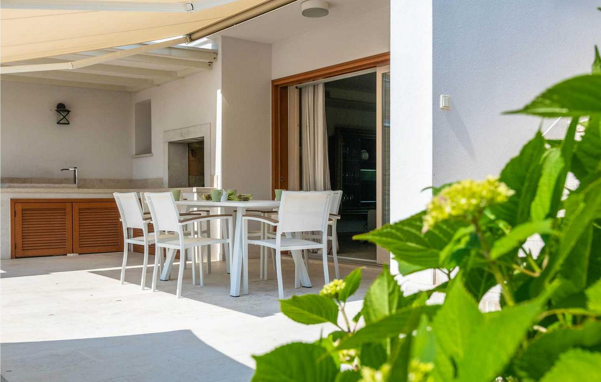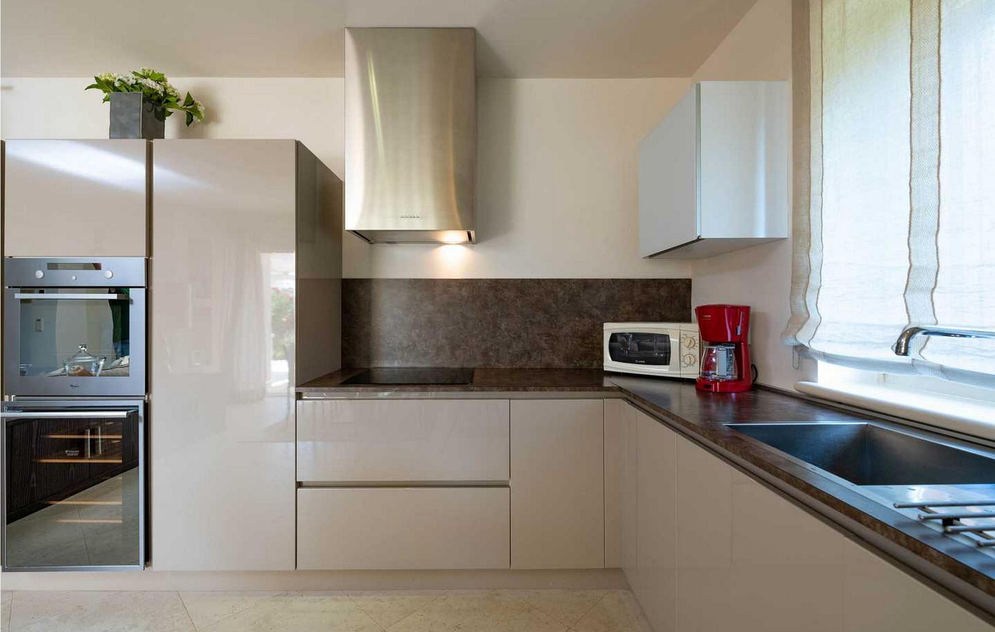 Die Villa befindet sich auf einem eigenen und geschlossenen 700 qm großen Grundstück mit gepflegtem Rasen, 35 qm großem Privatpool, überdachter Terrasse mit Sommerküche und Sitzgarnitur, sowie 1 offenes Parkplatz für 1 Fahrzeug und 1 Parkplatz in der Garage. Diese 2012 erbaute Villa bietet seinen Gästen, dank seiner hochwertigen Ausstattung, hohen Komfort. Für die Ausstattung des Interieurs wurden ausschließlich hochwertige Materialien verwandt – von den Natursteinböden der Küche und Treppen, über die erstklassigen Designerbäder, bis hin zu den Mahagoni Türen und Fenstern, wurde alles in diesem luxuriösen Haus dem Wohlbefinden der Gäste untergeordnet. Abgesehen davon, hat die Villa auch ein ausgeklügeltes Heiz-und Kühlsystem, das eine präzise Einstellung der Temperatur in jedem Zimmer ermöglicht, sowie die Intensität der Fußbodenheizung während der kälteren Perioden des Jahres. Das Haus ist mit noch einem identischen Haus (Doppelhaushälfte) verbunden, aber dank des von viel Grün umzäunten Gartens, wird den Gästen der Villa Allegra absolute Privatsphäre gewährleistet.